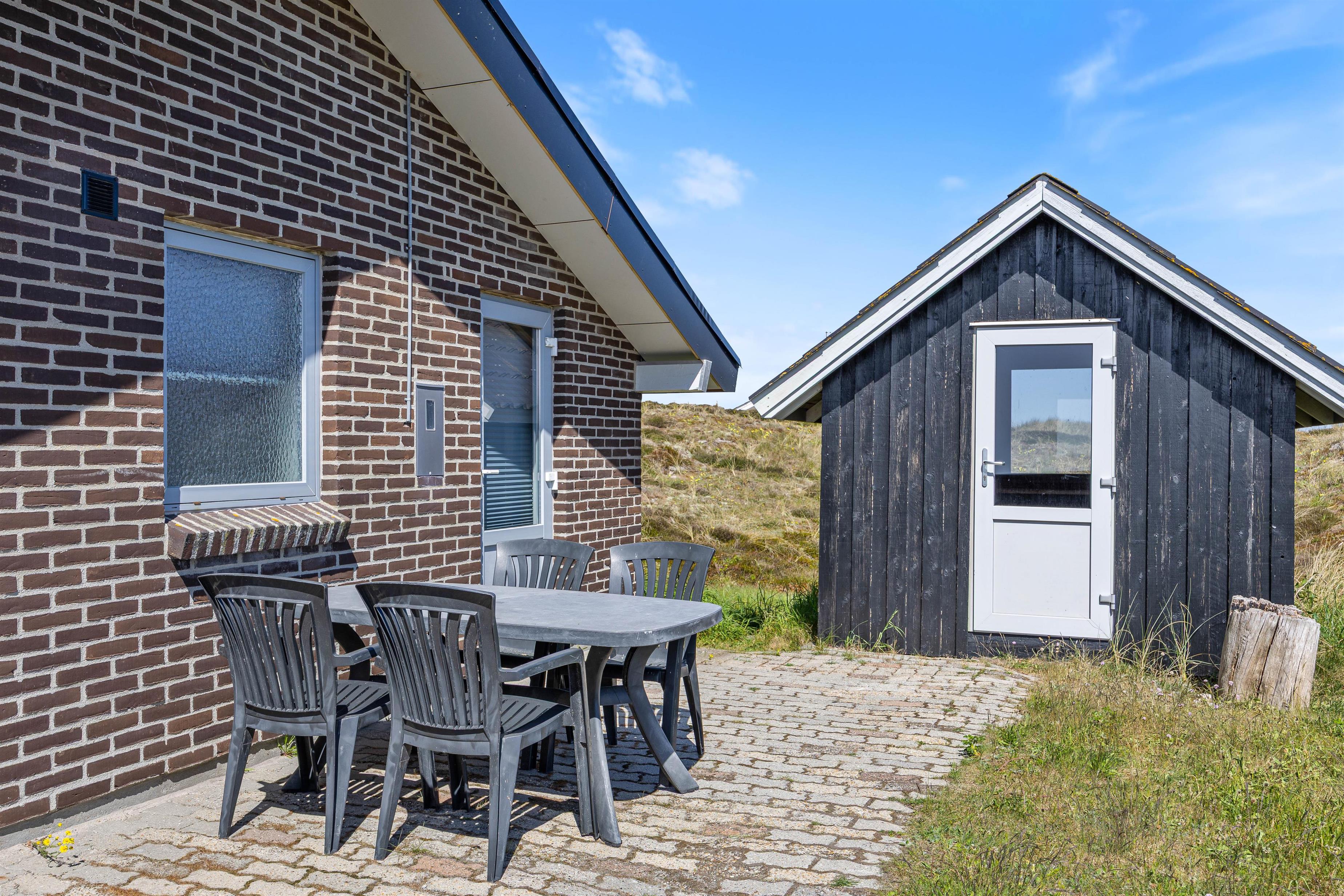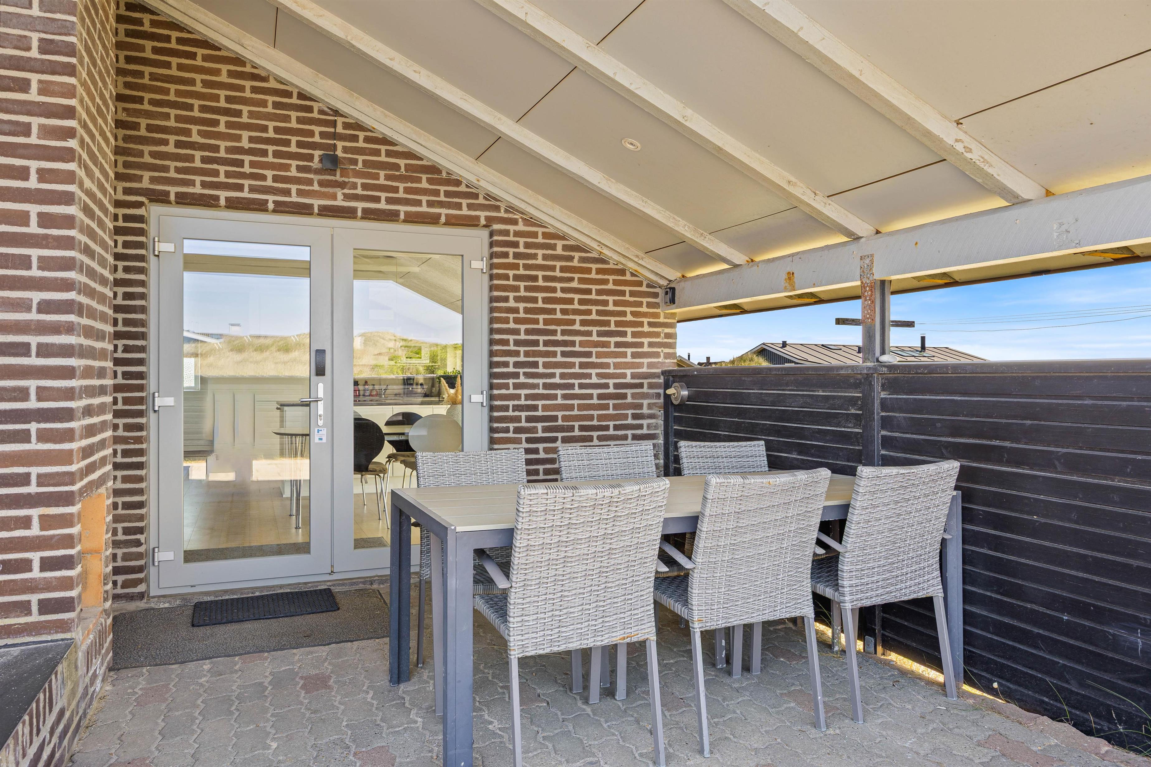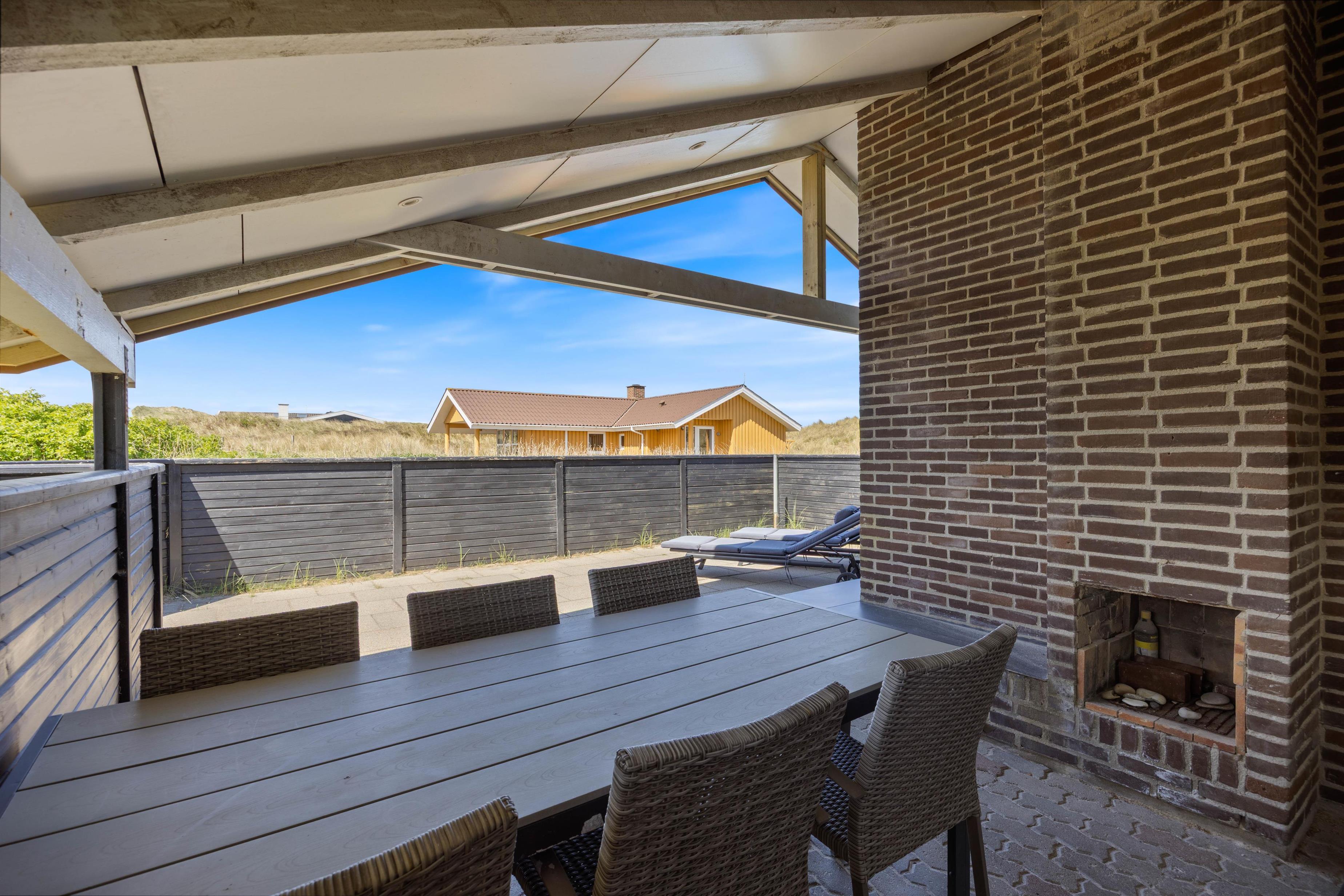 Selv i en regnbyge kan du sidde her i tørvejr under overdækningen og nyde den friske havluft. Der er havemøbler og liggestole til rådighed, så du kan slappe af. Om aftenen kan du tænde op i grillen og nyde et lækkert grillmåltid, mens skyggerne bliver lange. I kan stadig nå en dejlig gåtur til stranden og opleve solnedgangen i Vesterhavet.