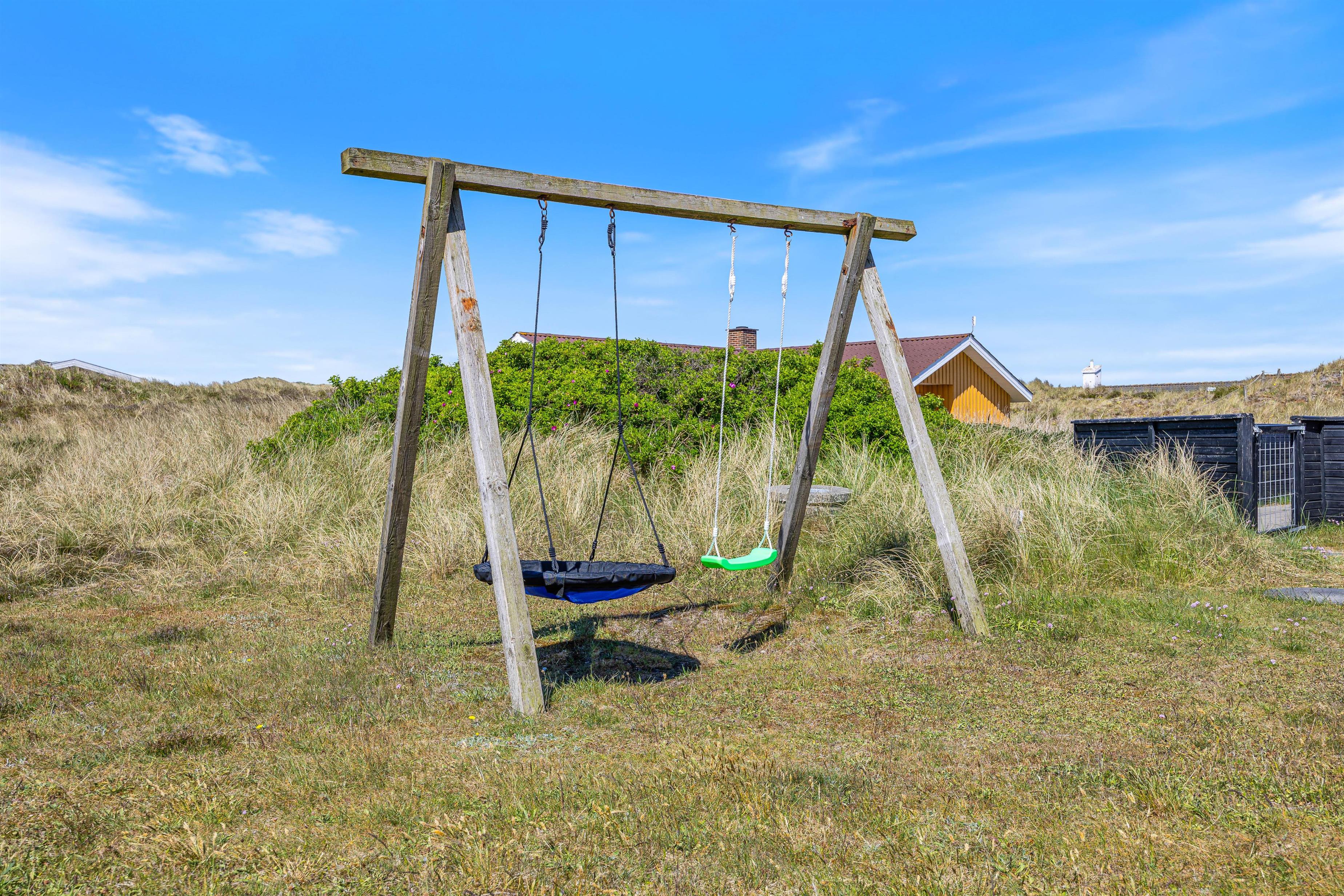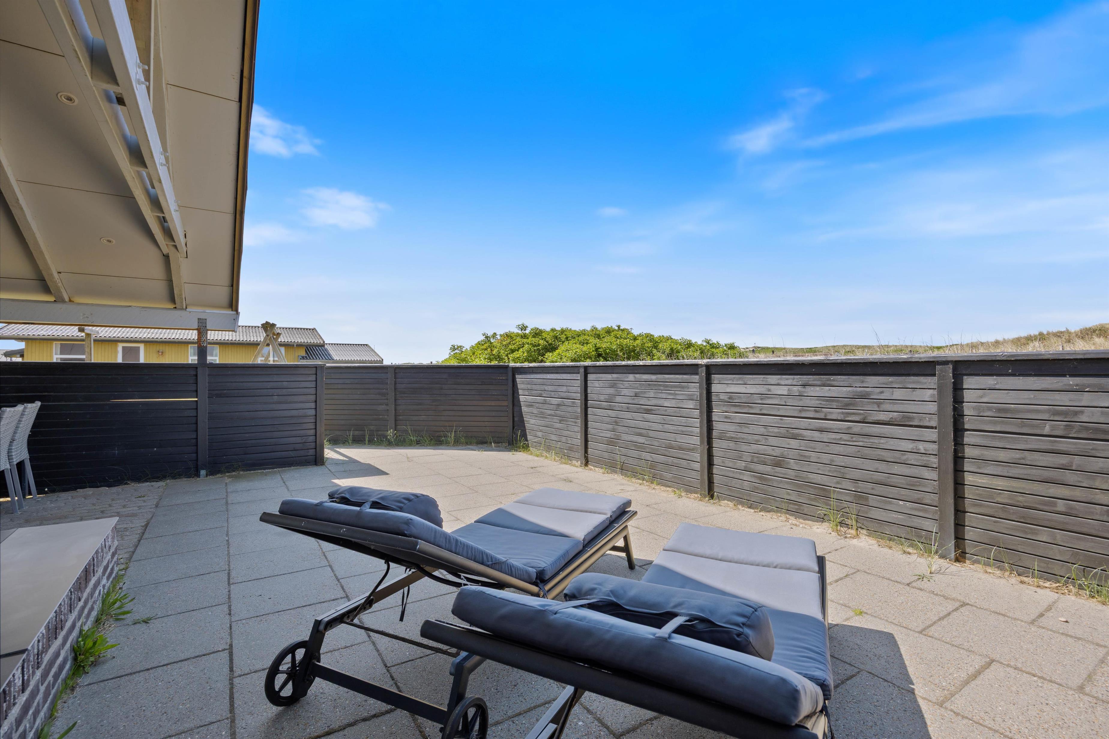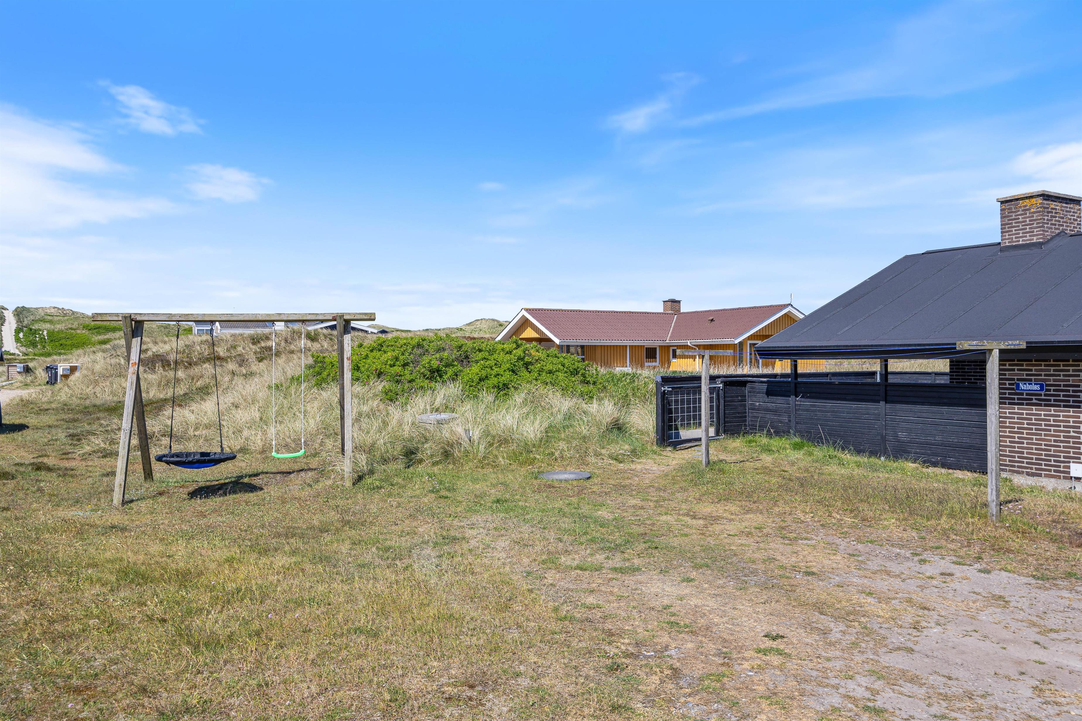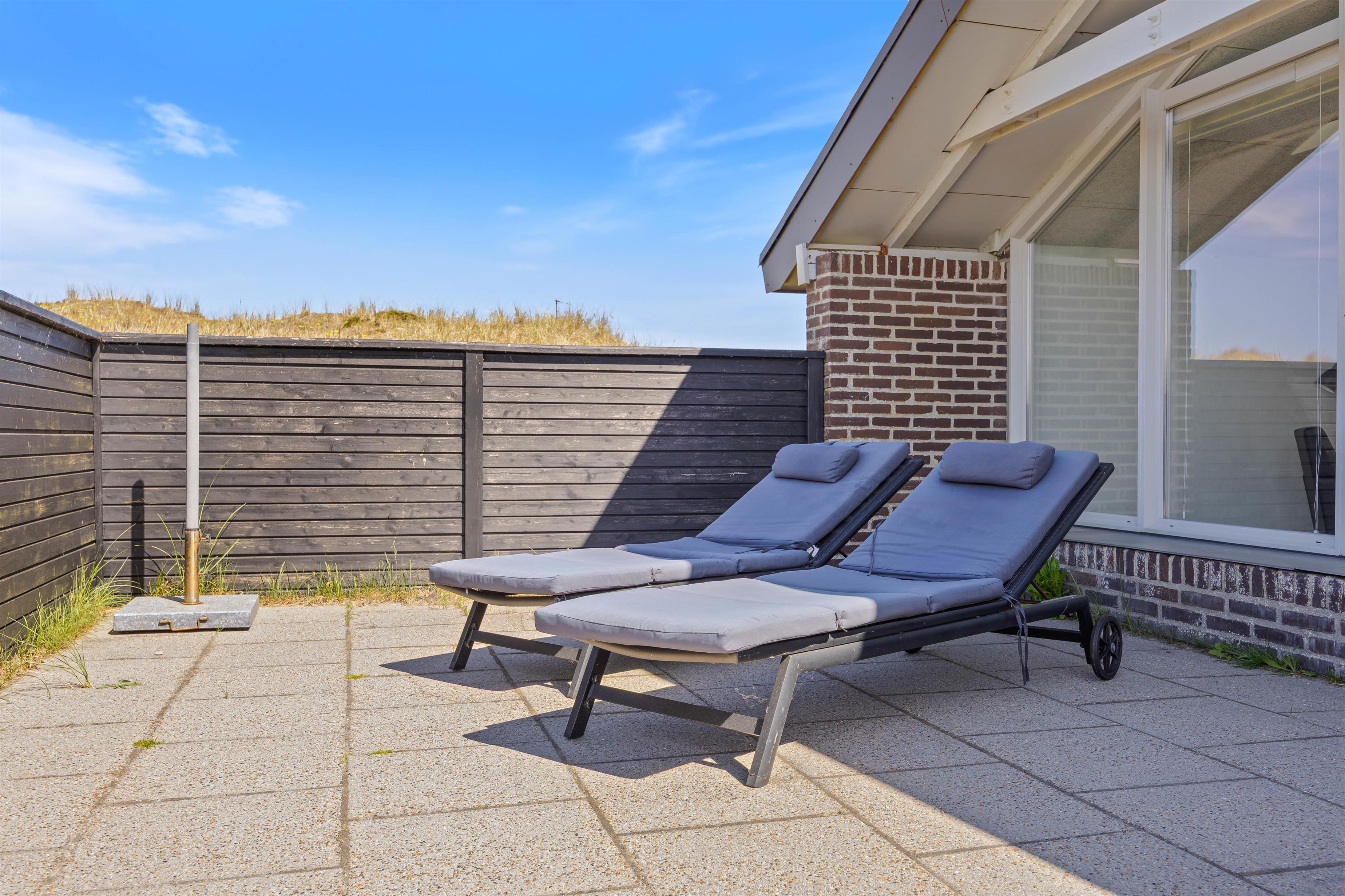 Selv i en regnbyge kan du sidde her i tørvejr under overdækningen og nyde den friske havluft. Der er havemøbler og liggestole til rådighed, så du kan slappe af. Om aftenen kan du tænde op i grillen og nyde et lækkert grillmåltid, mens skyggerne bliver lange. I kan stadig nå en dejlig gåtur til stranden og opleve solnedgangen i Vesterhavet.