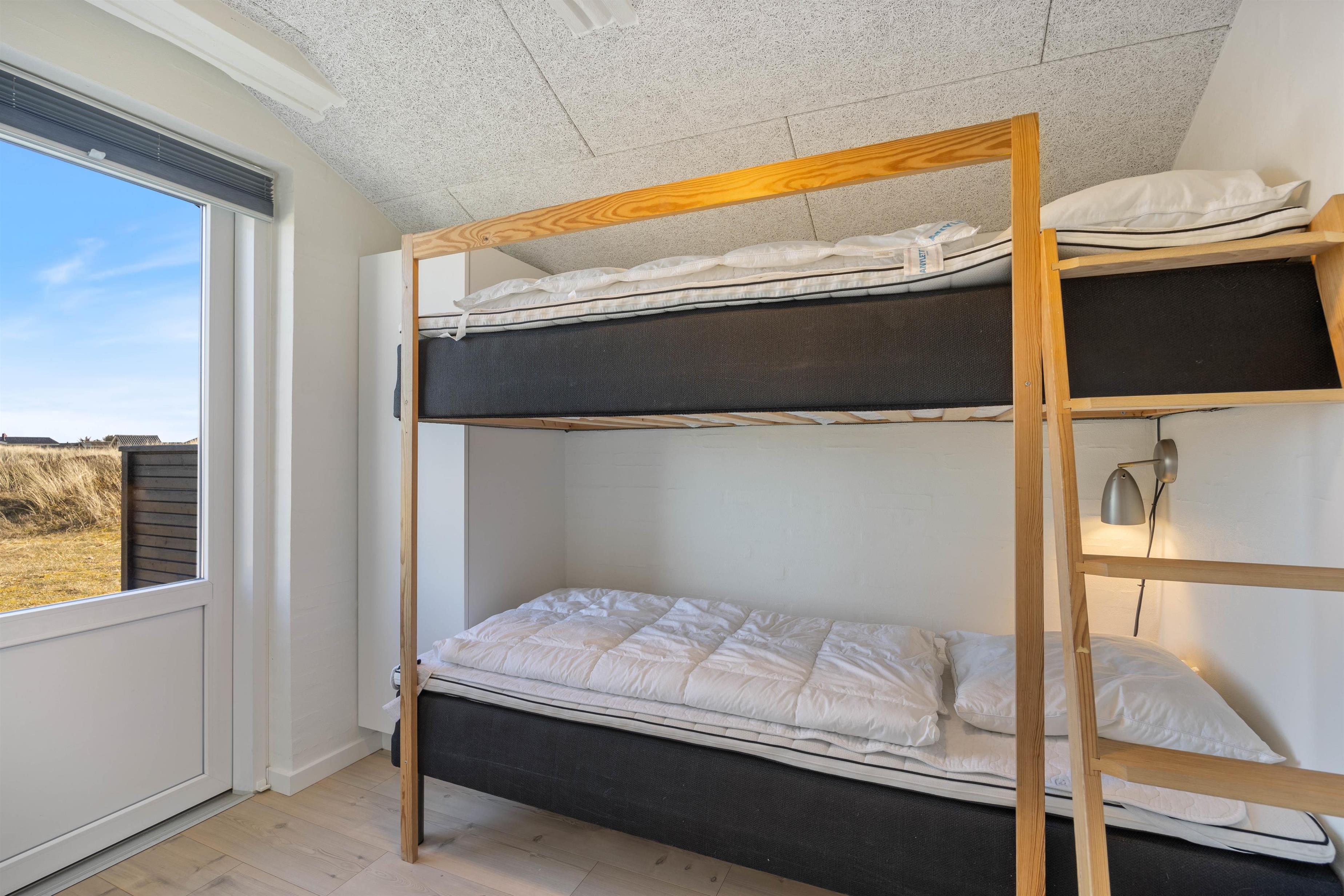 Det velindrettede badeværelse har behagelig gulvvarme. Når feriedagen går på hæld, kan I fordele jer på 3 hyggelige soveværelser, hvoraf det ene er indrettet med en køjeseng.