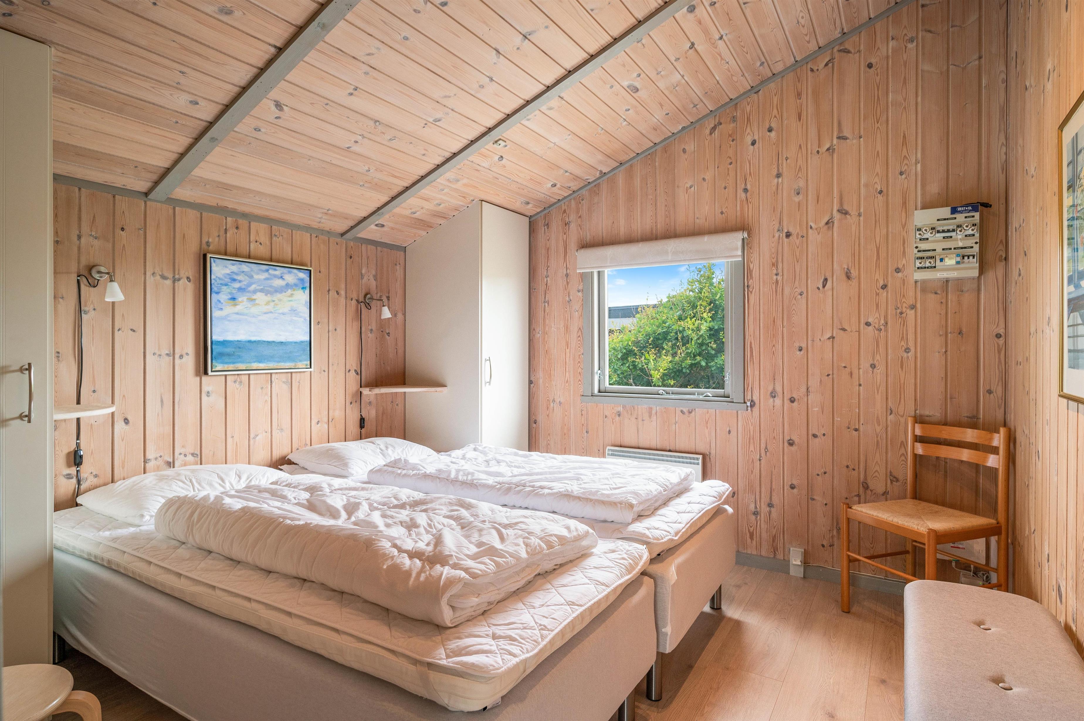 Det store badeværelse med spa har gulvvarme og ligger lige overfor saunaen, så I kan hygge jer med en wellnessaften. Der er 3 soveværelser, hvor I kan lade op i den friske vesterhavsluft. 2 med dobbeltsenge og 1 med 2 enkeltsenge. Der er vaskemaskine og tørretumbler i sommerhuset.