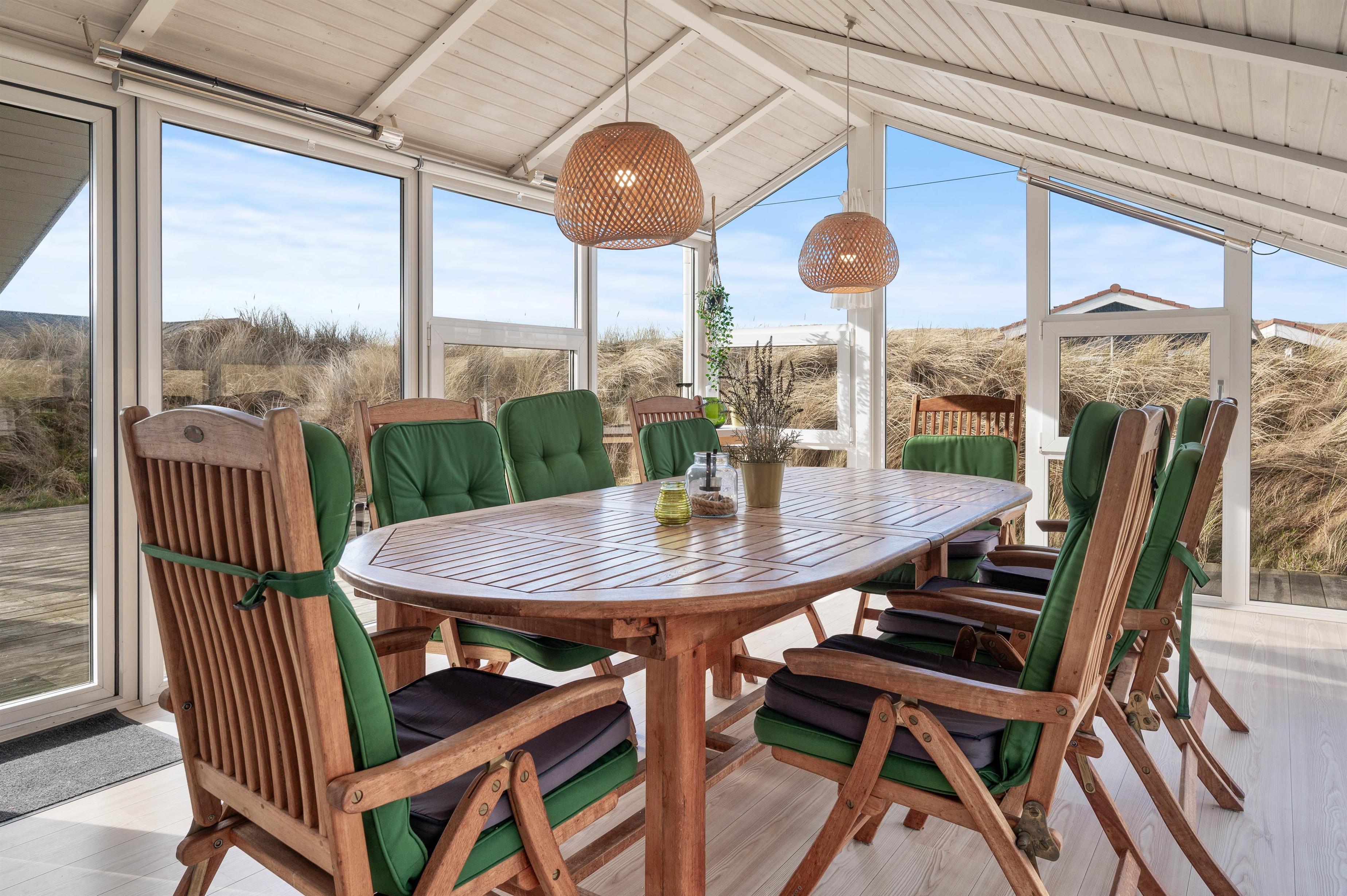 Når du kommer hjem fra stranden, kan du tage et hurtigt bad i den udendørs bruser, som er opvarmet af solceller og kan benyttes fra april til oktober. Bliver det for koldt udenfor, er den skønne havestue det perfekte sted at indtage frokosten eller hygge sig med venner og familie.