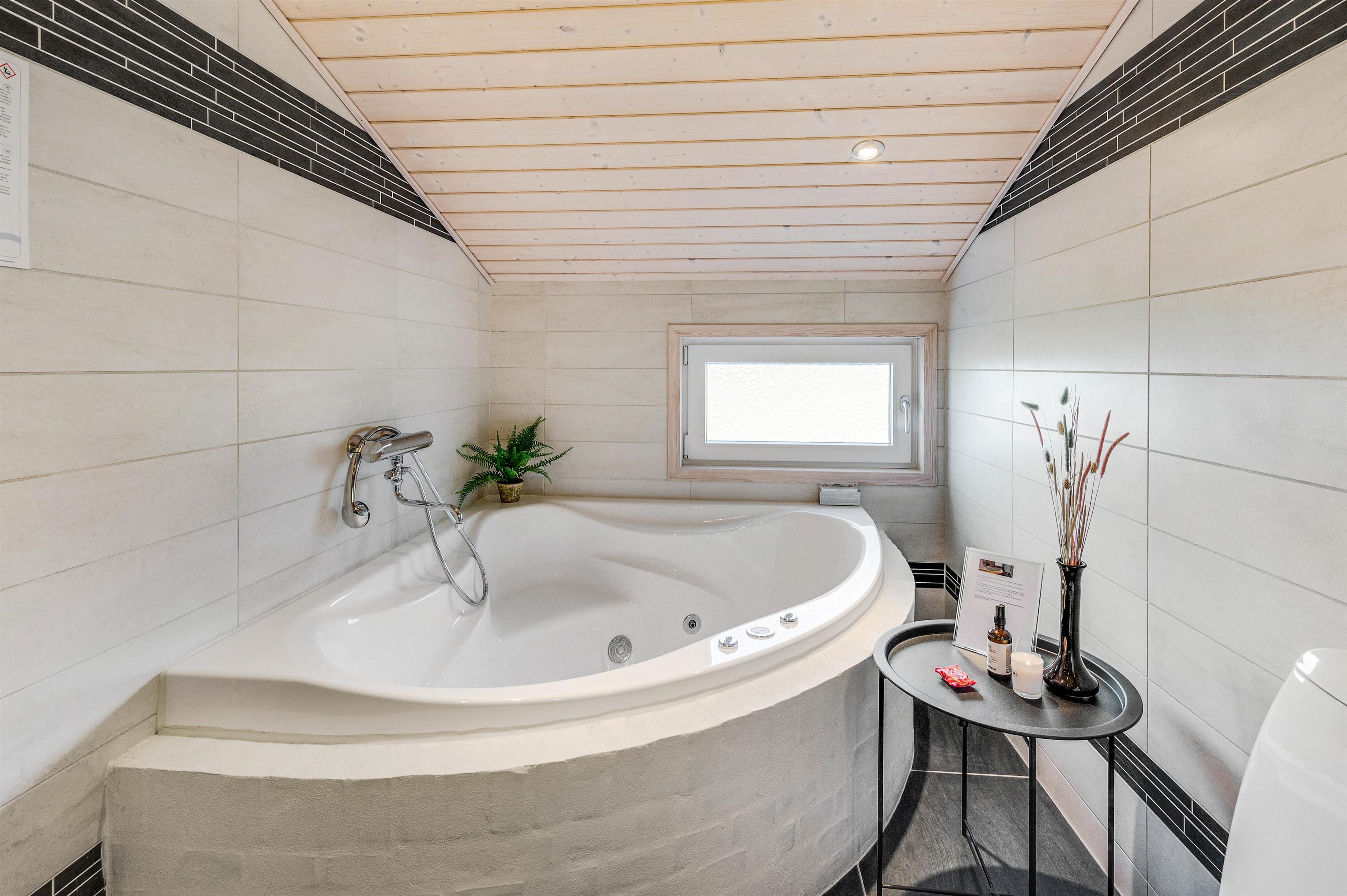 I sommerhuset er 2 fine badeværelser, hvoraf det ene er indrettet med spabad og sauna - så nyd en sommeraften med afslapning efter en dejlig tur på stranden. I sommerhuset er der desuden vaskemaskine og tørretumbler.