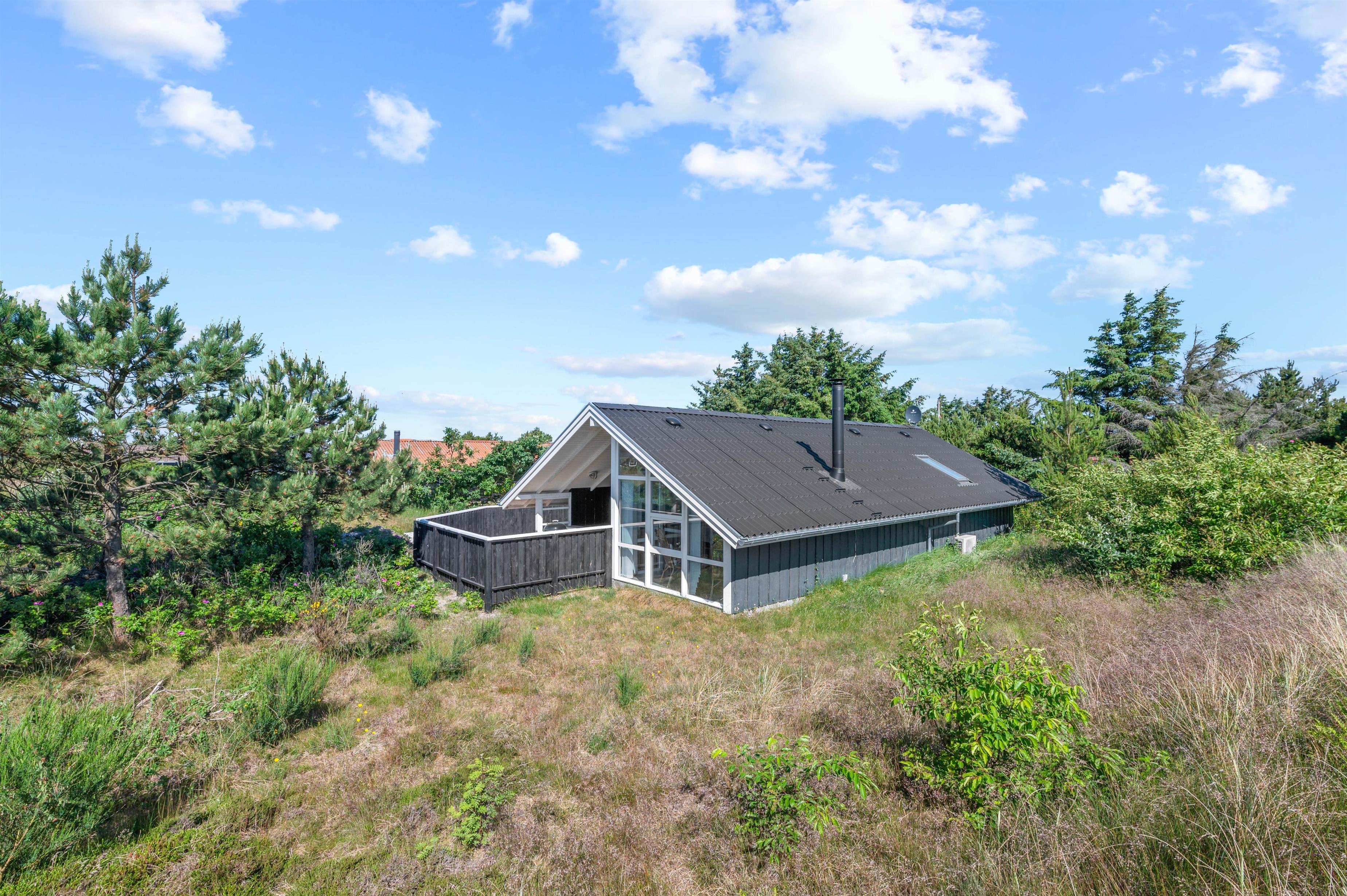 Sommerhuset ligger midt imellem Ringkøbing Fjord og Vesterhavet, hvor I finder den kilometerlange sandstrand. Bjerregård er et populært ferieparadis for naturelskere, og området er præget af hede- og klitlandskab. Her er rig mulighed for gode gåture på de mange naturstier, som forbinder området.