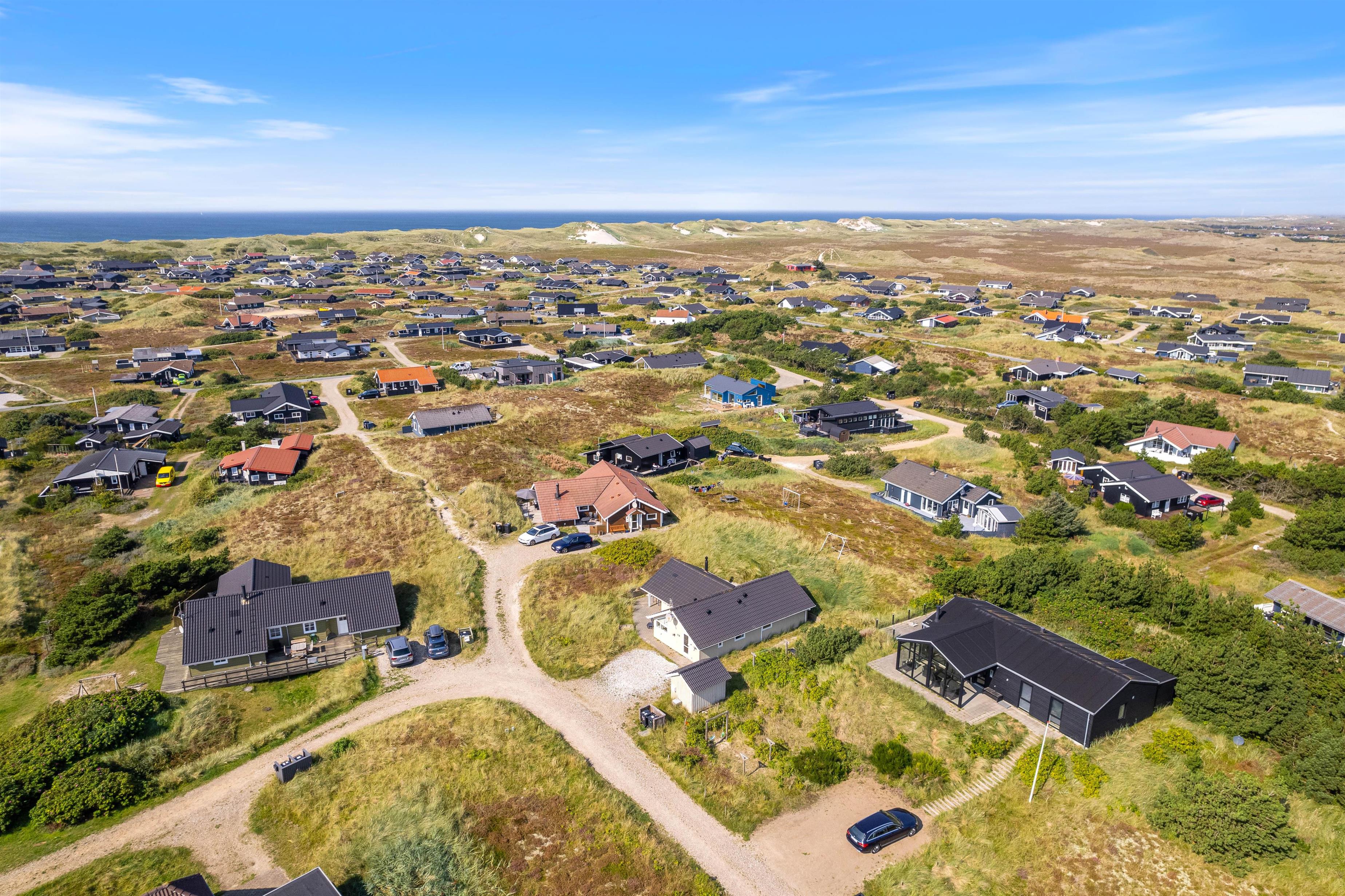Med kun 500 meter til Vesterhavet er sommerhuset det perfekte udgangspunkt for strandture. Den nærliggende kystlinje byder på smukke sandstrande og frisk havluft, der indbyder til afslapning og leg i sandet. Derudover er der kun 1 kilometer til nærmeste indkøbsmulighed, så I nemt kan forsyne jer med alt, hvad I behøver til jeres ferie.