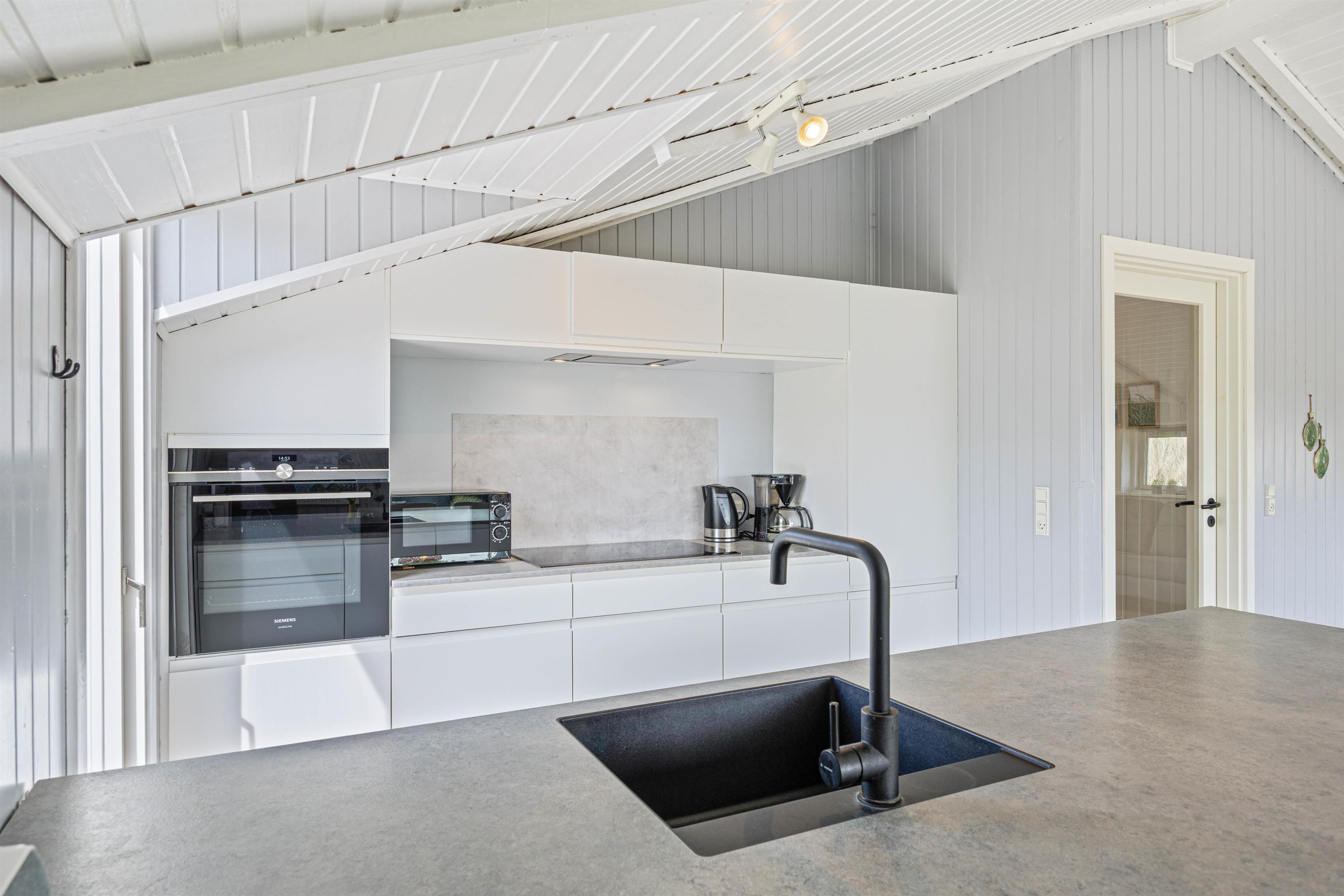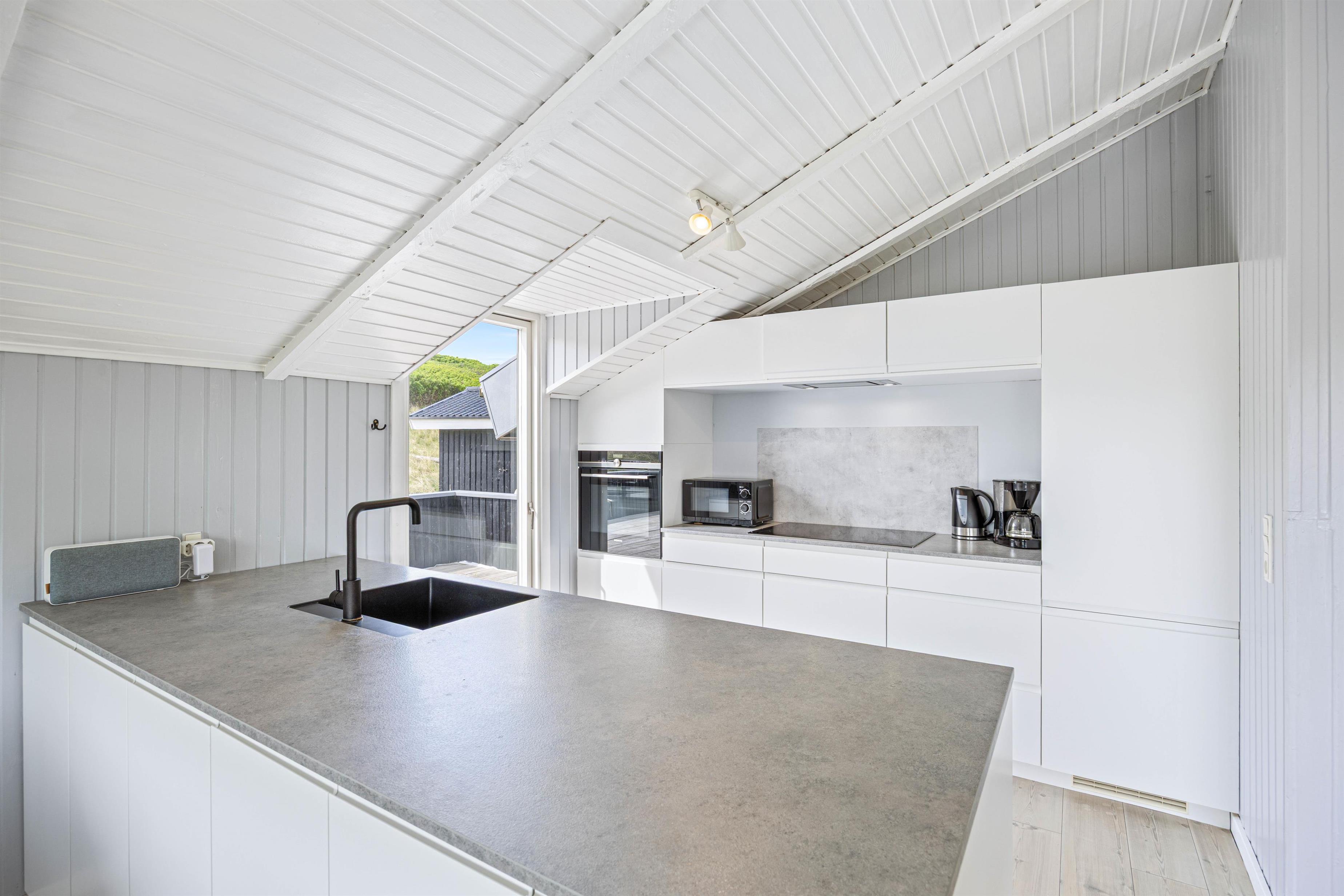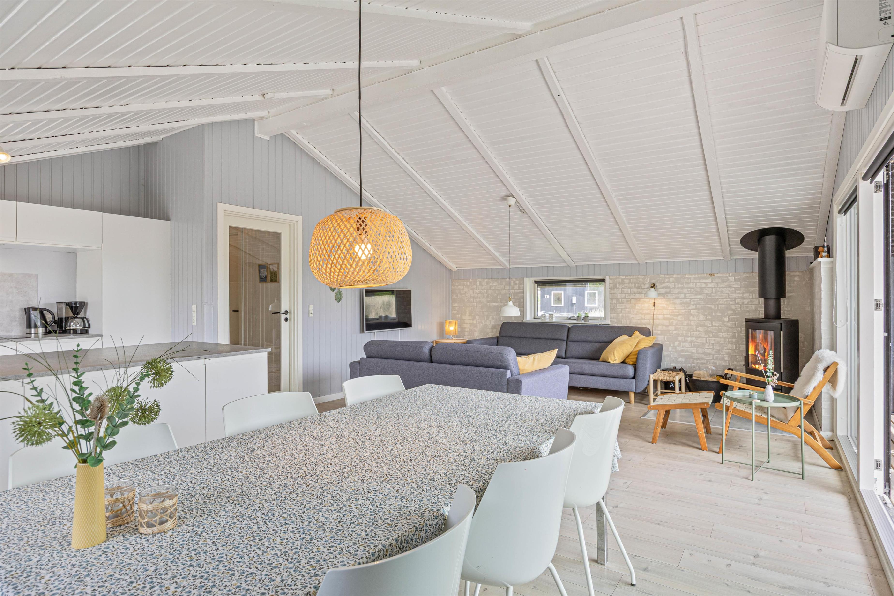 Hele familien kan samles til gode stunder i alrummet, hvor stue, spiseplads og køkken ligger i åben forbindelse. Her kan I også tænde op i brændeovnen, som både spreder varme og en ekstra hyggelig feriestemning.