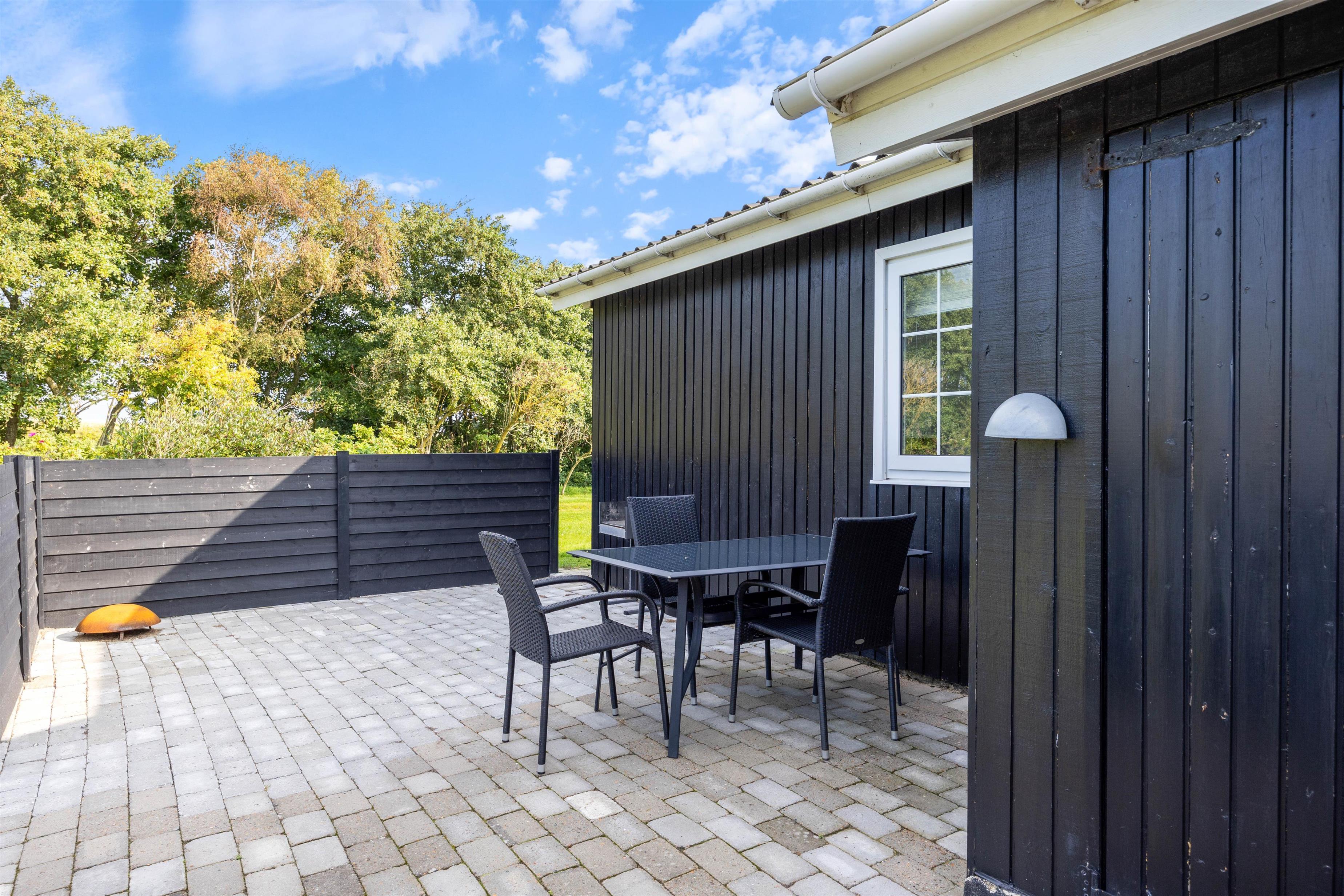 Sommerhuset ligger på en 1611 m² stor plænegrund, hvor der er god plads til sjov og leg for både børn og hunde. Måske du vil udfordre resten af ferieflokken til et sjovt spil vikingespil? Når I har brugt en masse energi på aktiviteter, kan I slappe af og solbade i havemøblerne eller på liggestolene.