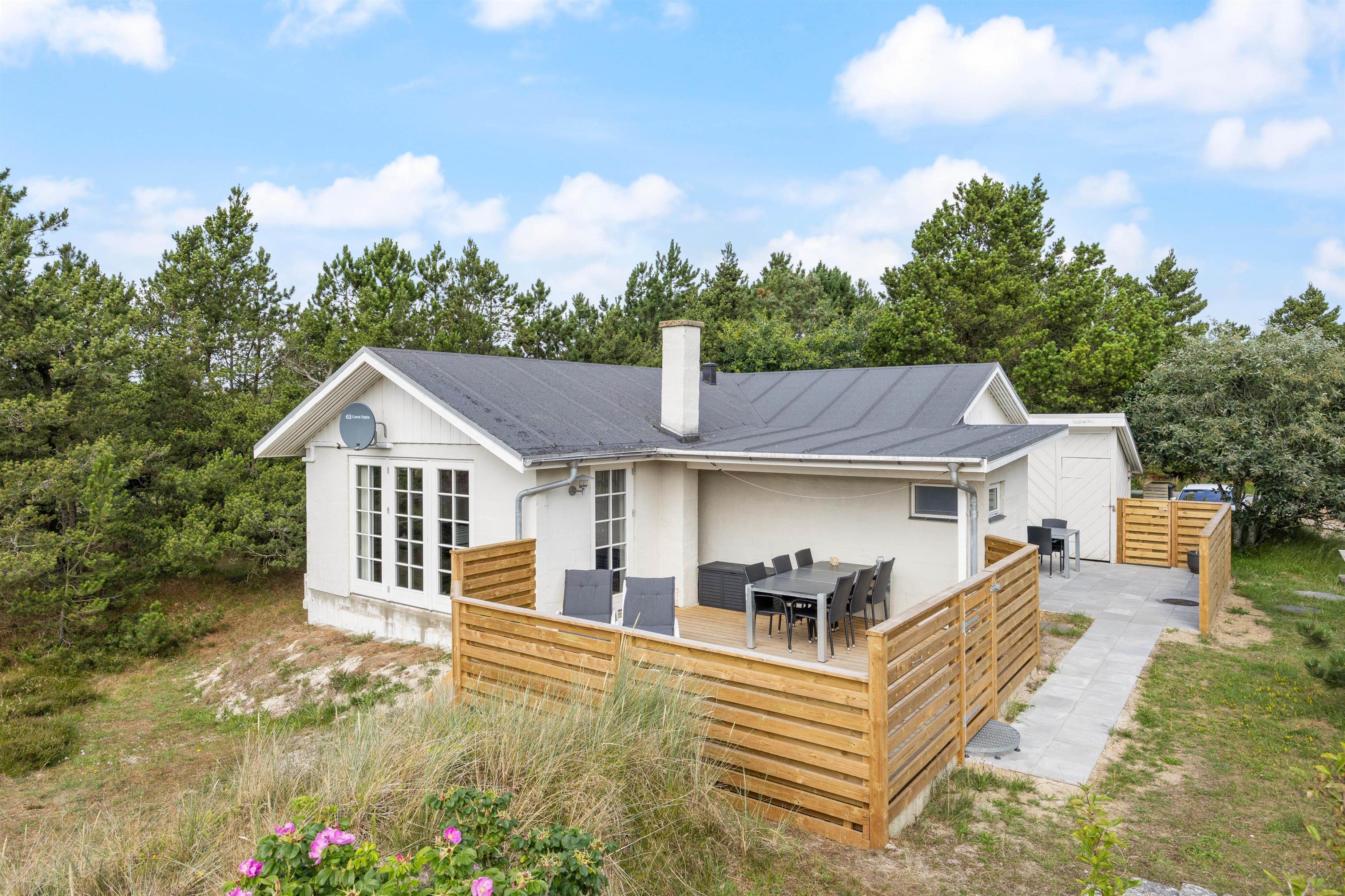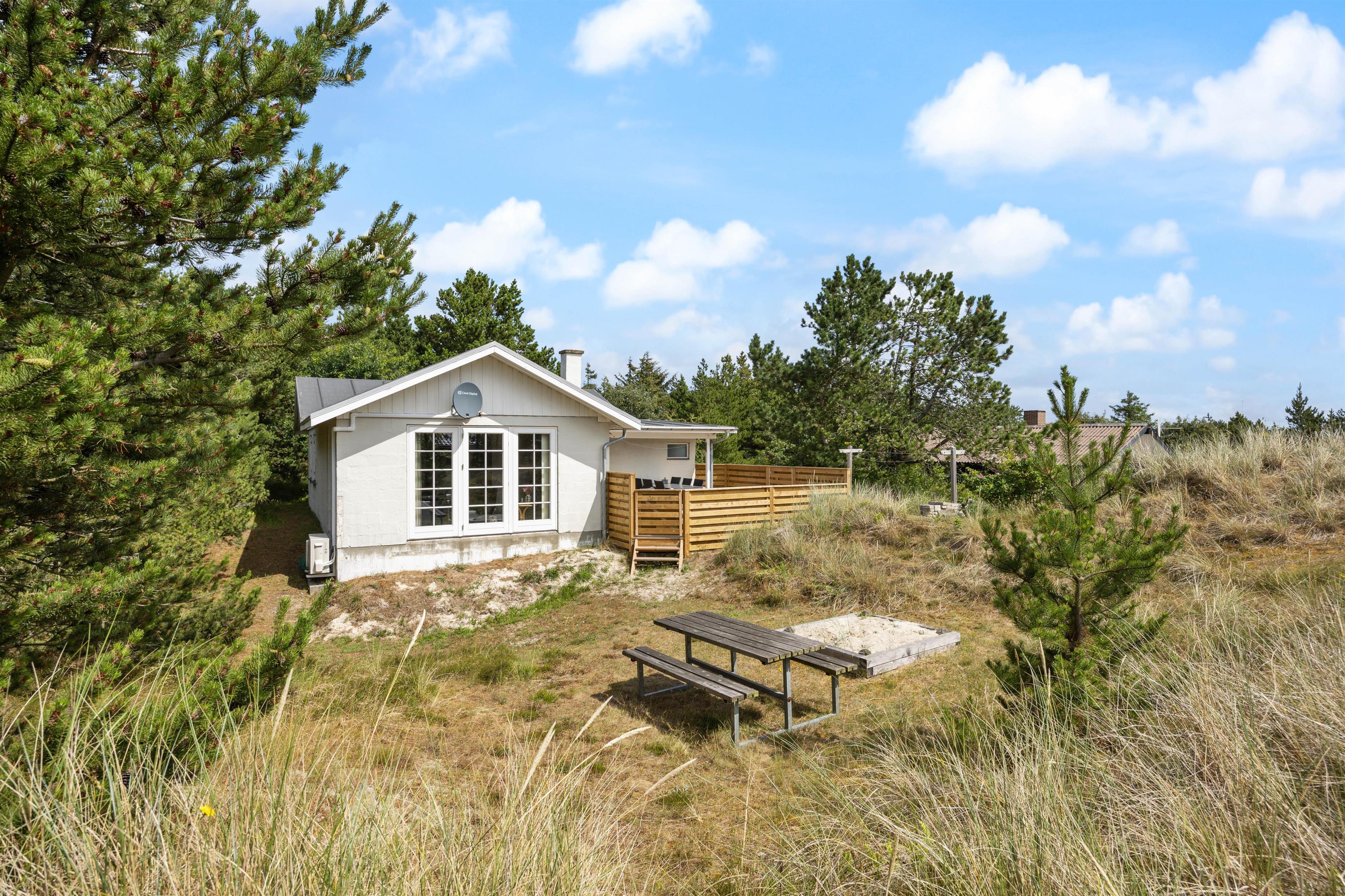 I den sydlige ende af Holmsland Klit - mellem Ringkøbing Fjord og Vesterhavet - finder I dette hyggelige og familievenlige feriehus.