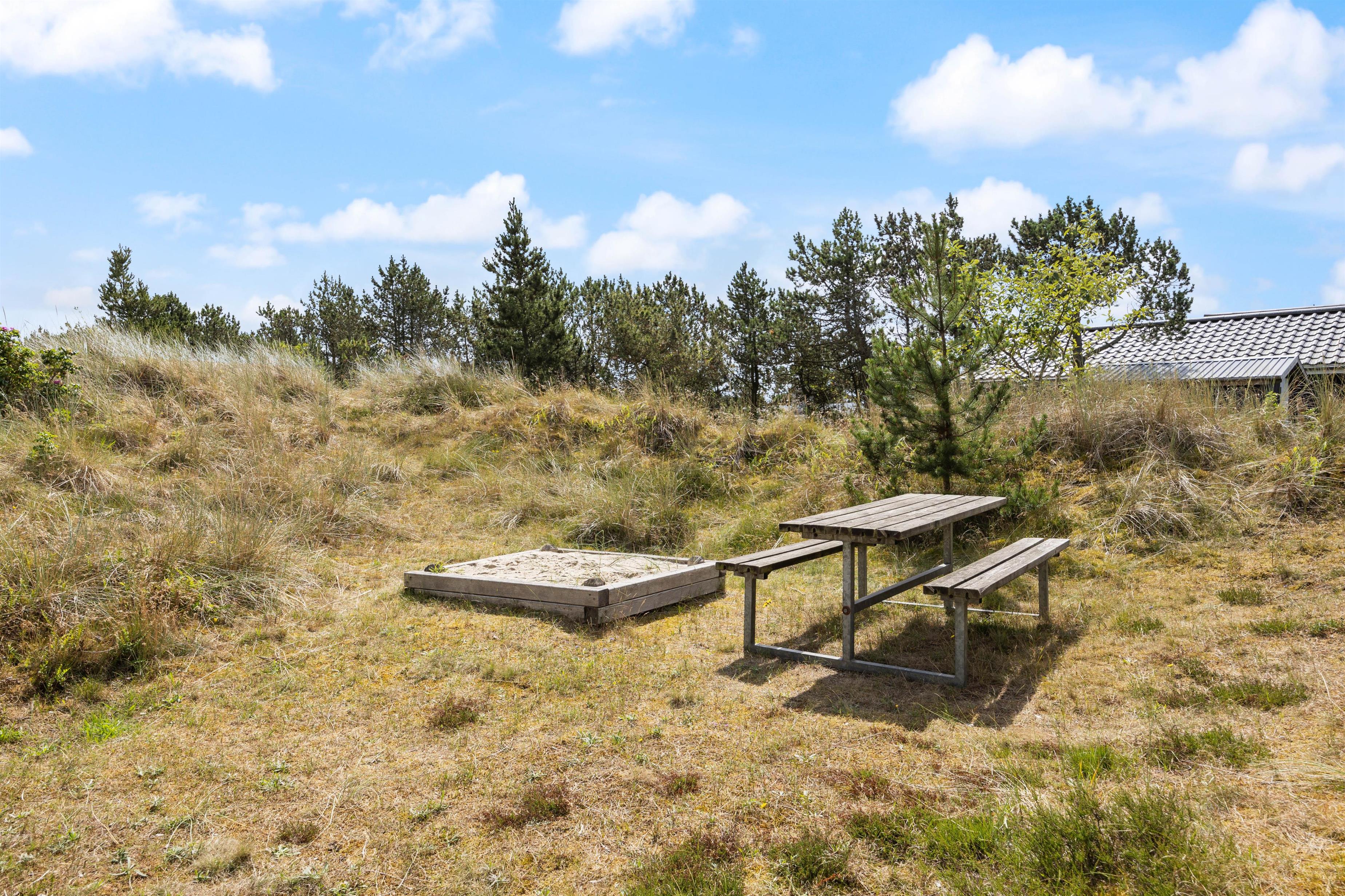 Der er også tænkt på de yngste gæster, som kan bygge sandslotte i sandkassen.