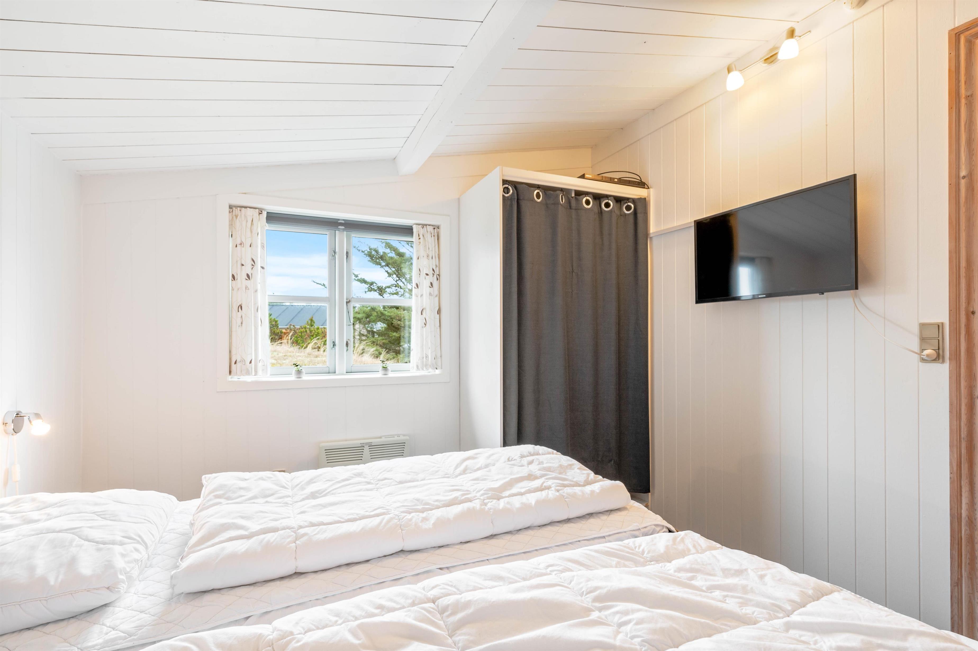 Planløsningen i sommerhuset byder derudover på 3 rummelige soveværelser med gulvtæppe samt ét badeværelse. I de 2 soveværelser finder I en dobbeltseng, mens det sidste er indrettet med en enkeltmandsseng. Fra badeværelset har I adgang til saunaen, som bidrager med lidt ekstra luksus på jeres ferie. Her kan I for alvor få ladet batterierne op efter en skøn dag ved stranden. I sommerhuset finder I også en vaskemaskine.