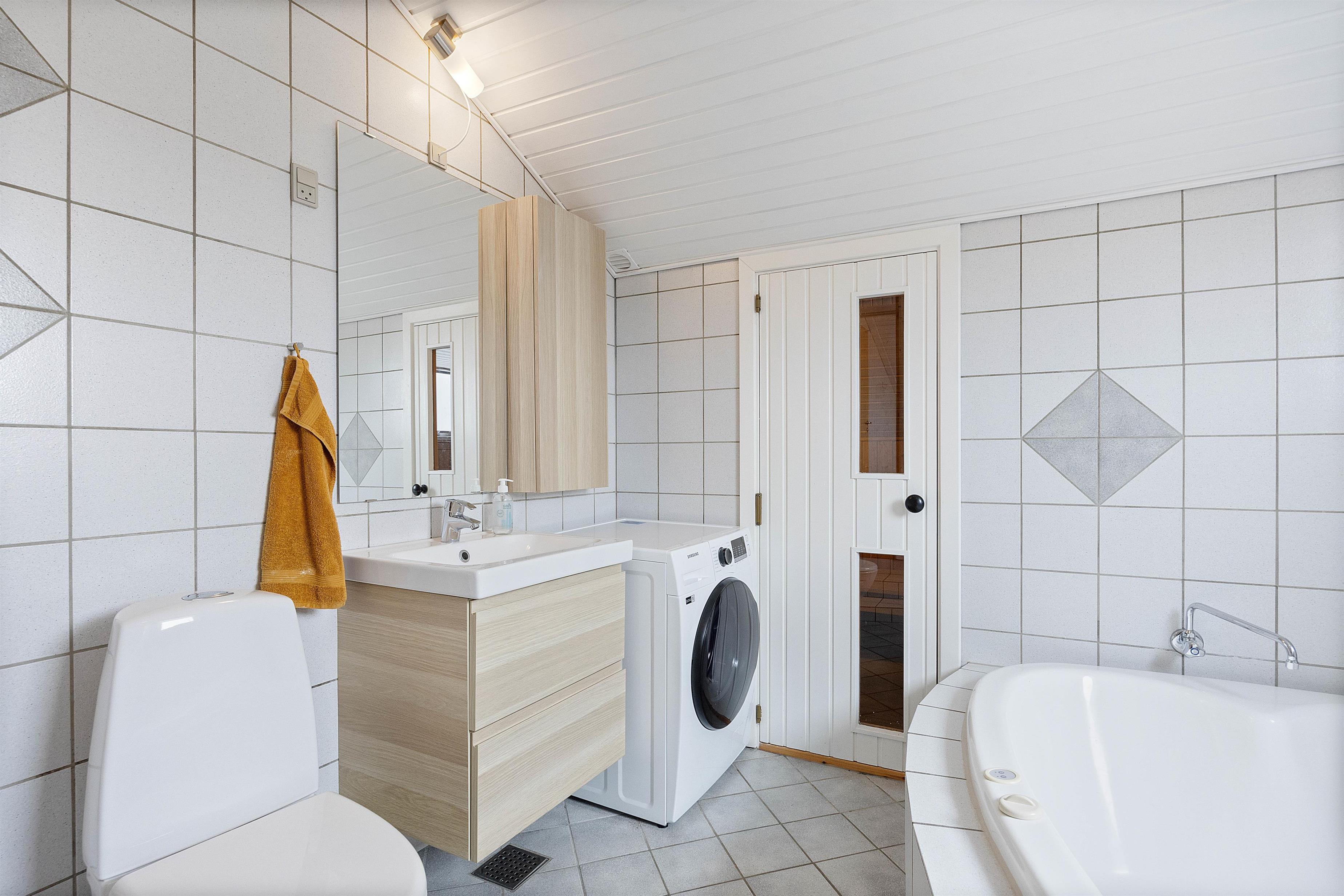 Der er 2 badeværelser med gulvvarme i feriehuset – i forbindelse med det store badeværelse er også spabad og sauna, så her kan I arrangere jeres egen lille wellnessaften. I finder også vaskemaskine og tørretumbler i feriehuset, så I kan opfriske garderoben eller håndklæderne i løbet af ferien. Der er 3 soveværelser med komfortable dobbeltsenge og 1 soveværelse med en enkeltseng, så I kan arrangere jer, som det passer jer bedst. Læg mærke til, at den friske vesterhavsluft gør noget godt for nattesøvnen. I feriehuset er en energibesparende varmepumpe, som hurtigt og effektivt sørger for et behageligt indeklima og en god temperatur.