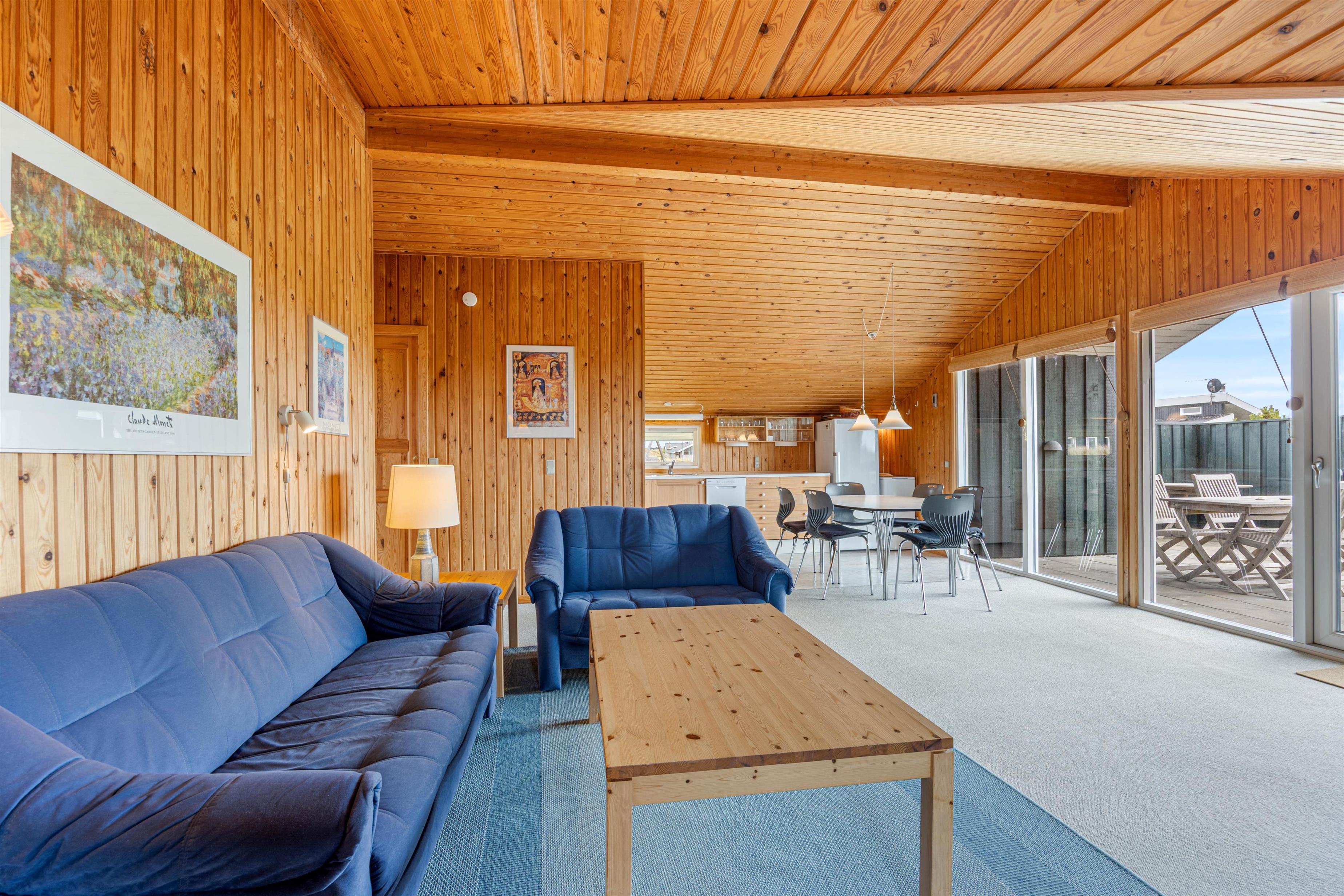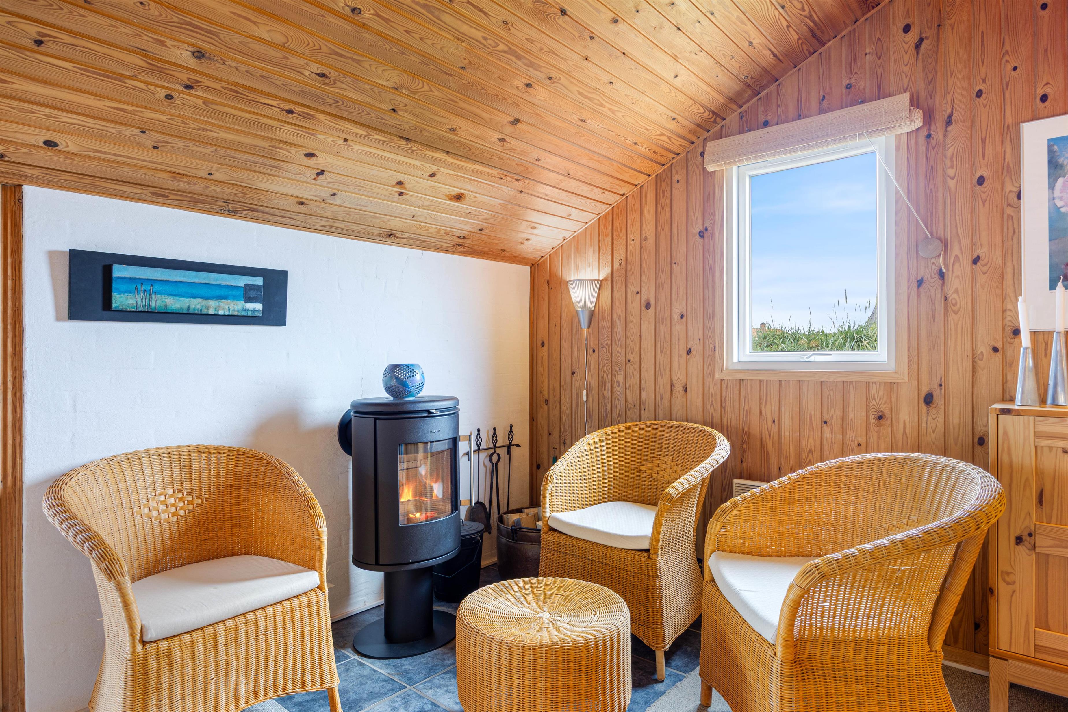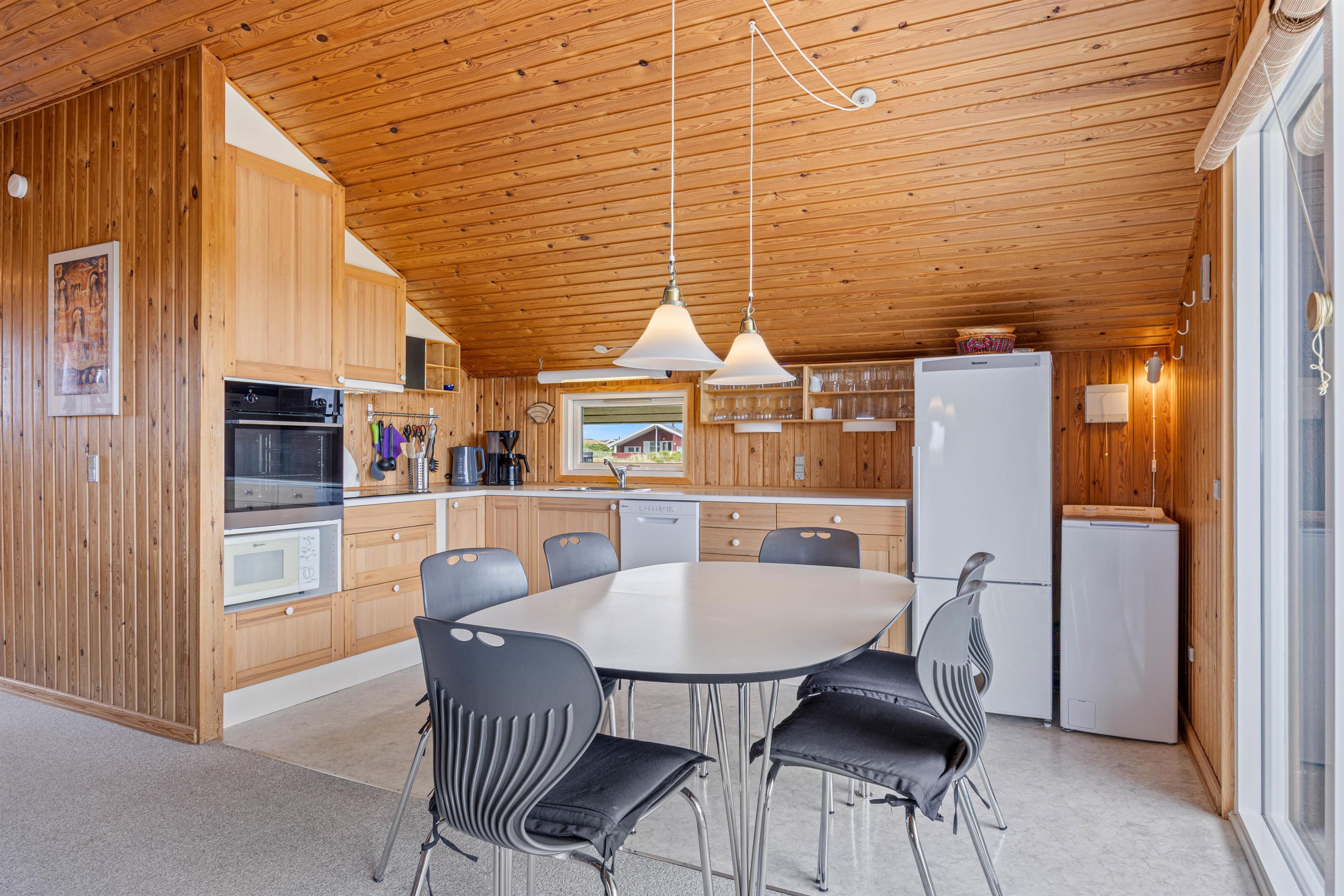 Det åbne køkken- og stueområde indbyder til fælles madlavning og masser af samvær. Efter middagen klarer opvaskemaskinen resten for jer, mens I kan læne jer tilbage på sofaen med et glas vin. I de stormende og kølige årstider sørger brændeovnen ikke kun for varme, men tilfører også en ægte feriestemning.