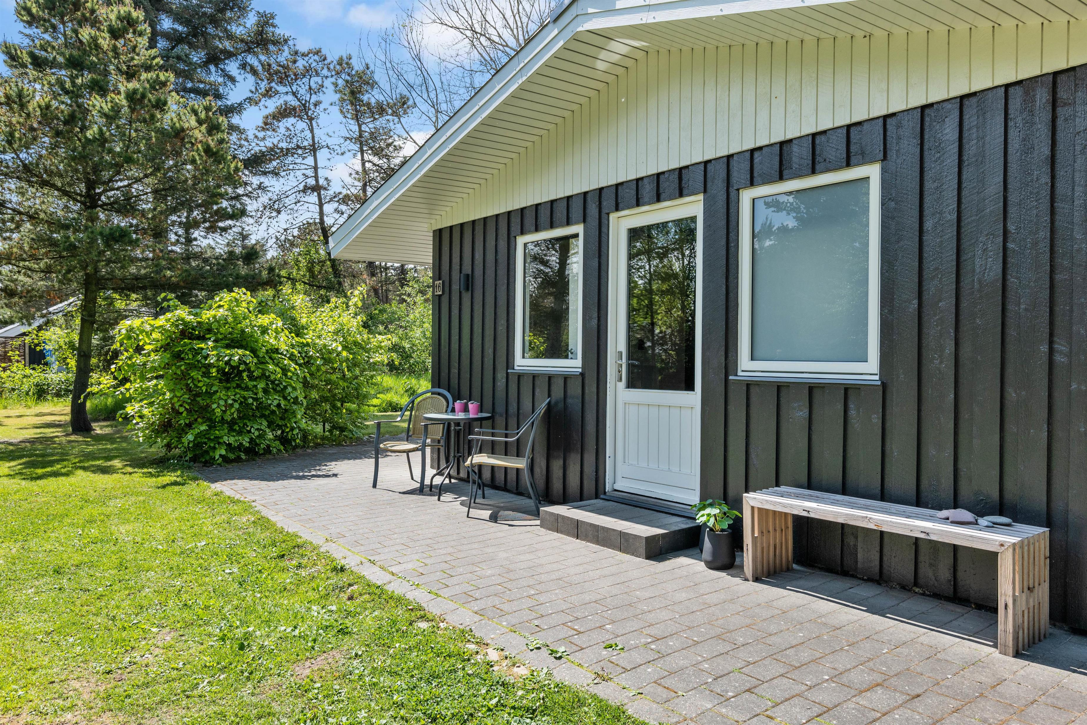 Sommerhuset byder på gode terrasser – mod vest en delvist overdækket terrasse og mod syd en dejlig, åben og stor terrasse, som er velegnet til brug i løbet af dagen. Her kan I solbade, grille eller bare slappe af med en bog i den friske luft.