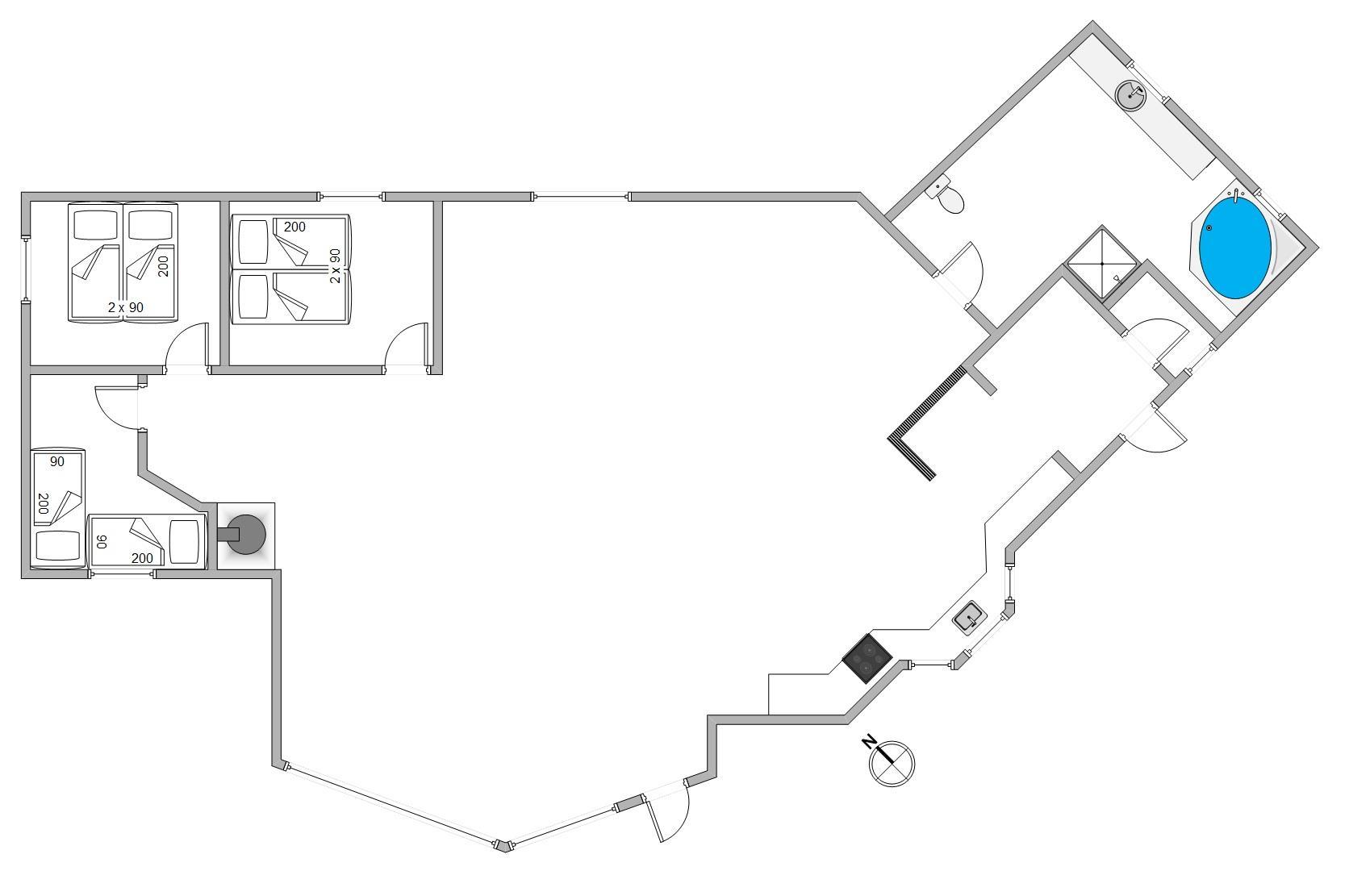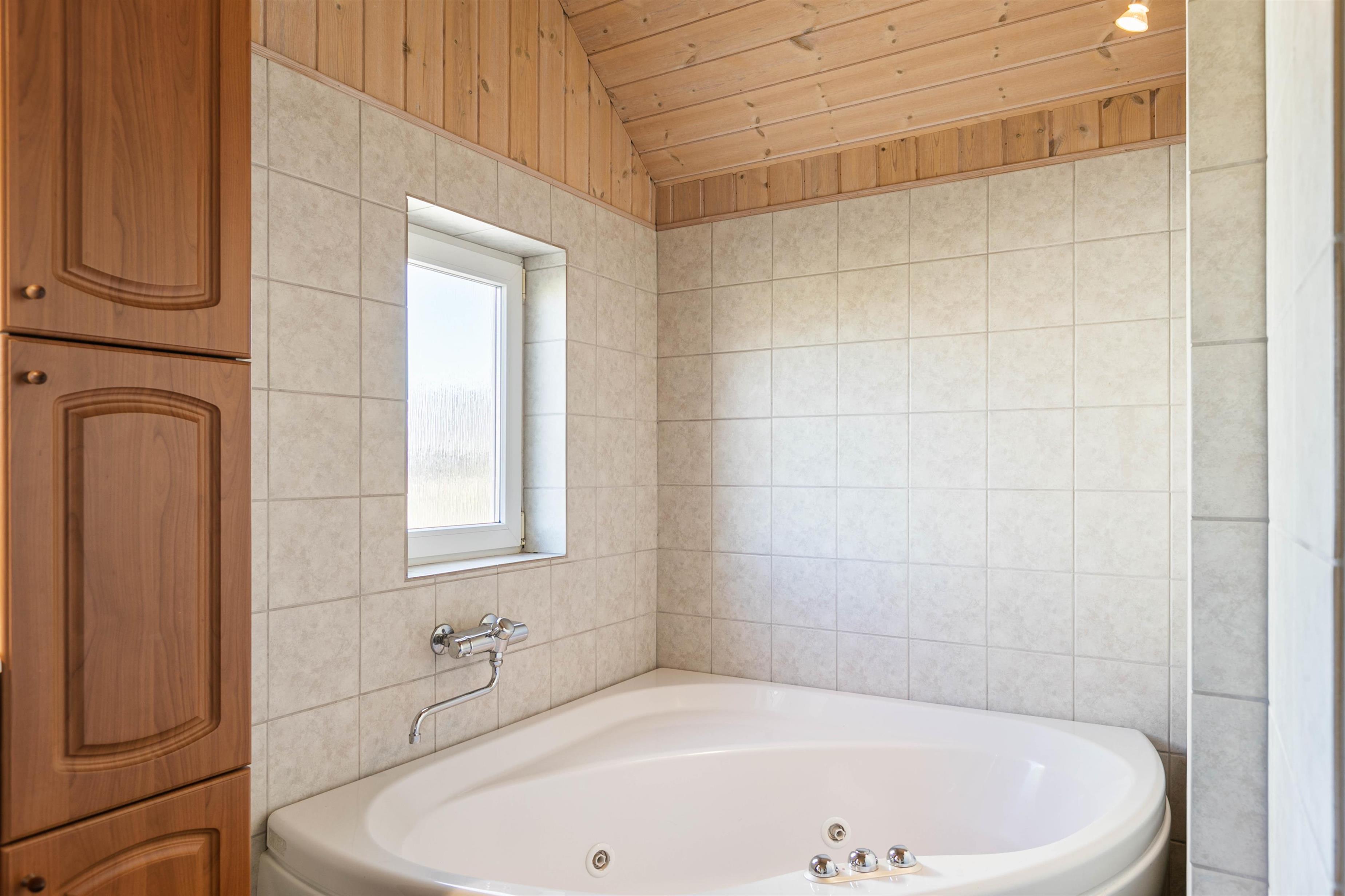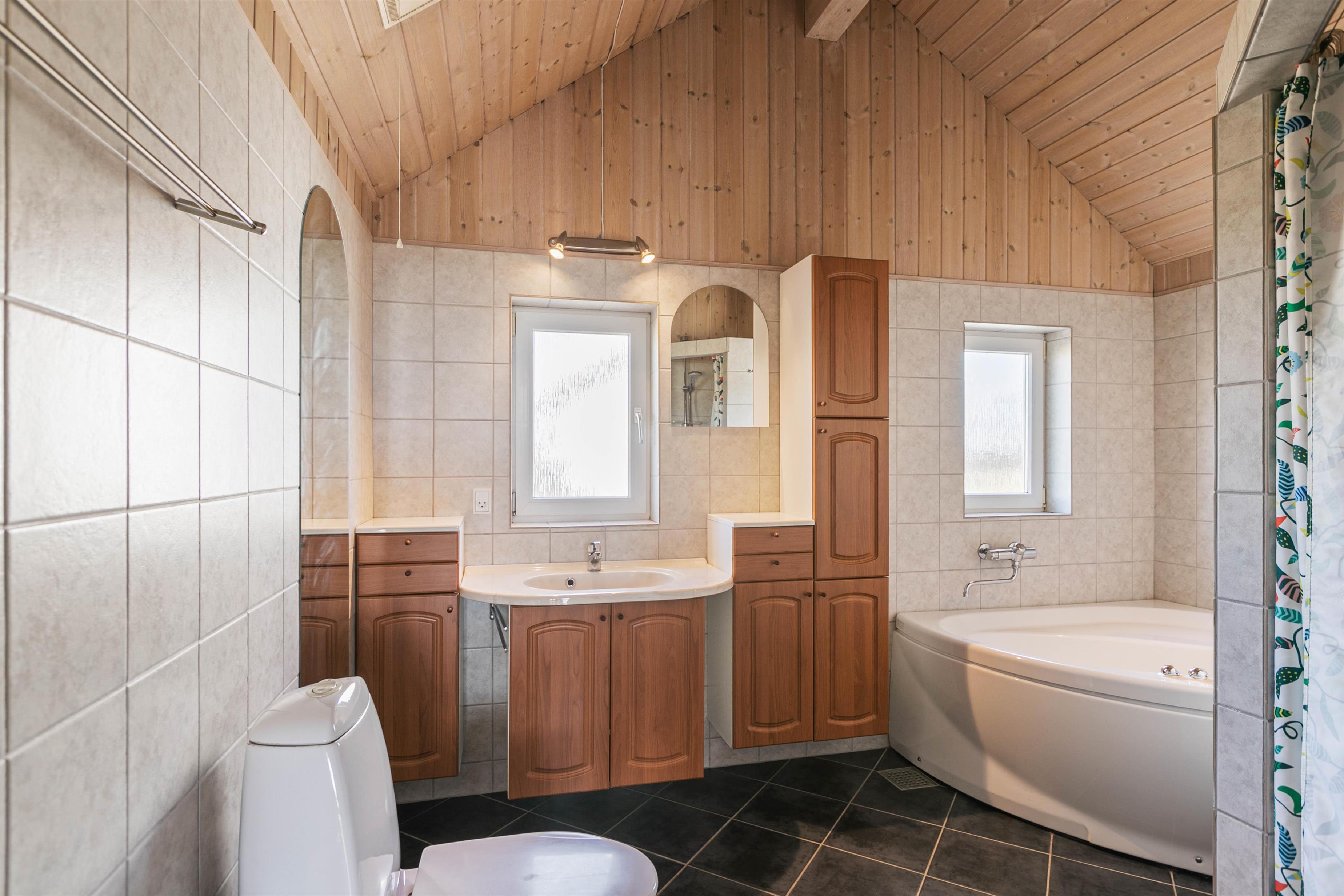 På badeværelset er der gulvvarme, og her finder I også et spabad, hvor I rigtig kan slappe af. Der findes intet bedre end at slutte dagen af med at få varmen i det boblende vand efter en frisk tur på stranden.