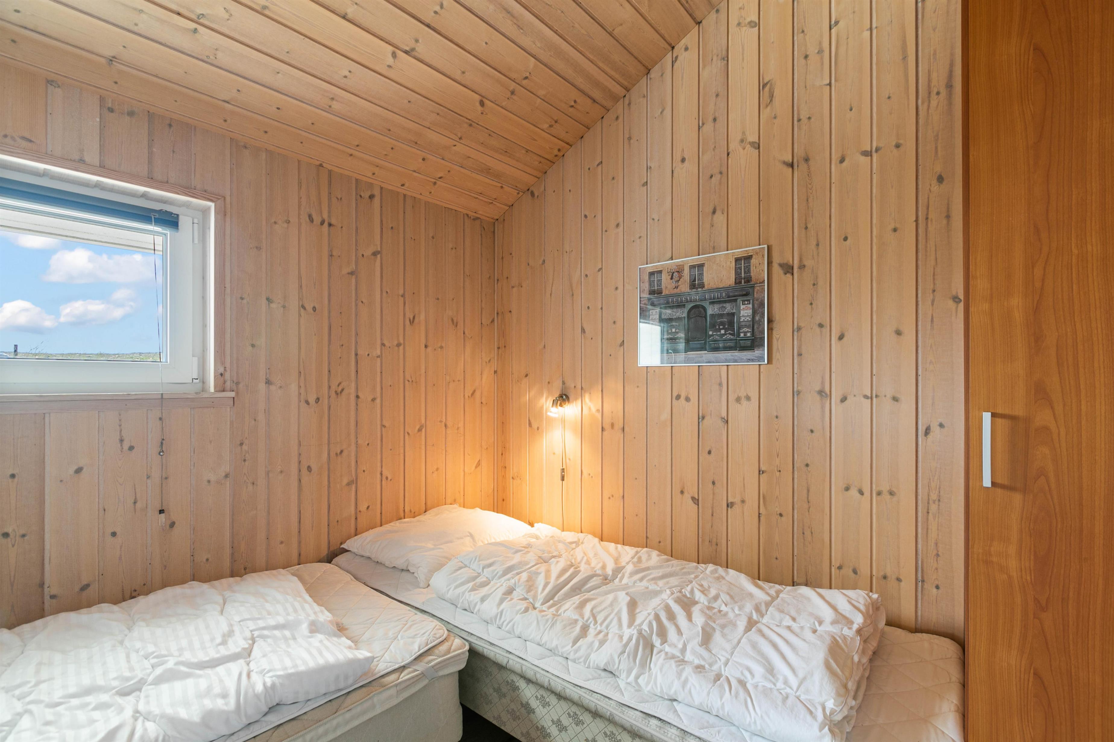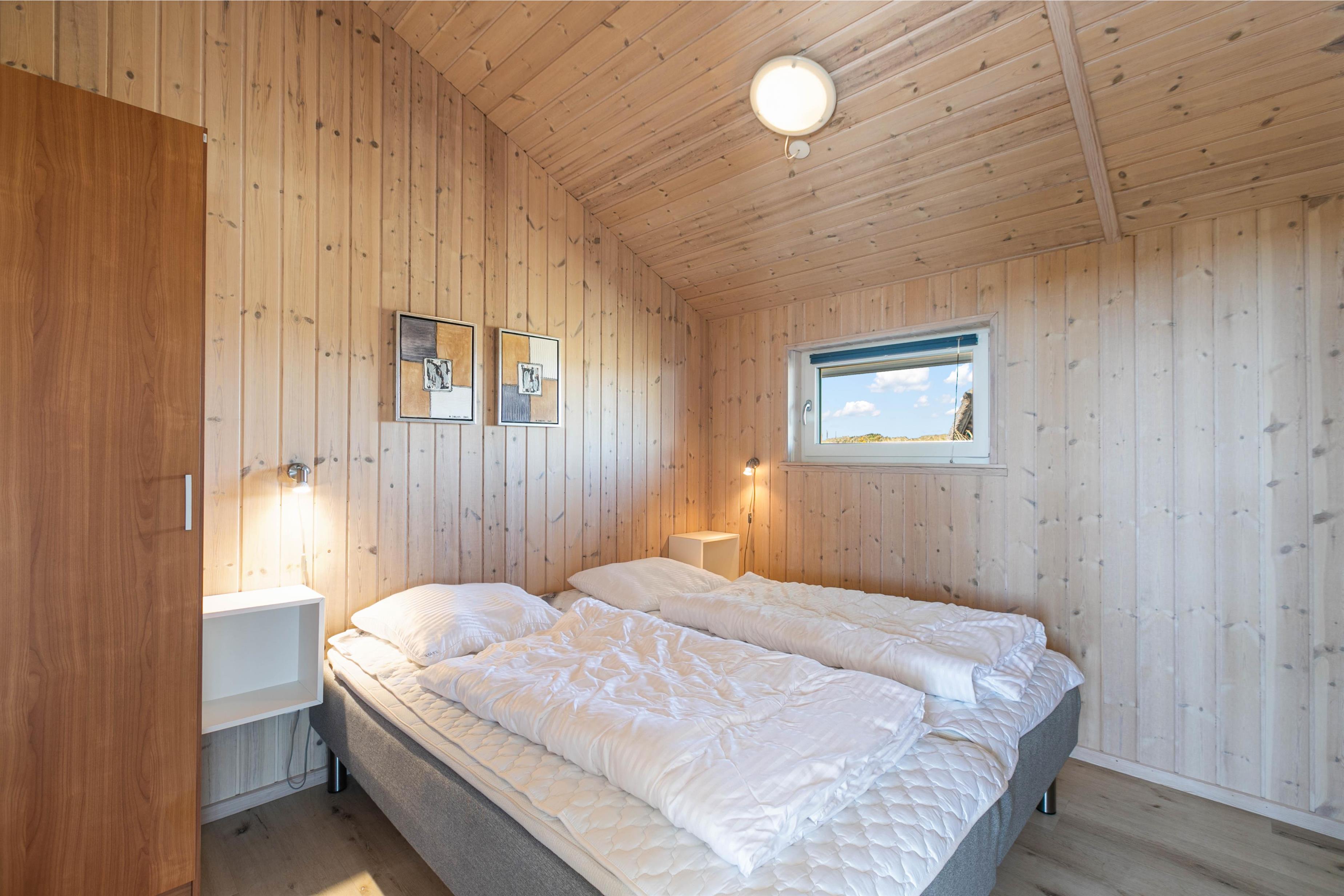 Det hyggelige sommerhus til 6 personer har 3 soverum, hvor der er dobbeltsenge på 2 af værelserne. På det sidste værelse finder I 2 enkeltsenge.