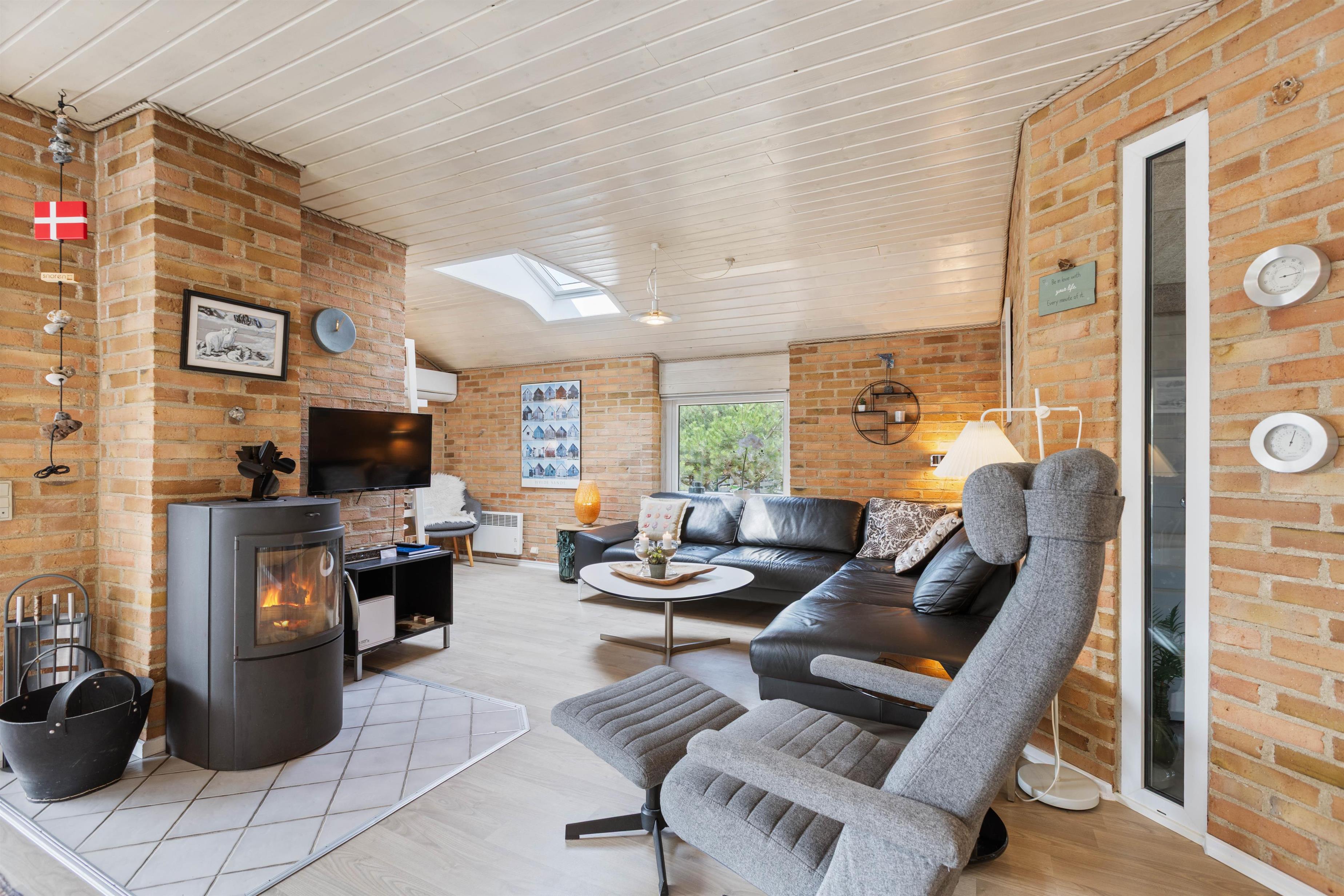 Sommerhuset på Humlegårdsvej 30 B rummer 4 soverum samt et køkken i forbindelse med den store stue, hvor der er plads til hele familien i de komfortable møbler foran feriehusets brændeovn. Her kan I koble jeres mobil til sommerhusets chromecast og derved streame lige, hvad I har lyst til.