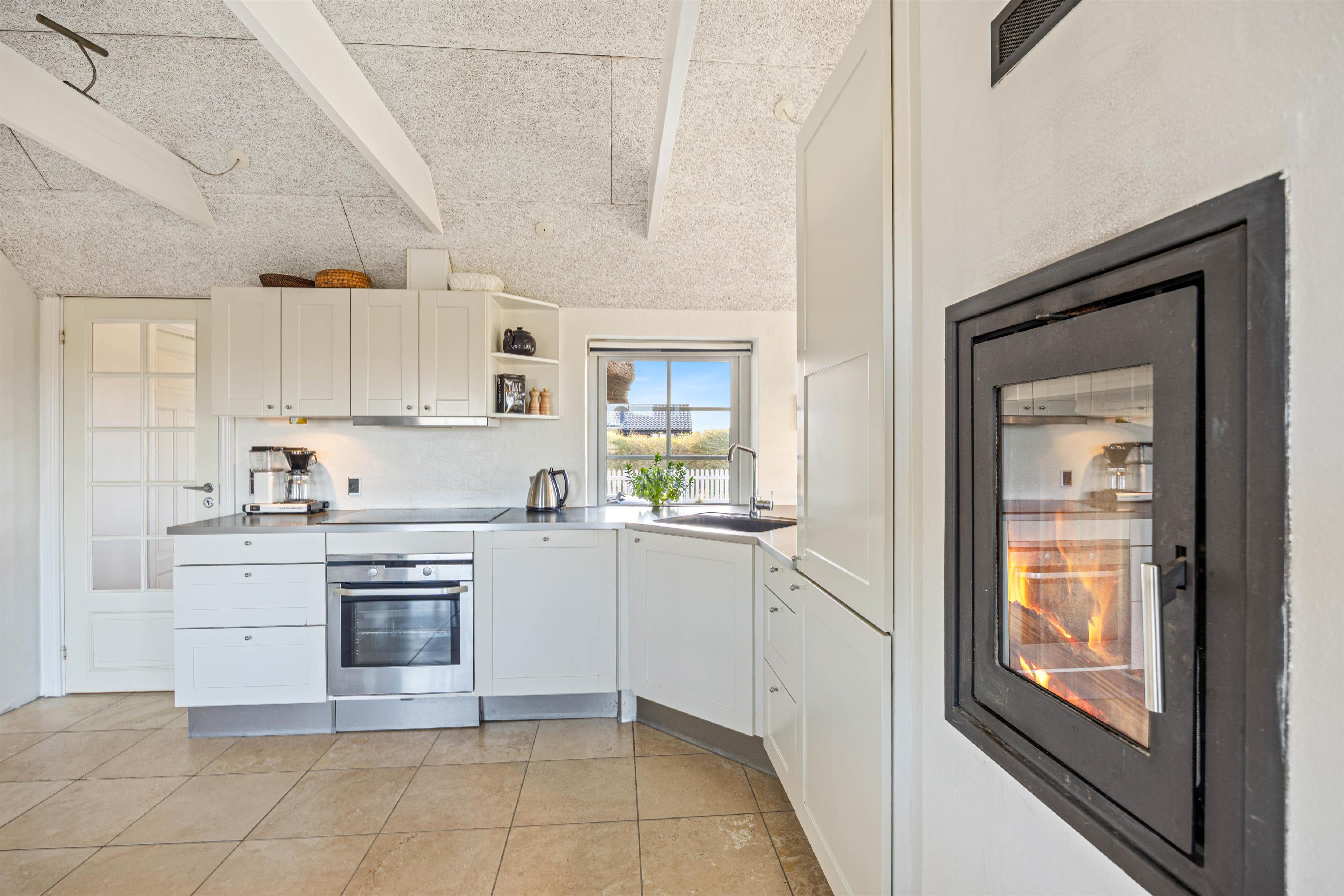 Sæt jer i sofaen og nyd et glas vin sammen, mens pejsen skaber en hyggelig atmosfære. Denne pejs er speciel, da du kan se ilden fra to sider, både fra sofaen og fra spisebordet. Der er desuden installeret gulvvarme i hele sommerhuset, som drives af en energibesparende varmepumpe. I kan lave hyggelige filmaftener med hele familen, der er både DVD afspiller og Chromecast.