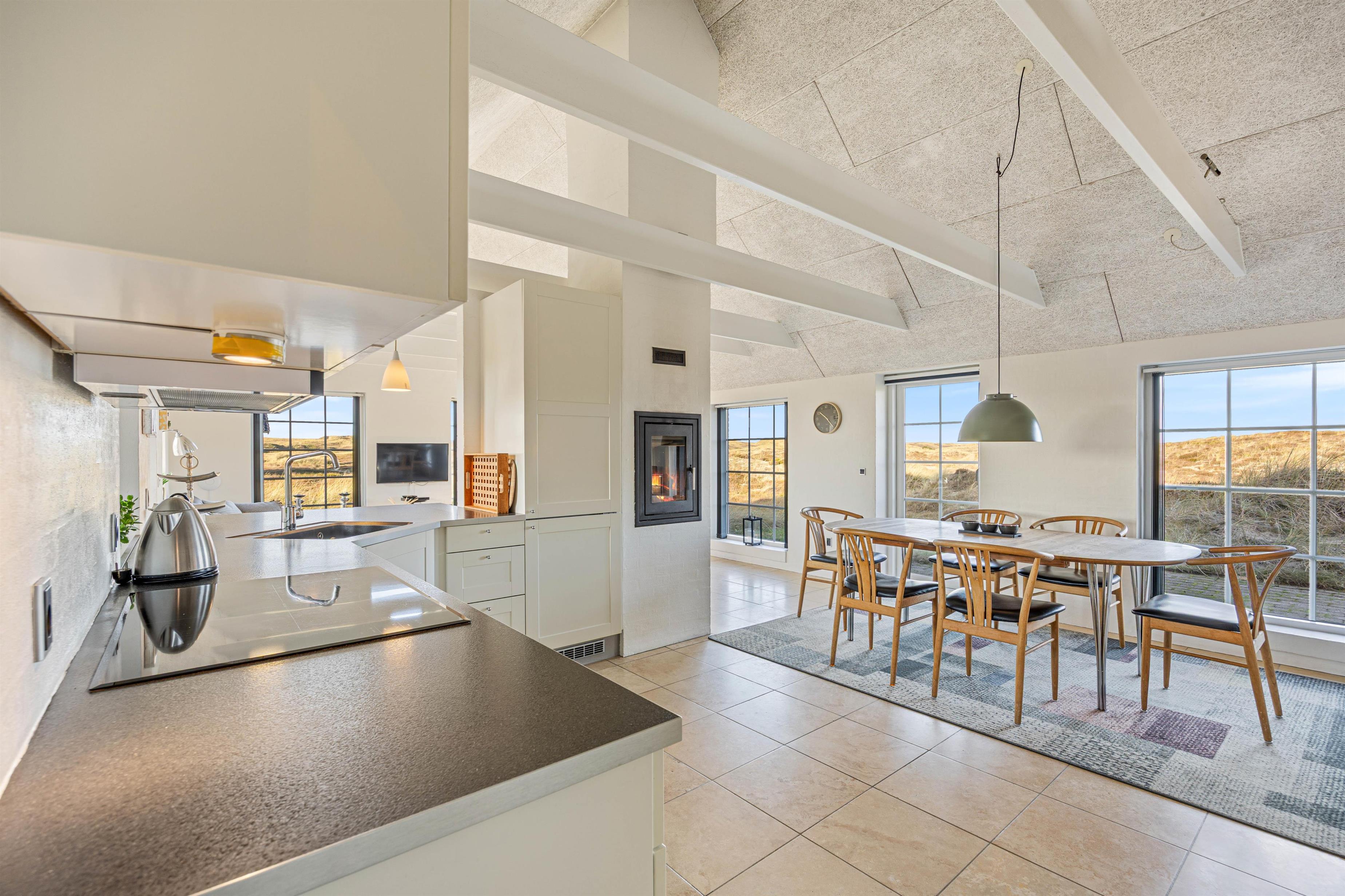 I det åbne køkken og spiseområde kan i arrangere madlavningsaftener og tilbringe mange hyggeligge timer sammen. Det praktiske og moderne køkken lader intet tilbage at ønske.