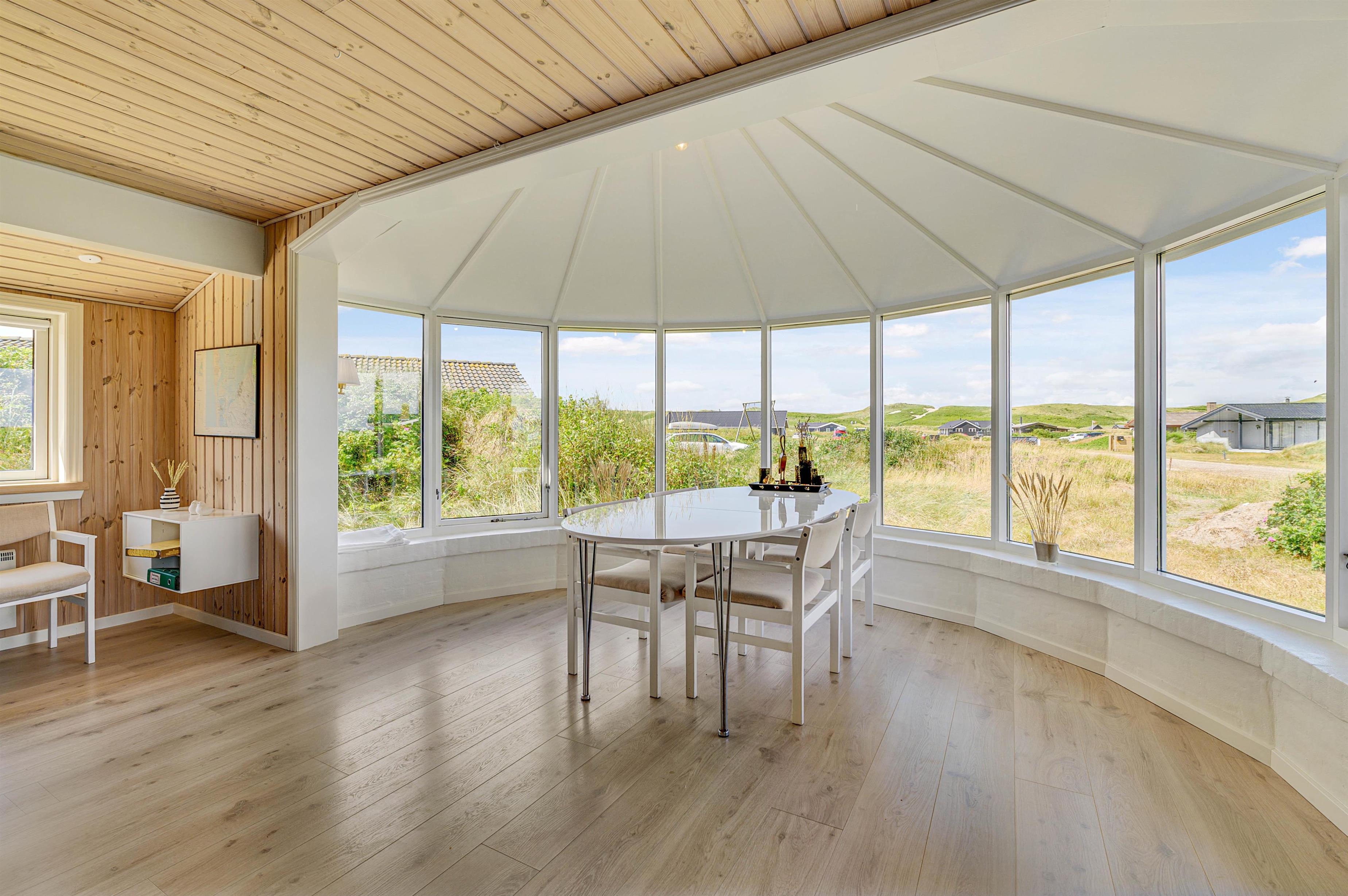 Opholdsrummet fremstår særdeles lyst og indbydende, og det store vinduesparti skaber en fantastisk atmosfære i rummet, og I vil hurtigt føle jer hjemme. Fra den hyggelige havestue er der desuden en smuk panoramaudsigt over landskabet mod vest.