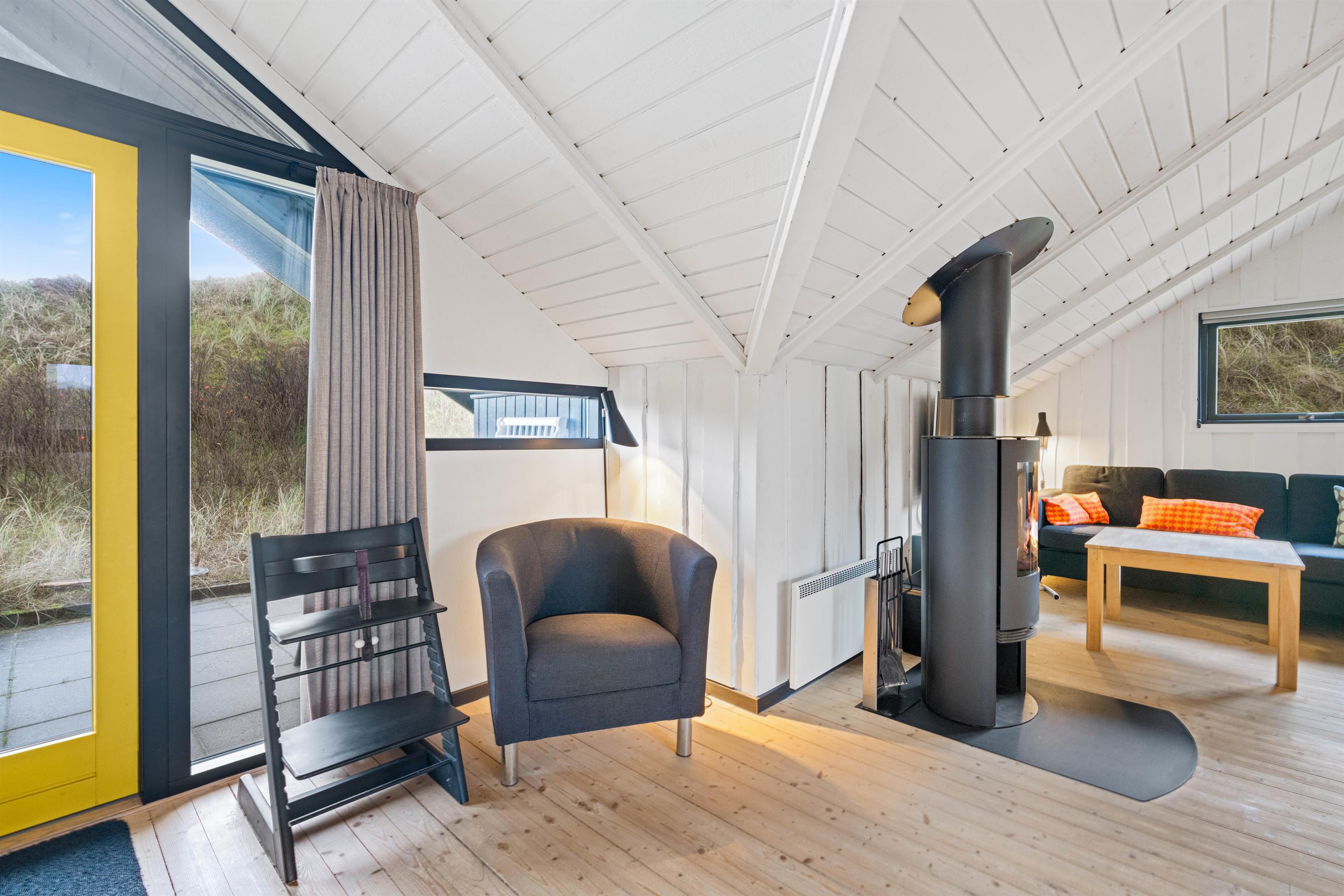 Her er et dejligt feriehus, der inviterer til afslapning og kvalitetstid med familien. Farverne er afdæmpet og de smukke hvide trælofter og gulve, bidrager til en harmonisk indretning. Feriehuset har plads til 6 feriegæster og har 3 gode soveværelser, hvoraf det ene er indrettet med en køjeseng – det bliver uden tvivl et højdepunkt for flokkens mindste.