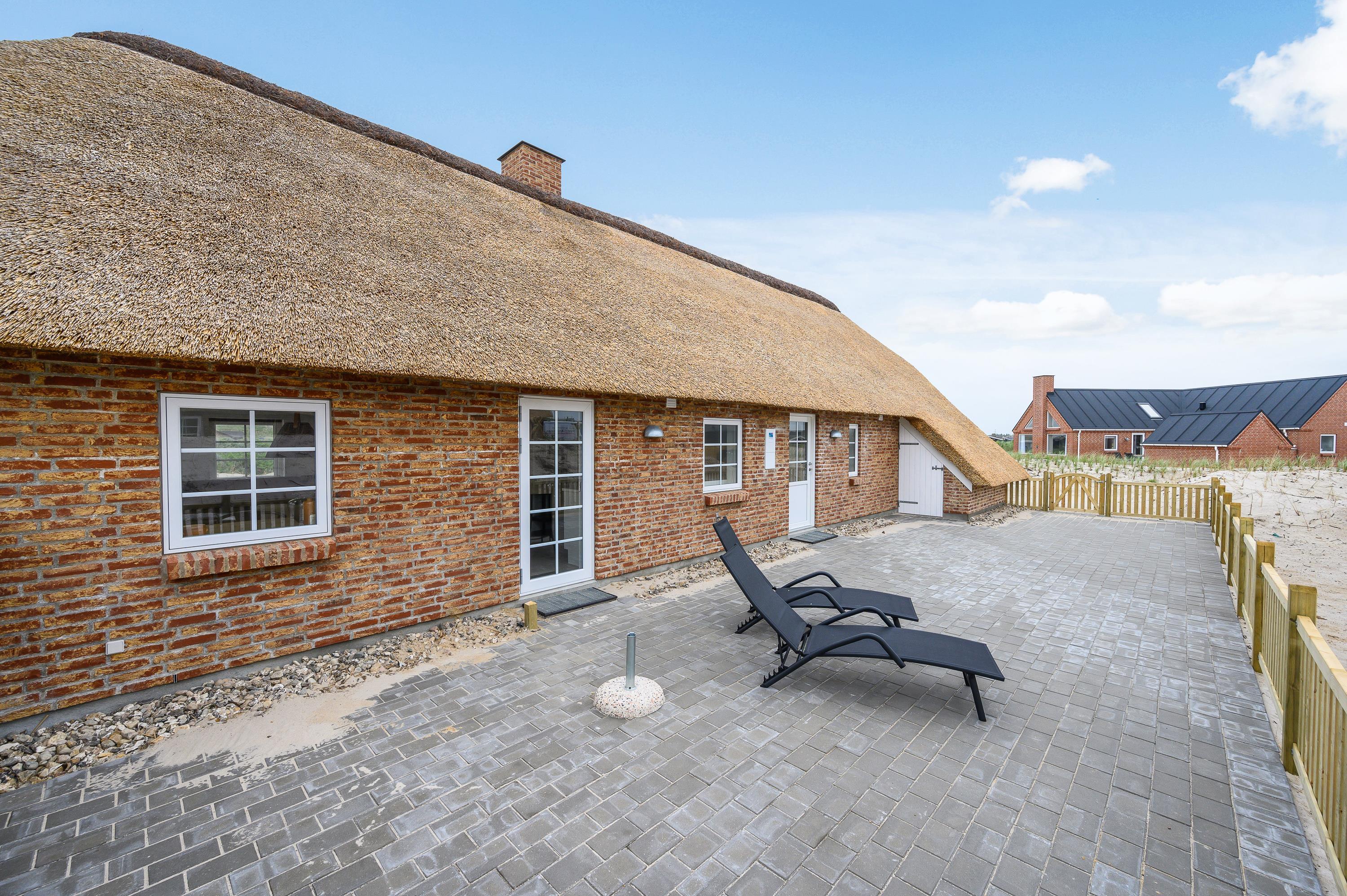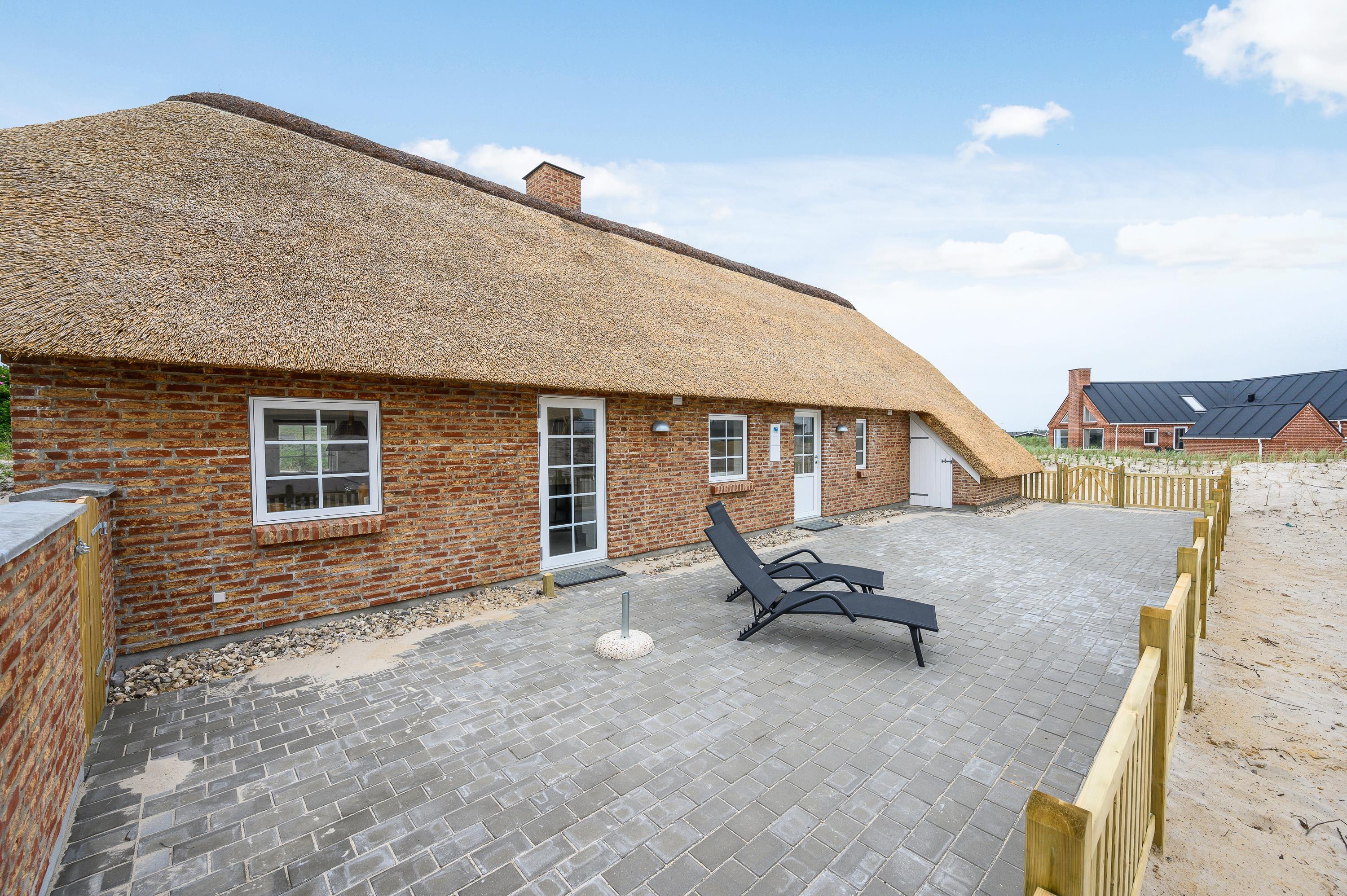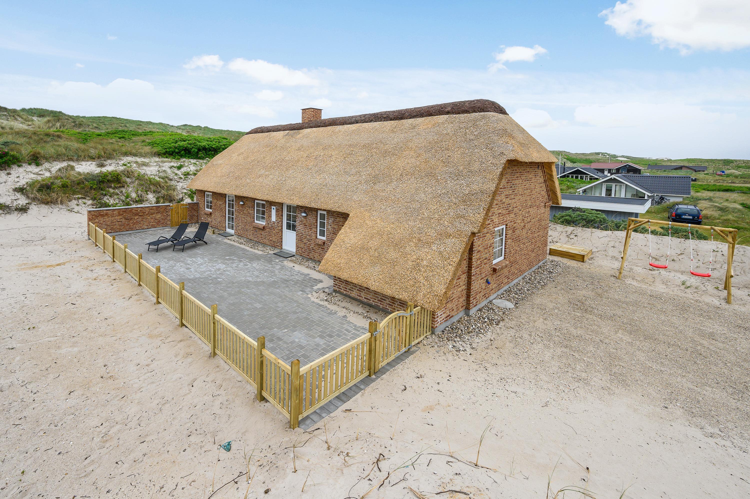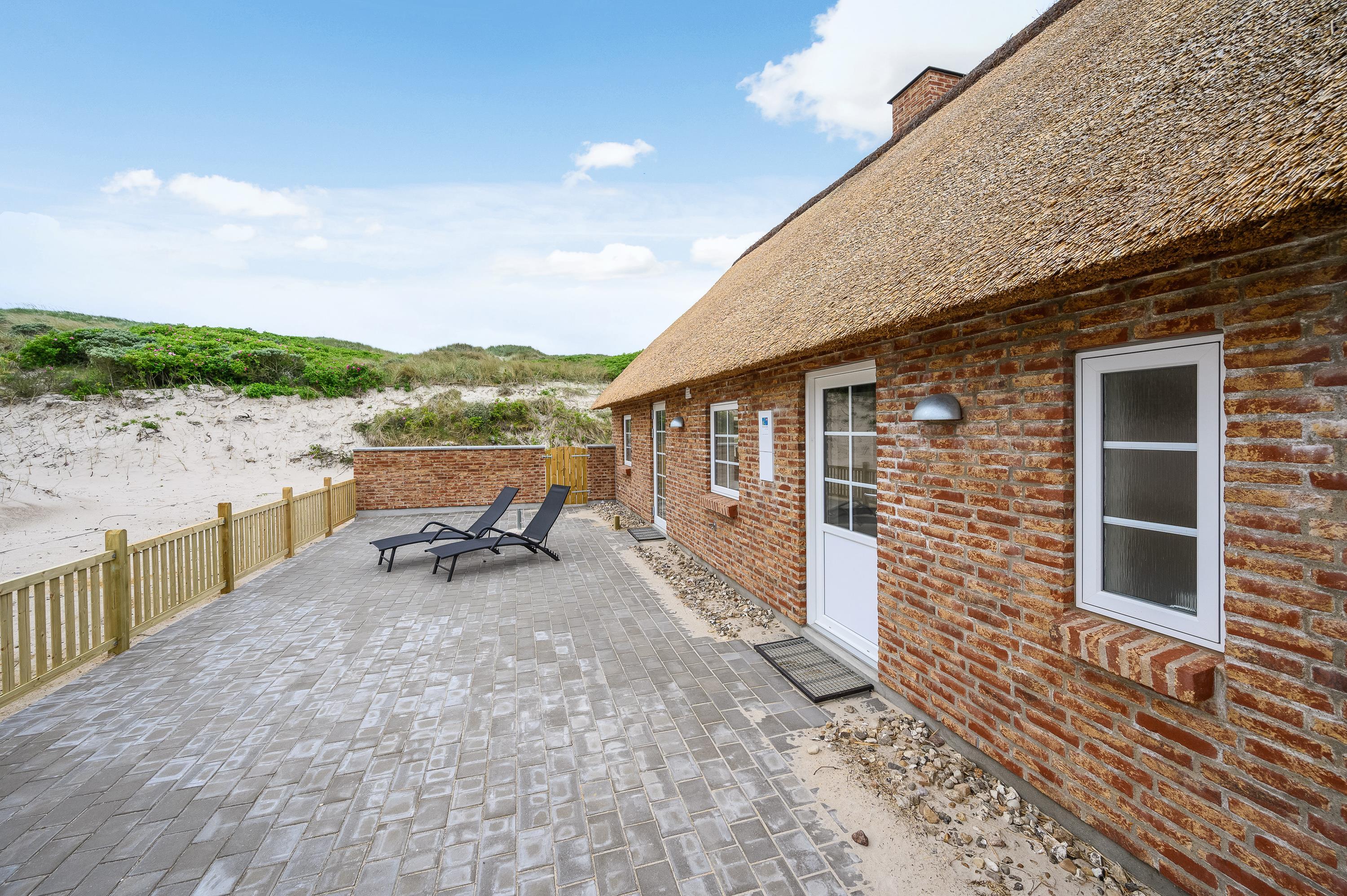 Liggestole, havemøbler og en grill står til jeres rådighed på den store terrasse, så I kan lægge jer godt til rette og nyde de varme feriedage udendørs og afslutte dem på bedste vis med god mad på grillen. Alt sammen med lyden af brændingen i baggrunden fra den nærliggende strand.