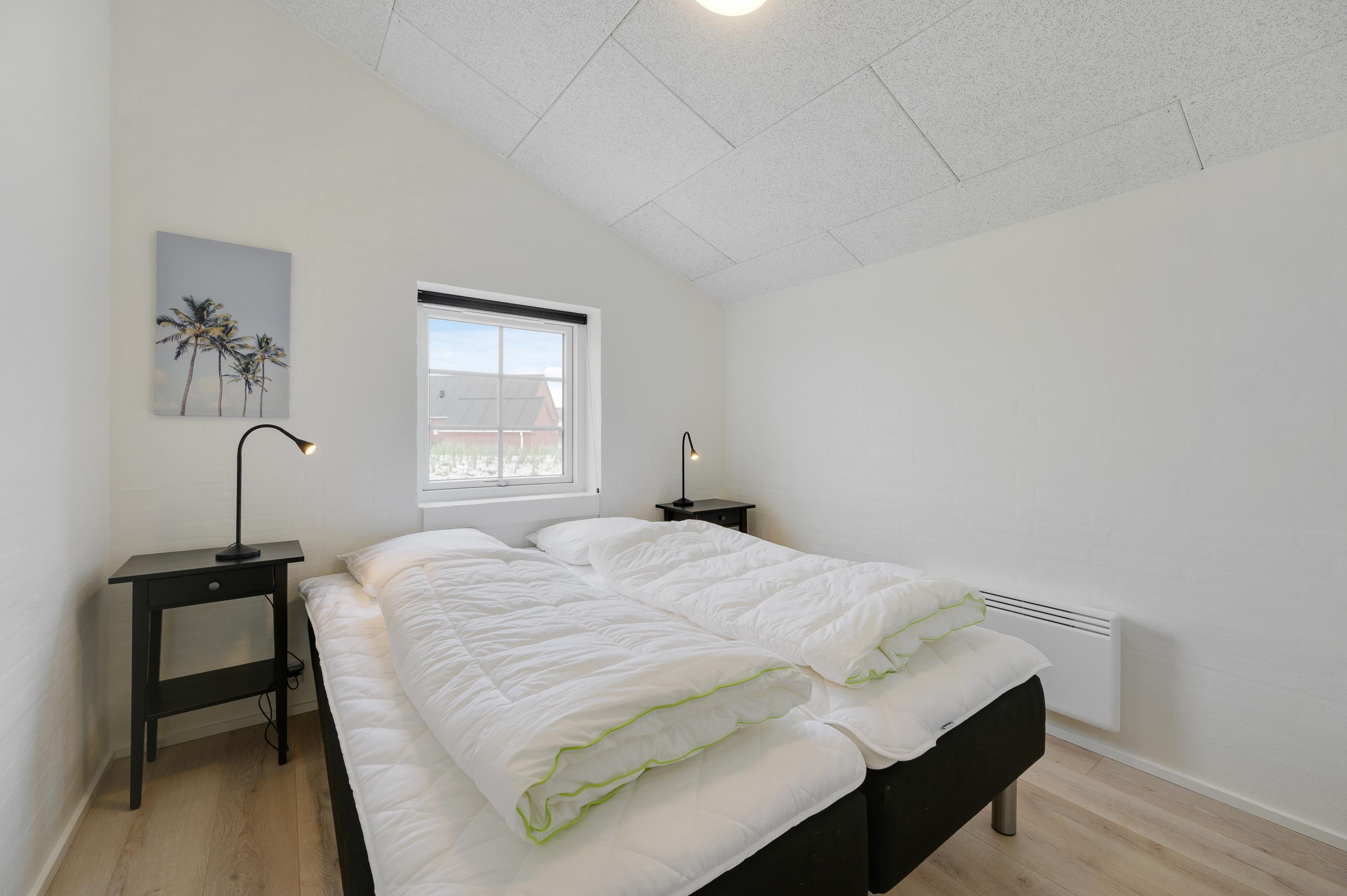 I det lyse sommerhus på Bjerregårdsvej 474 er der lagt op til en dejlig ferie for hele familien. Op til 6 personer kan fordele sig på de 3 soveværelser, hvoraf 2 er indrettet med dobbeltsenge og det tredje har 2 enkeltsenge. Med 2 badeværelser med gulvvarme er der ingen risiko for hverken kø til toilettet eller kolde fødder.