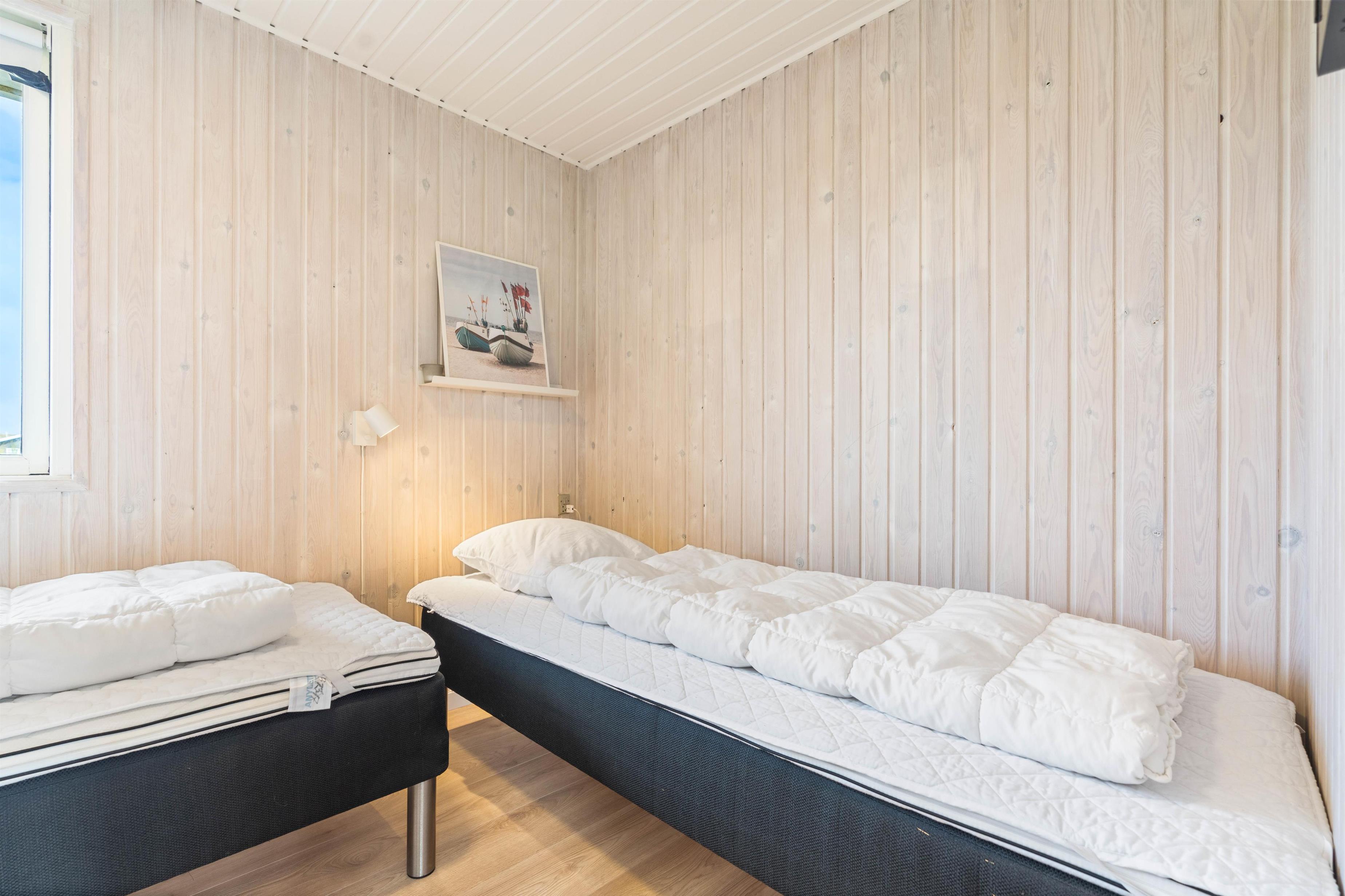 De 4 sovepladser er fordelt på 2 værelser, hvoraf det ene er indrettet med dobbeltseng. På det andet soveværelse finder I 2 enkeltsenge. Her kan I tanke ny energi til næste dags aktiviter i området eller turen til stranden.
