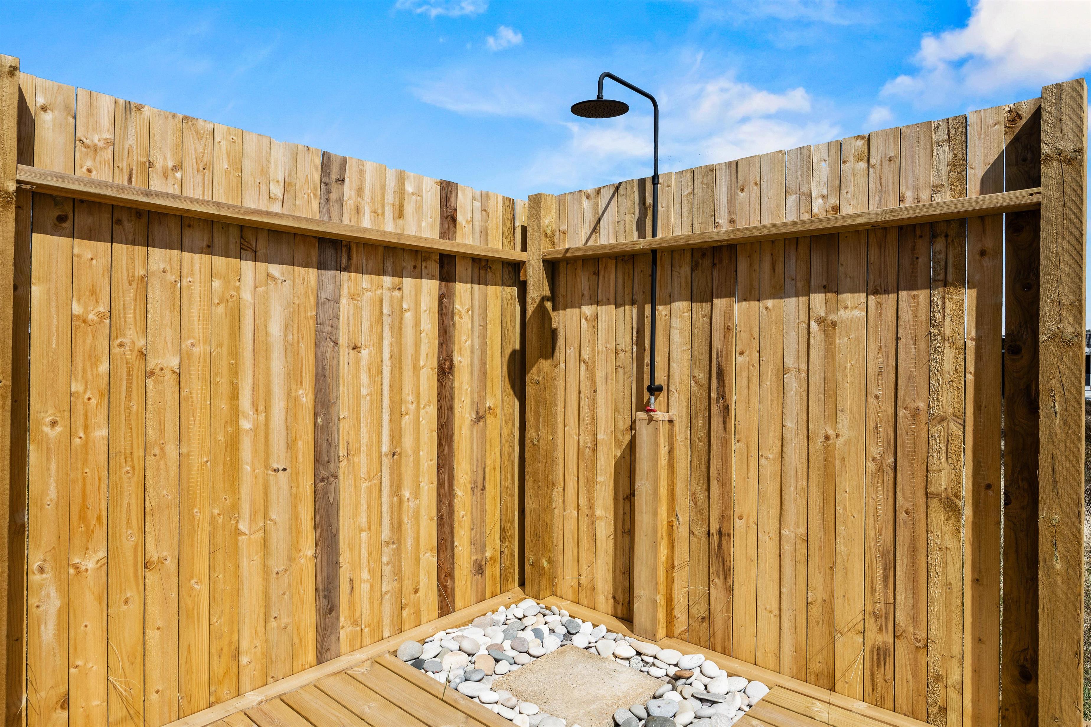 Familiens yngste kan glæde sig over gyngerne, der lover timevis af sjov. For dem, der elsker varme, venter den varme udespa til jer på terrassen – kom helt ned i gear under de varme bobler. Skønt er her også en udebruser, så I kan skylle sandet af efter en lang dag på stranden. Udebruseren kan benyttes fra april til november.