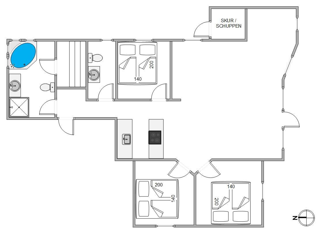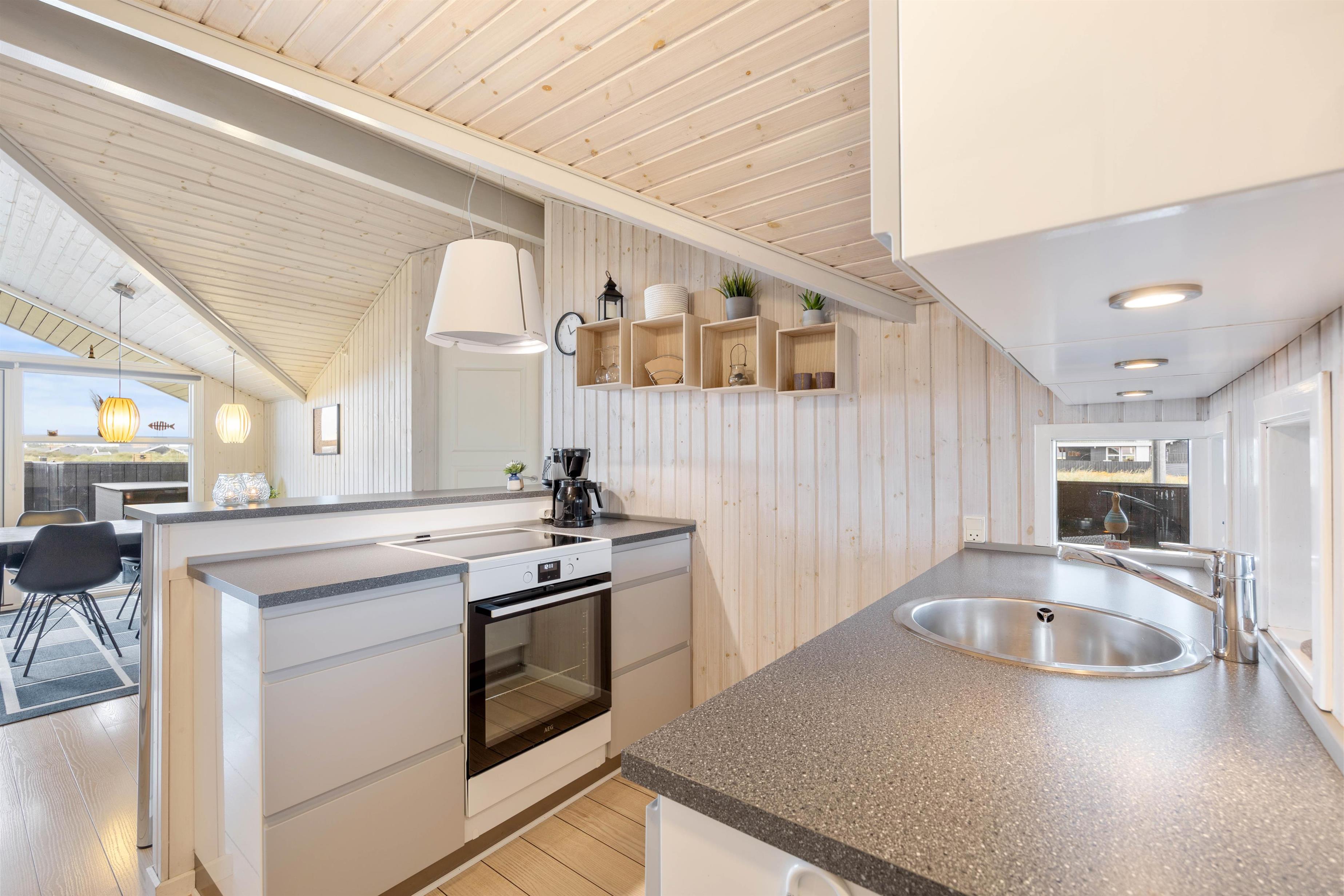 I det praktiske og veludstyrede køkken er alt, hvad I behøver for at tilberede lækre måltider sammen. De to badeværelser med gulvvarme bidrager til et godt flow, så I ikke behøver at stå i kø til tandbørstningen. Her finder I også spabadet og saunaen, som inviterer til en afslappende wellnessaften, hvor I kan glemme hverdagens stress og i stedet få slappet musklerne grundigt af. Der er vaskemaskine og tørretumbler til rådighed for jer, så I altid kan friske håndklæderne op. De 3 hyggelige soveværelser har komfortable dobbeltsenge til en afslappende søvn. Læg mærke til, at vesterhavsluften gør noget godt for nattesøvnen.