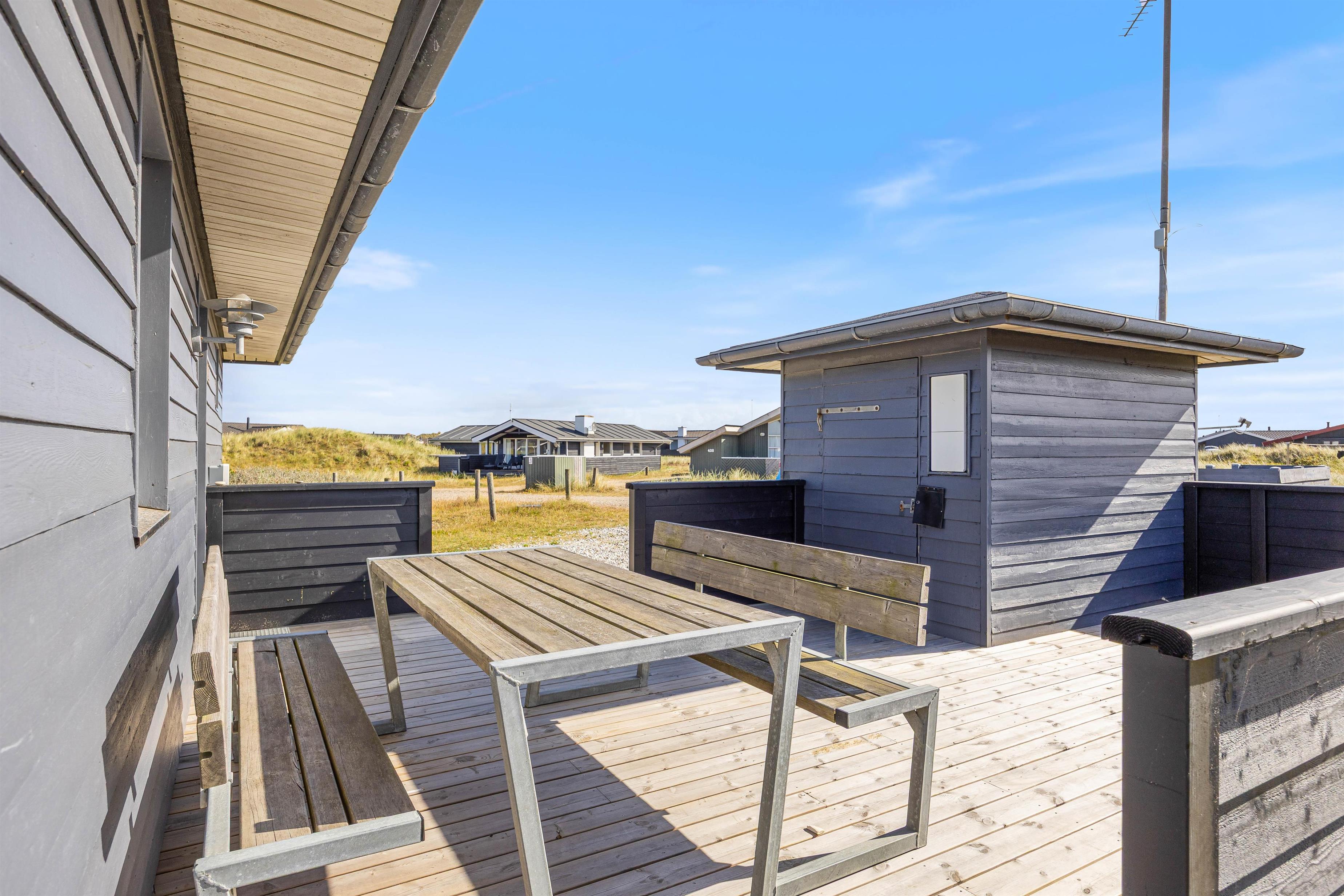 Rundt om sommerhuset er der helt lukkede terrasser, som indbyder til masser af udeliv. Nyd morgenkaffen til solopgangen fra den østvendte terrasse – og senere på dagen kan I nyde eftermiddags- og aftensolen på den sydvestvendte terrasse.