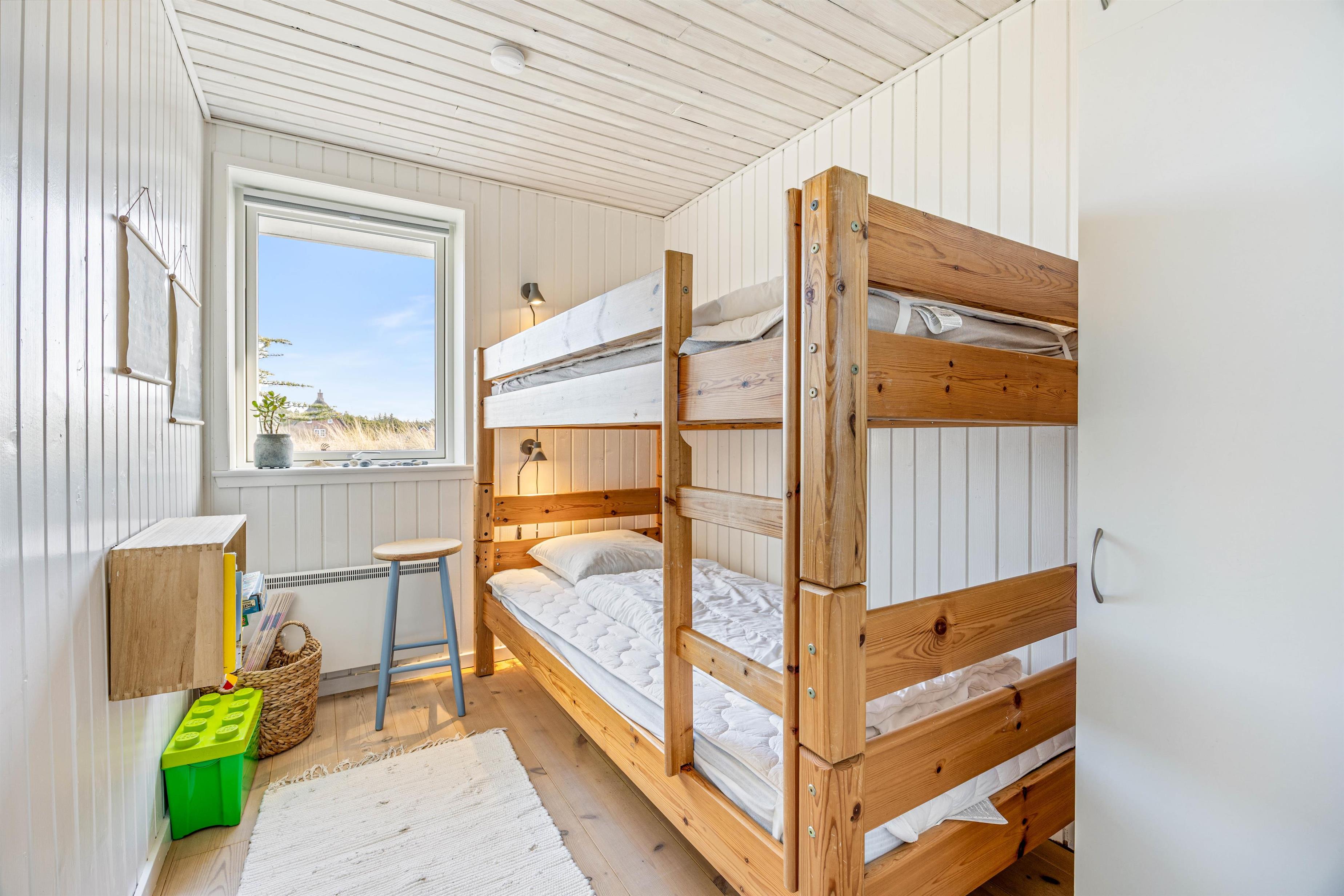 Feriehuset har plads til 6 personer, som kan nyde en afslappet ferie i det skønne sommerhus. Der er 3 soveværelser, hvoraf de 2 er indrettet med dobbeltsenge. På det sidste værelse finder I en køjeseng – perfekt til børnene. Desuden er der et hyggeligt anneks, hvor teenagerne eller bedsteforældrene kan få en god nats søvn. Her er der 2 enkeltsenge.