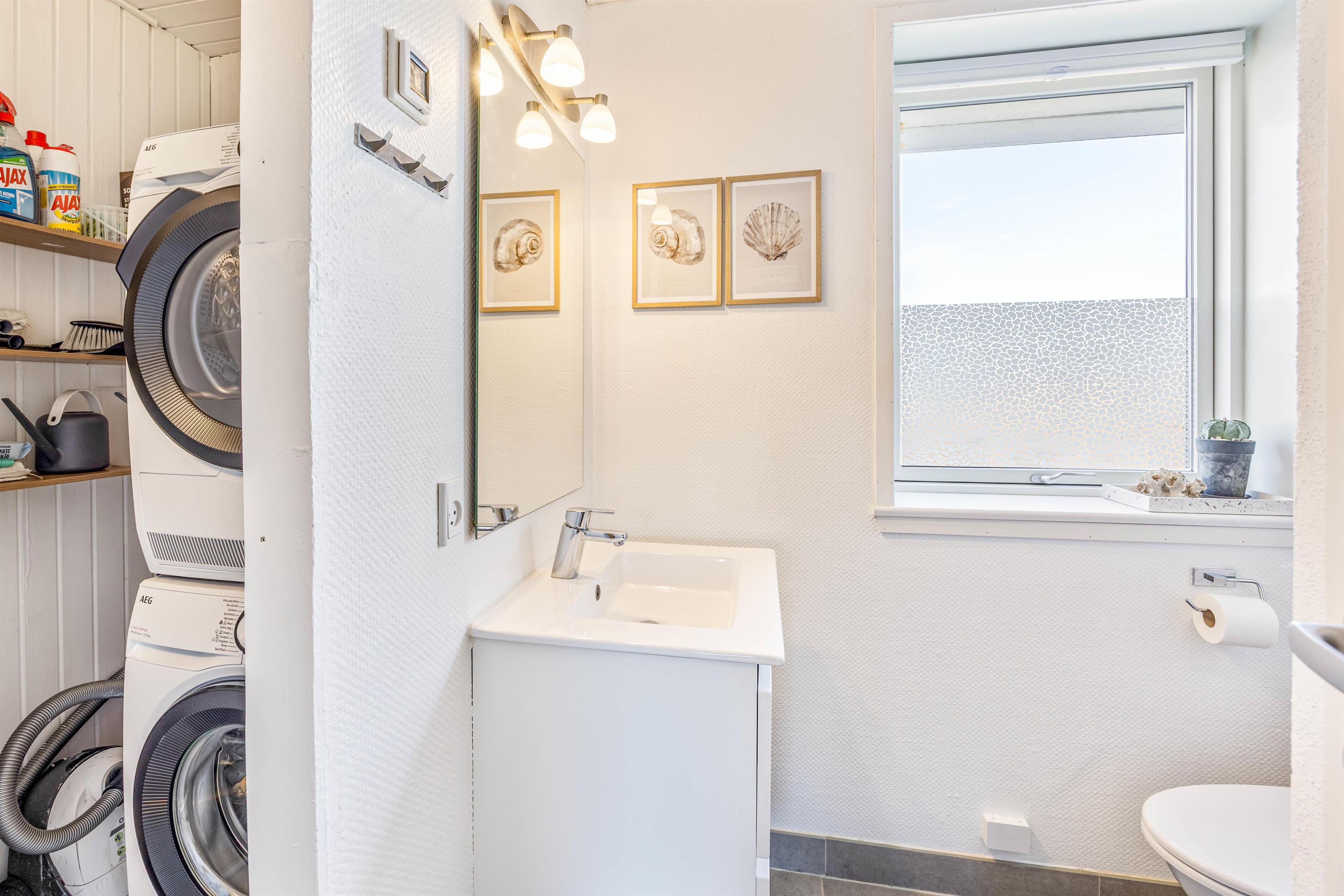 I sommerhuset er der en energibesparende varmepumpe, som I med fordel kan benytte jer af til at holde temperaturen behagelig. Derudover er der både vaskemaskine og tørretumbler.