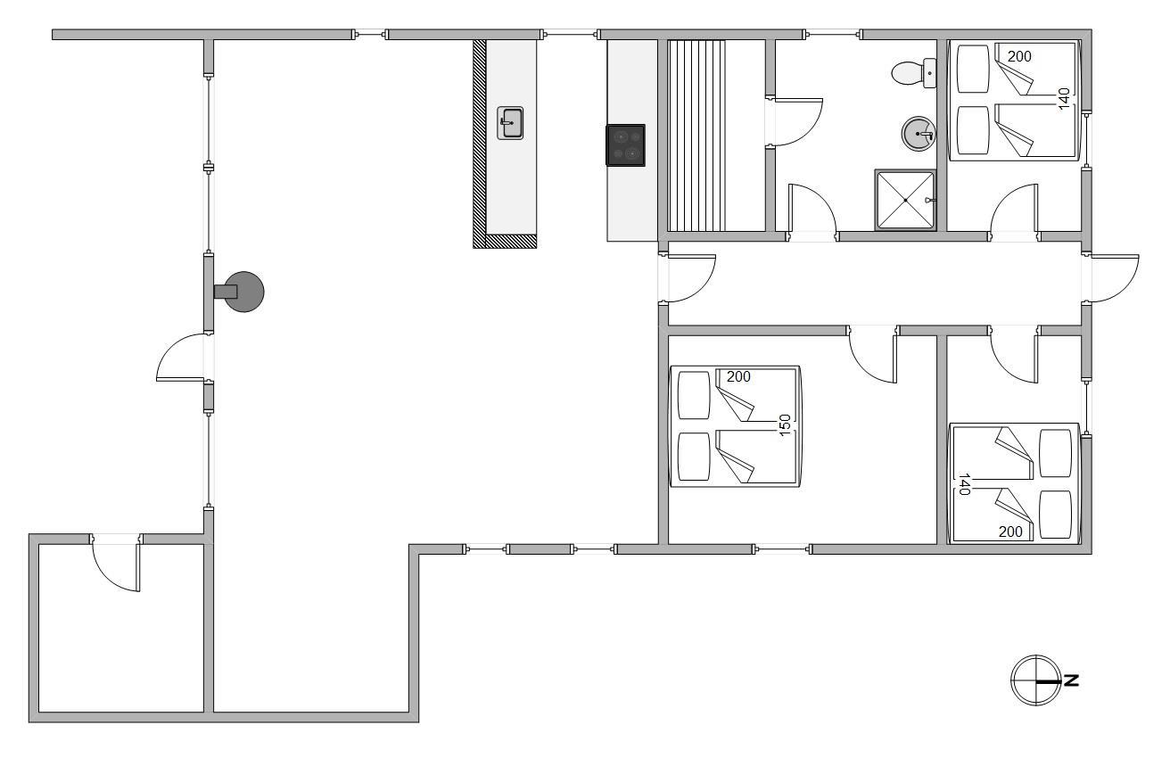 På den store plænegrund er der desuden både gynger og sandkasse til stor glæde for de små. Blot 400 meter fra sommerhuset ligger den lokale købmand i Bjerregård, og med kun 900 meter til Vesterhavet kan I altid planlægge en gåtur hertil og gå en tur langs stranden.