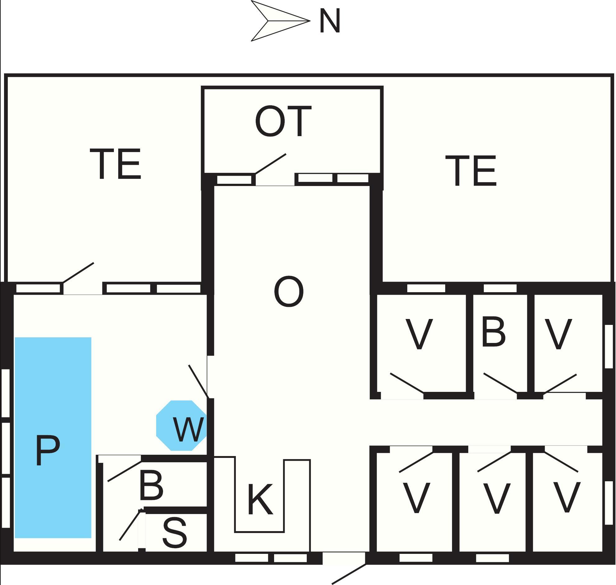 Dette hus er velegnet til flere familier og praktisk indrettet med poolafdelingen i den ene ende og værelser i den anden ende af huset.