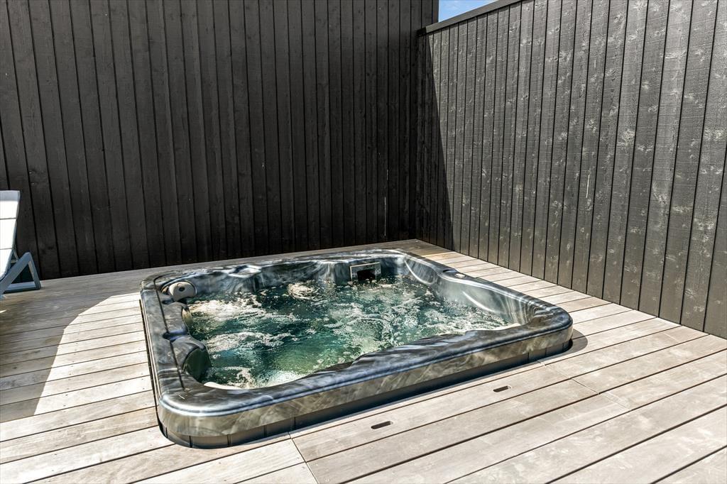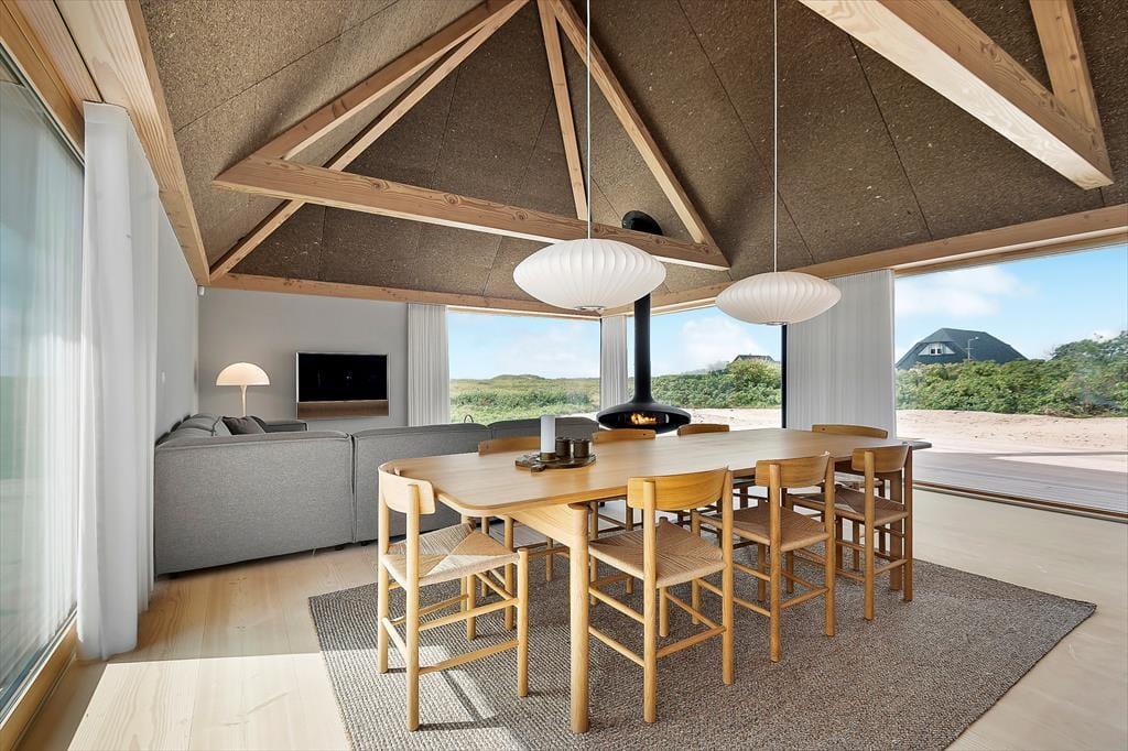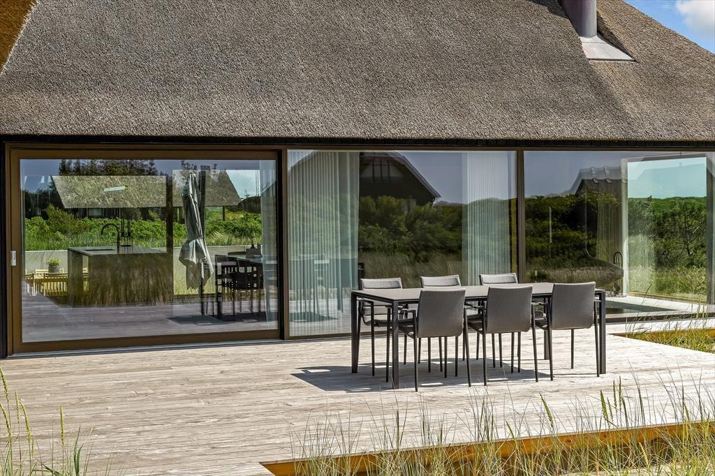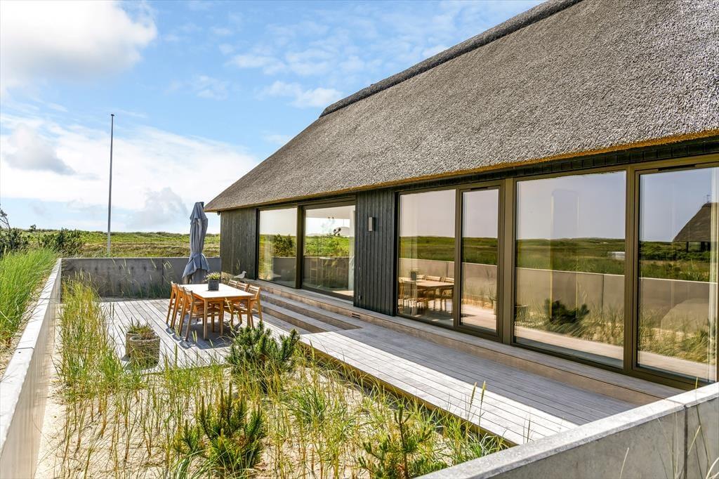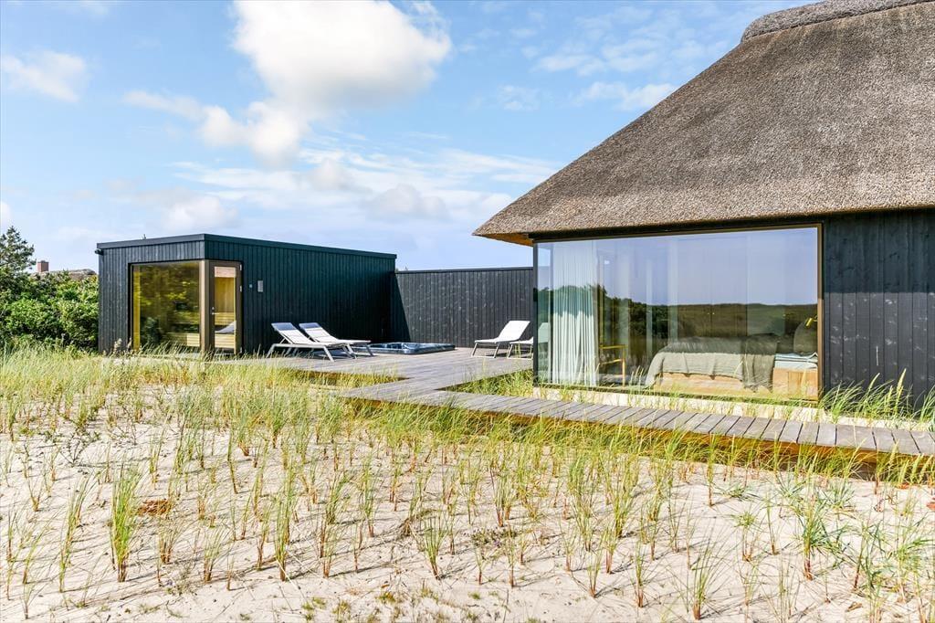 Udenfor venter et spektakulært landskab, hvor du har en direkte adgang til stranden og en udsigt, der får mundvandet til at løbe. Den store udespa giver dig mulighed for at slappe af under stjernerne, mens du ser ud over de bølgende klitter og Vesterhavet. Det er den perfekte ramme for en fredfyldt morgen eller en romantisk aften. Sommerhuset ligger tæt på de berømte "Muldyr", og den uforstyrrede beliggenhed sikrer, at du kan nyde naturen i fulde drag fra både hus, sauna og udespa. Panorama-saunaen er helt speciel, og når du sidder i saunaen, kan du nyde udsigten til klittoppen lige udenfor huset. Huset er omgivet af skønne terrasser og udstyret med høj kvalitet i loungemøbler.