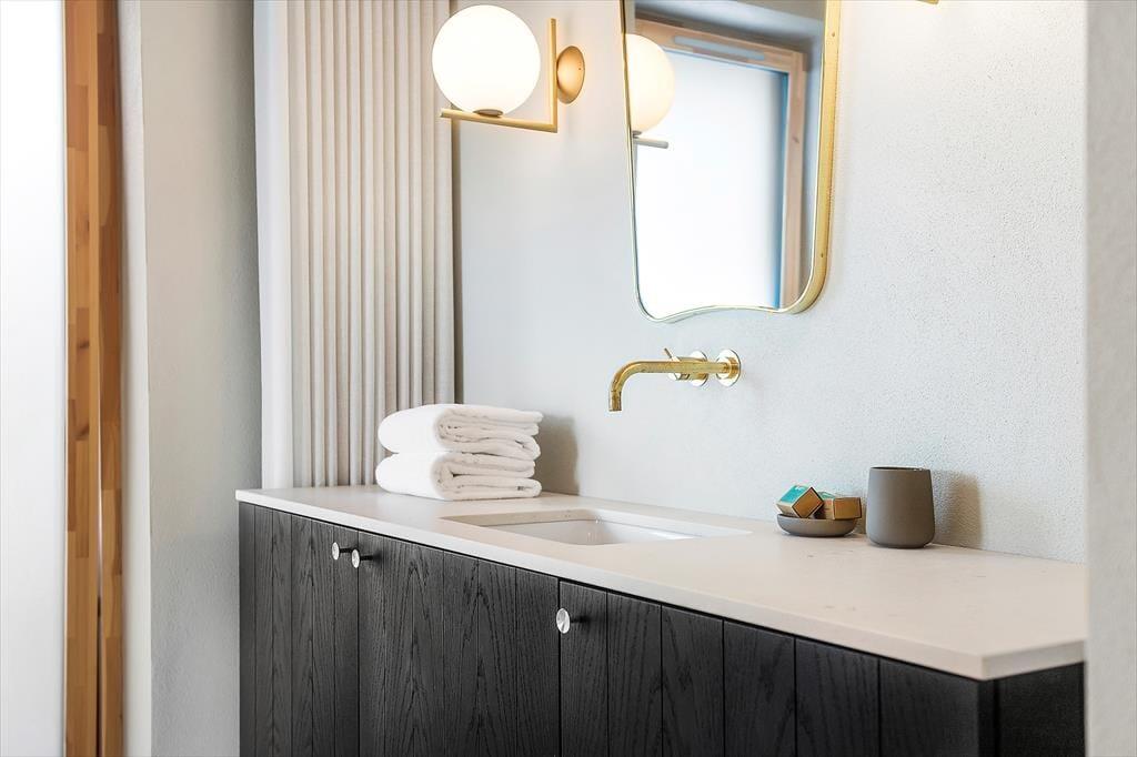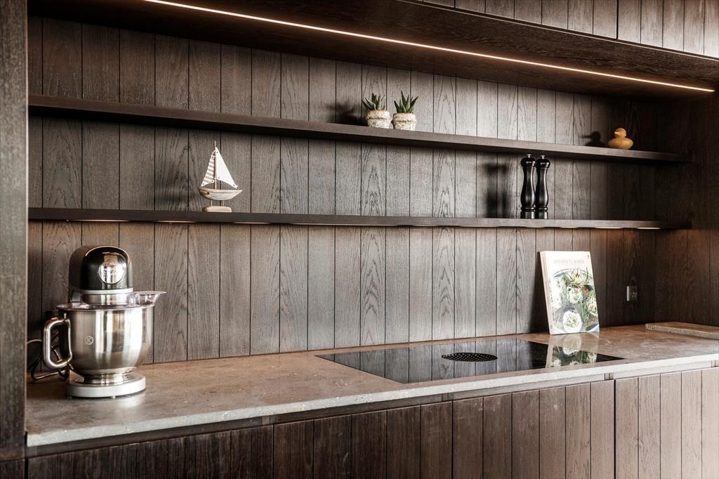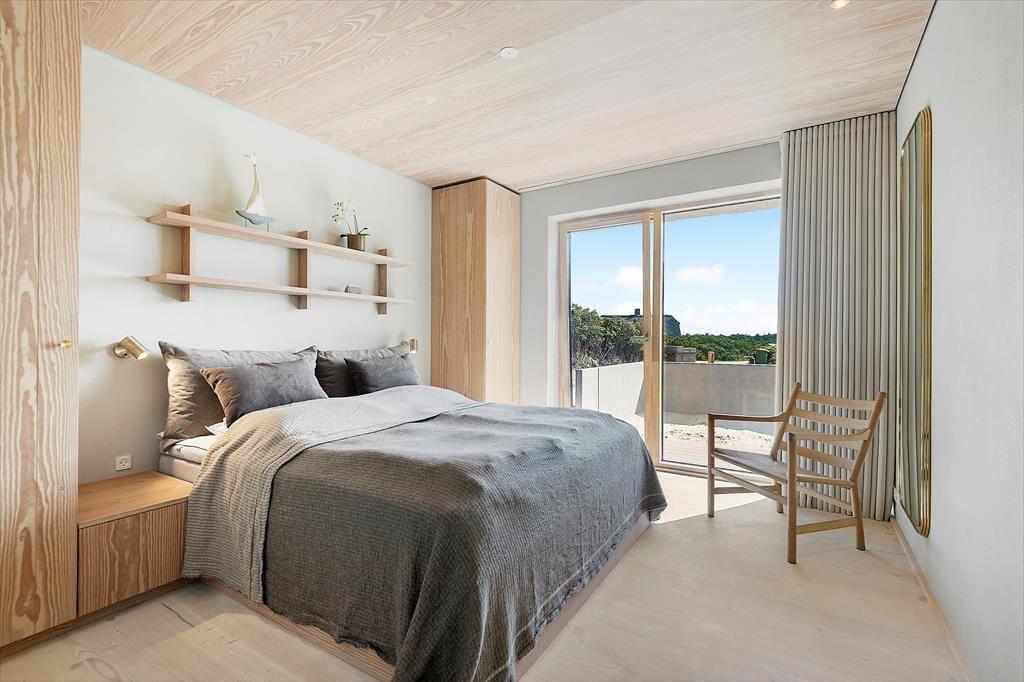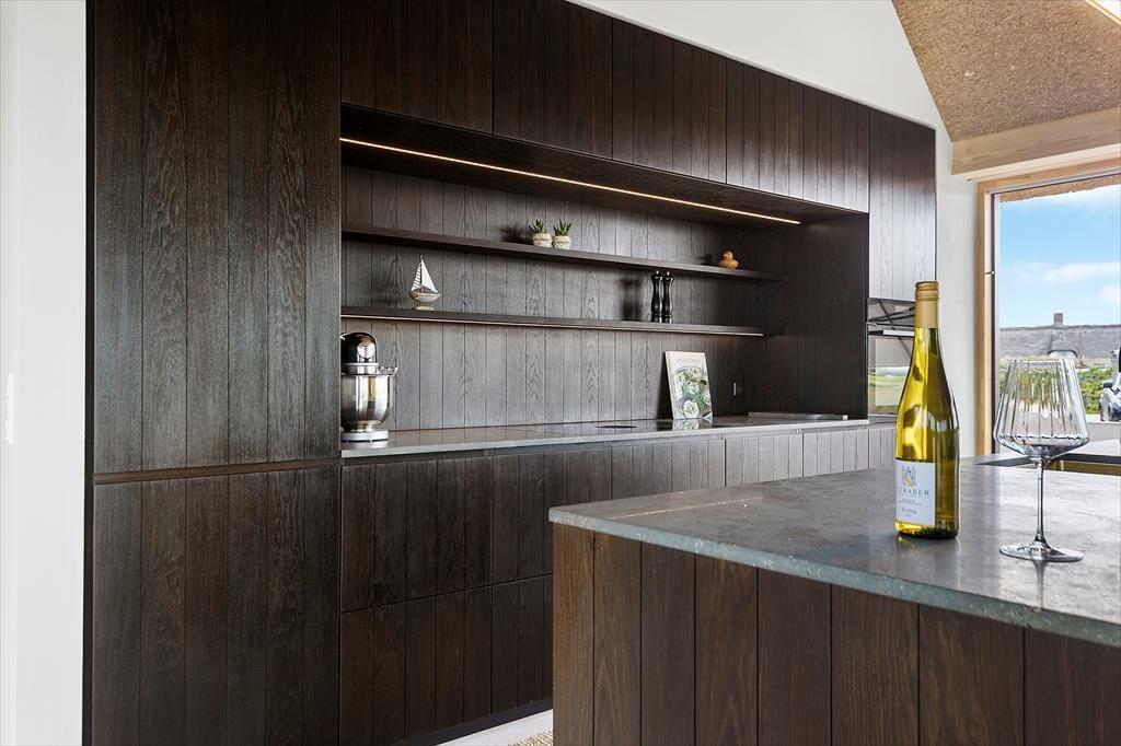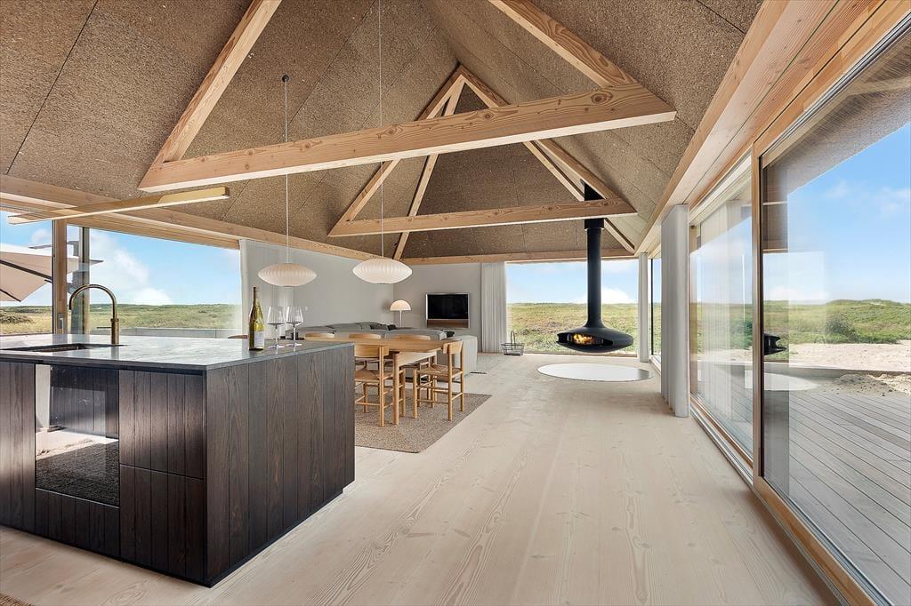 Når du træder ind i sommerhuset, vil du straks bemærke den eksklusive kvalitet, der gennemsyrer hele boligen. Huset er indrettet med specielt importeret brændeovn, der skaber en hyggelig atmosfære på de kølige aftener, mens de lyse Dinesen gulve og Douglas-træets varme udstråling giver en følelse af raffineret luksus. De smukke søulds-lofter tilføjer en ekstra dimension af elegance, og hvert rum er udsmykket med snedkerkvalitet på alt inventar.