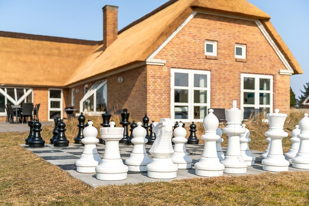 Med en grund på hele 3.409 m2 får I også masser af plads til at nyde ferielivet ude i det fri. Både store og små kan spille bold på græsplænen, og de yngste feriegæster kan hygge sig med at gynge og lege i sandkassen. Der er også et udendørs skakspil, som man kan hygge sig med. Vil I grille, solbade og slappe af, er den solrige terrasse perfekt til formålet, og selv i køligt vejr kan I få glæde af terrassen takket være det udendørs spabad, der forlænger udesæsonen på herlig vis.