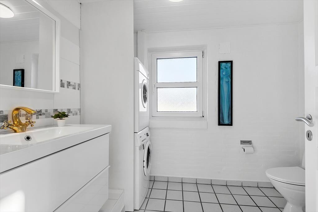 Sommerhusets poolafdeling er virkelig med til at forsøde ferielivet. Her kan I plaske i poolen og slappe af i saunaen, og I kan også læne jer tilbage i spabadet, der er placeret i en karnap med udsigt til haven. I husets store stue pynter også en karnap, som er med til at optimere lysindfaldet. Der er desuden god loftshøjde og brændeovn, og det stilfulde møblement bidrager desuden til den skønne atmosfære. I den ene ende af rummet ligger et flot og funktionelt åbent køkken, og i den anden har I adgang til en hems. Planløsningen består for øvrigt af to badeværelser og fem lækre soveværelser med i alt 11 sovepladser. Med så glimrende en rumfordeling og hele 187 m2 at brede sig på er sommerhuset et ideelt sted at samle familie og venner til en skøn wellnessferie.
