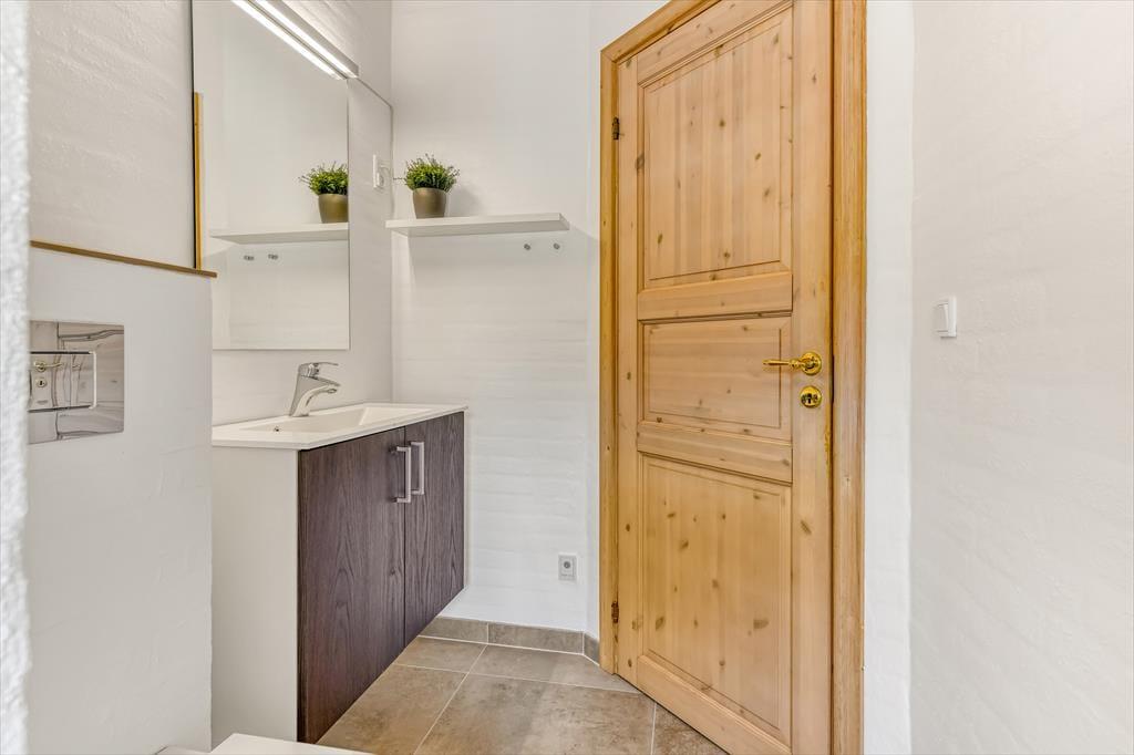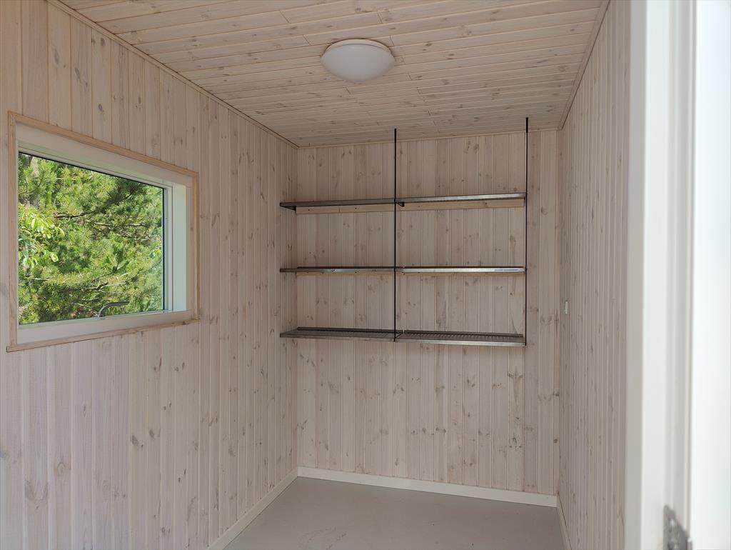Med tørv på taget og træfacade passer sommerhuset smukt ind i naturomgivelserne – og takket være husets store vinduespartier og ovenlysvinduer får I glæde af både sollyset og den grønne udsigt, når I hygger jer inden døre. Den gode planløsning gør det muligt at samles otte personer i huset, for der er nemlig fire gode soveværelser og to badeværelser til rådighed foruden en stor stue med åben køkkenafdeling. Soveværelserne er alle indrettet med komfortable dobbeltsenge, og på det største af de to badeværelser kan I forkæle jer selv med en saunatur såvel som et tilbagelænet badekar. Stuen indbyder til sofahygge for hele familien – eventuelt med ild i brændeovnen, hvis vejret lægger op til det, og som en praktisk detalje er der både vaskemaskine og tørretumbler i bryggerset.
