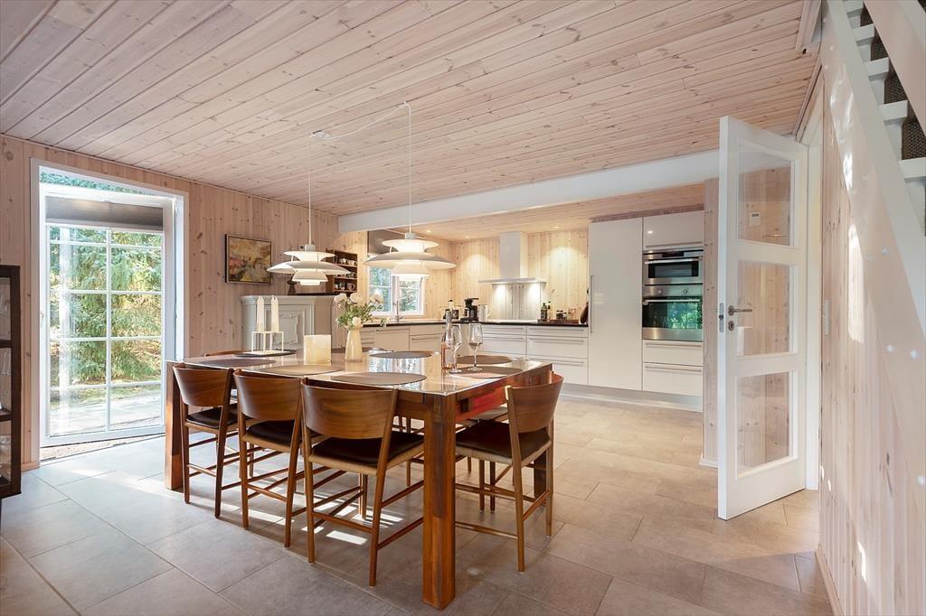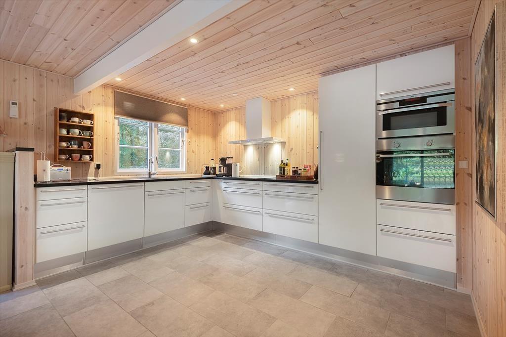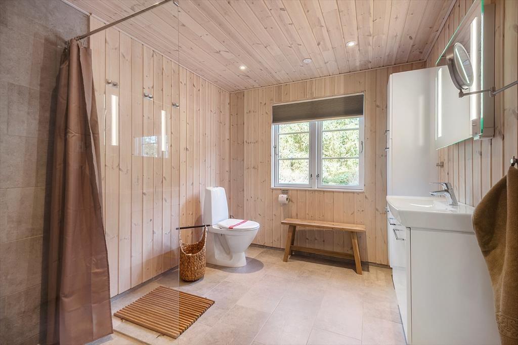 Det stråtækte sommerhus har en lys og hyggelig atmosfære inden døre, så det er fristende at bruge en stor del af ferien med en god bog i sofaen eller samlet rundt om et brætspil. Du og dine kære har god plads til både solostunder og socialt samvær i opholdsafdelingen, der udgør en stor del af stueplan. Et veludstyret køkken er integreret i rummet, og derudover finder du et pænt soveværelse og et rummeligt badeværelse på etagen. Fra stuen kan du tage en trappe op til førstesalen, der byder på tre yderligere soveværelser og et ekstra toilet, så med andre ord har du god plads til at invitere venner og familie med på ferie.