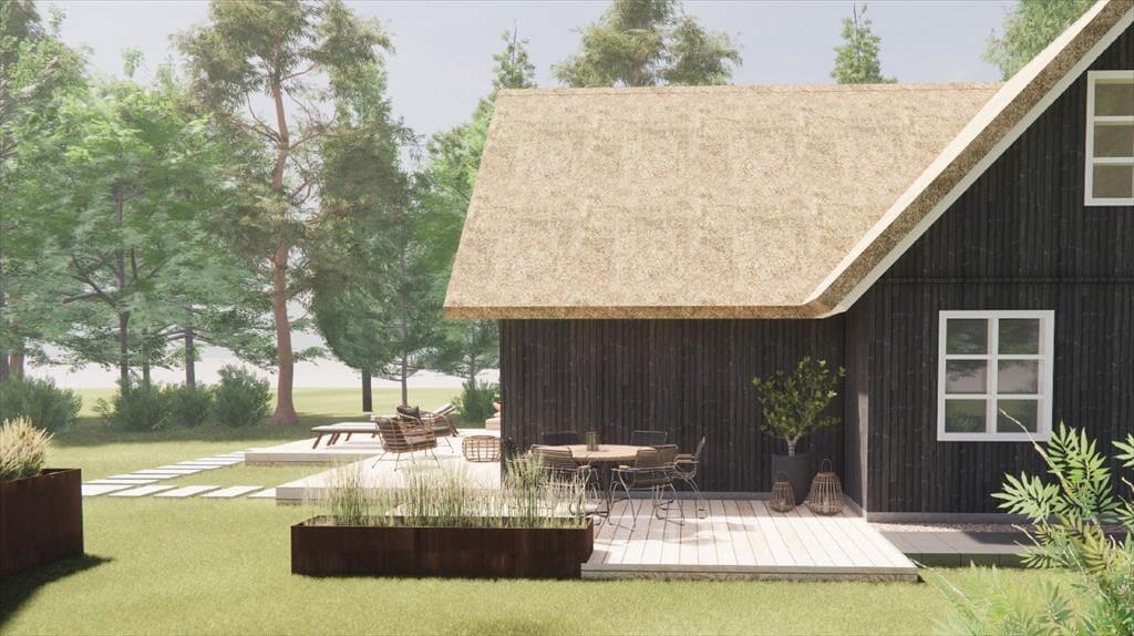 Huset renoveres primo 2026 med nyt stråtag og en større udendørs træterrasse, hvor der skal etableres wellness område med ude spa, udendørs bruser, udesauna. Ligeledes etableres en overdækket terrasse. Huset males overalt indendørs, og der kommer nyt interiør, som vil højne både æstetik og oplevelse.