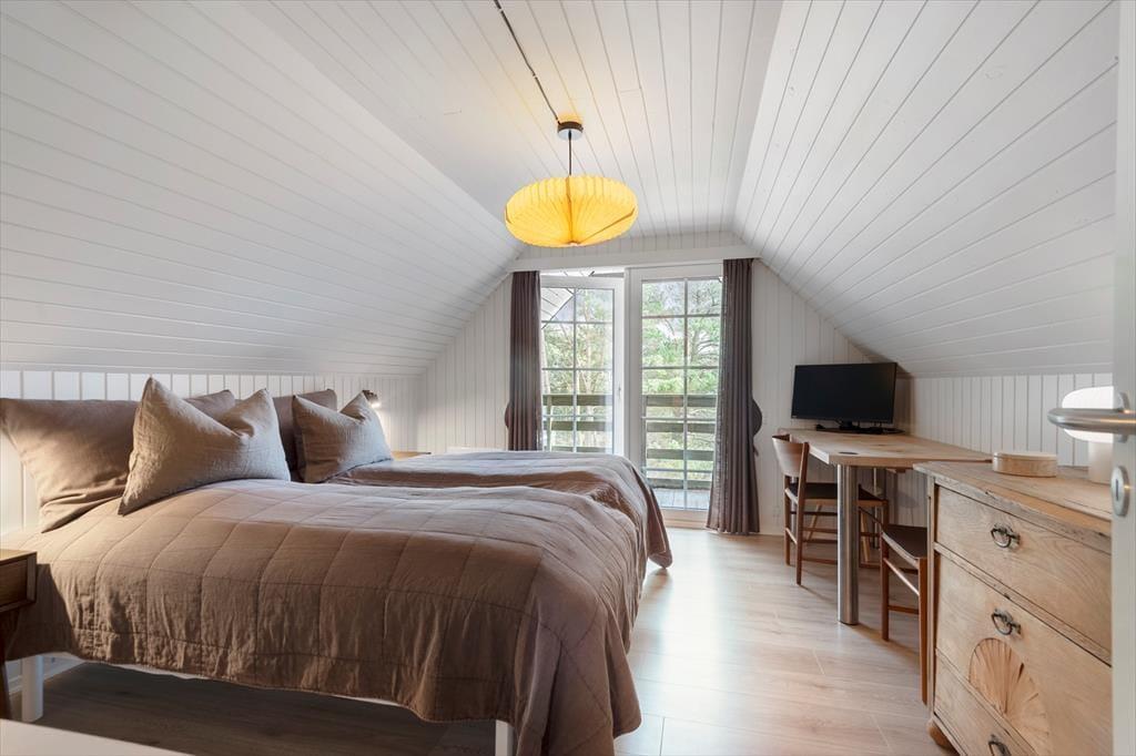 Fra det ene soveværelse på førstesalen har du adgang til en overdækket altan, så hvis du vil starte dagen med at lytte til fuglesang og indsnuse naturgrundens dufte, kan du gå herud i den friske luft. Husets terrassemiljø er også et dejligt sted at være – ikke kun om morgenen, men også senere, hvis du vil diske op med en lækker frokost i solen eller slutte af med at grille. I mellemtiden har du og familien god plads til at lege og spille havespil på græsplænen, og I kan selvfølgelig også forlade jeres egen lille oase for at se, hvad Blåvand og omegnen byder på.