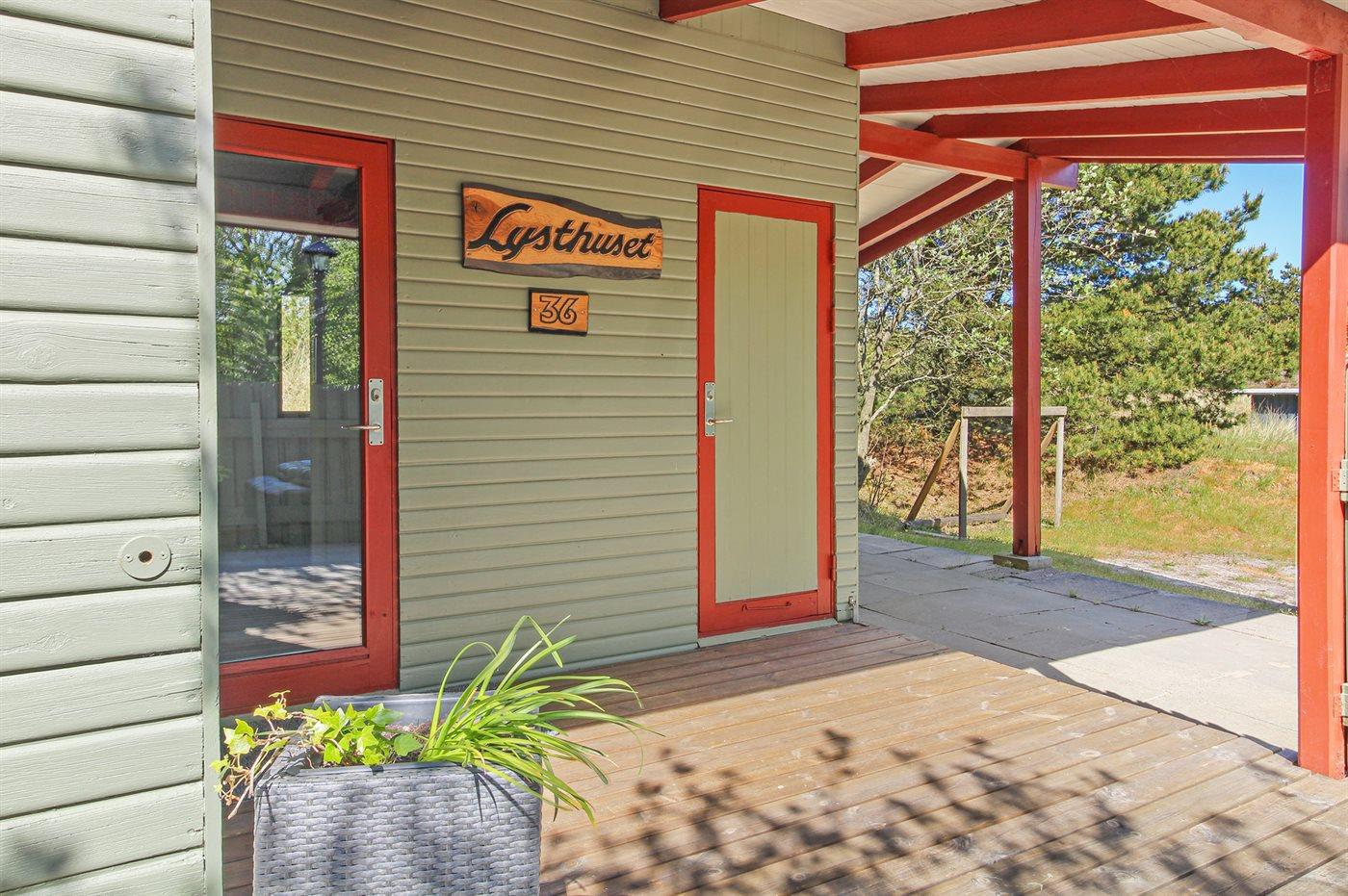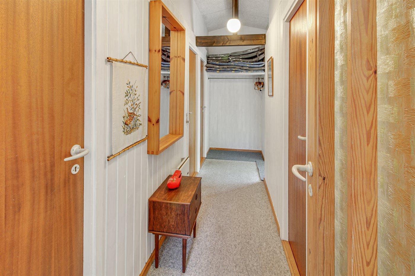 Velholdt sommerhus i træ, bygget i 1971, beliggende på en kuperet naturgrund med fyrretræer og lyng. Såvel åben som overdækket terrasse med havemøbler. Gulvene er belagt med tæpper. Væggene og lofterne er i træ. Synlige loftsbjælker. Badeværelse med bruser og flisegulv. Køkkenet er bl. a. udstyret med mikrobølgeovn. Opholdsstuen indeholder brændeovn, radio samt TV med parabol (digital). Husets sovepladser fordeler sig på 2 værelser med dobbeltseng og 1 med 1 enkeltseng samt køjeseng. Et hyggeligt sommerhus, hvortil der desuden hører carport.