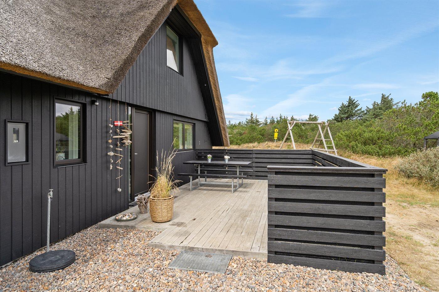 Charmerende sommerhus i Blåvand med stråtag og fredet natur tæt på strand og by.