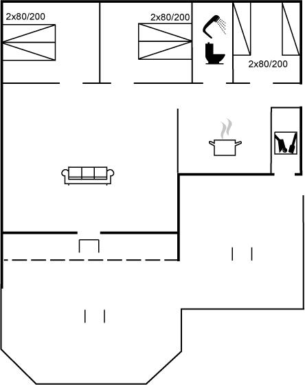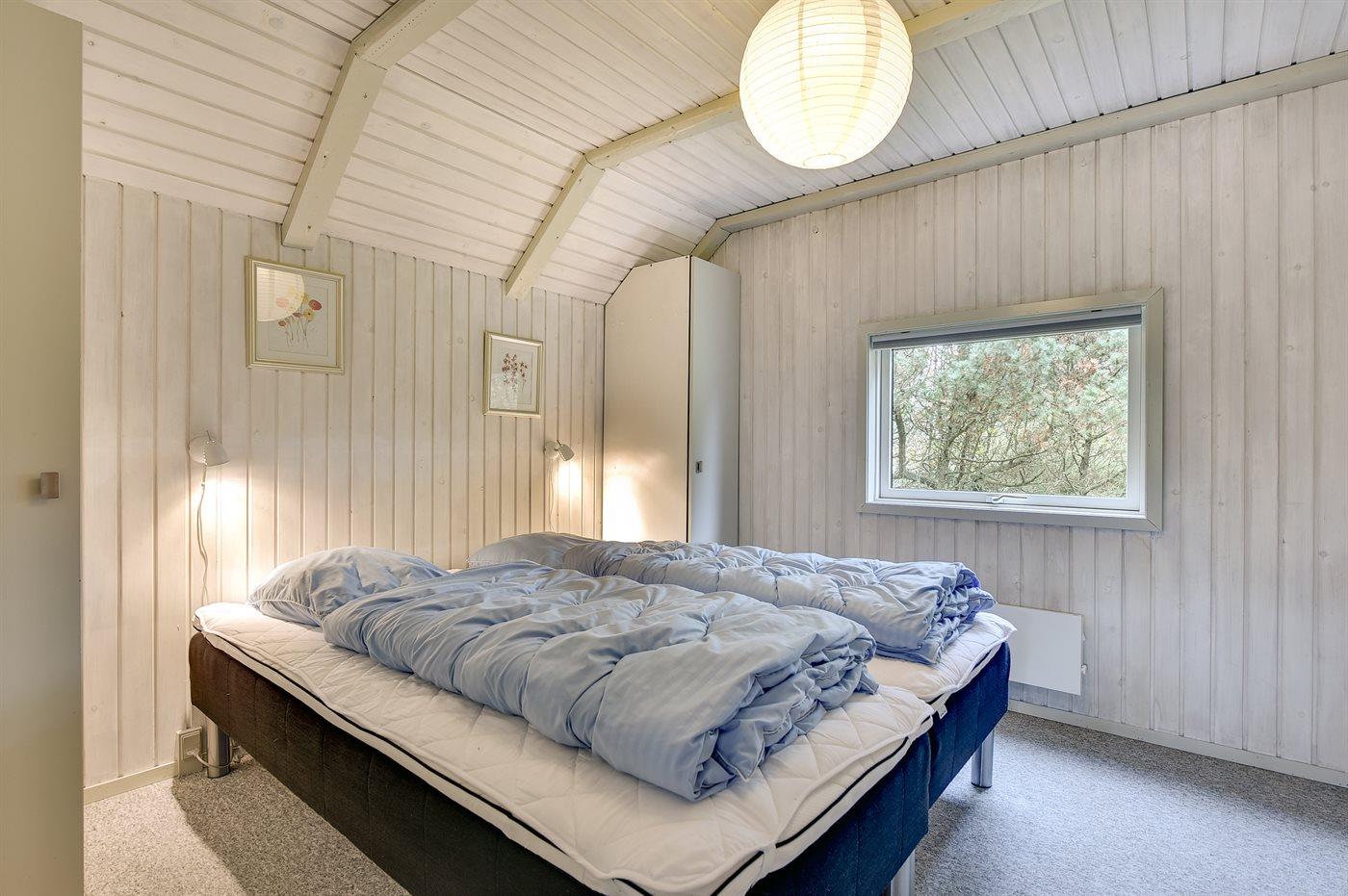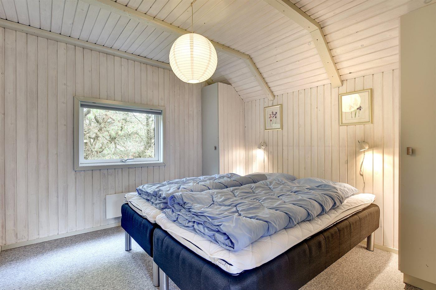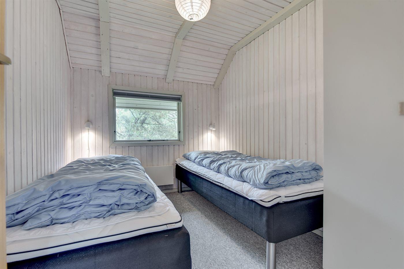 Der er i alt 3 soveværelser. Sovepladserne fordeler sig på: 4 sovepladser i dobbeltsenge. 2 sovepladser i enkeltsenge. Derudover er der 1 stk. barneseng.