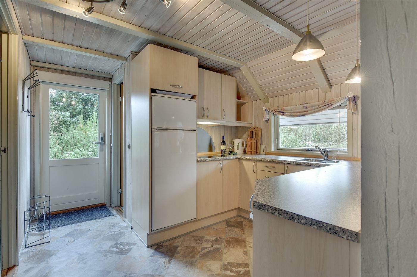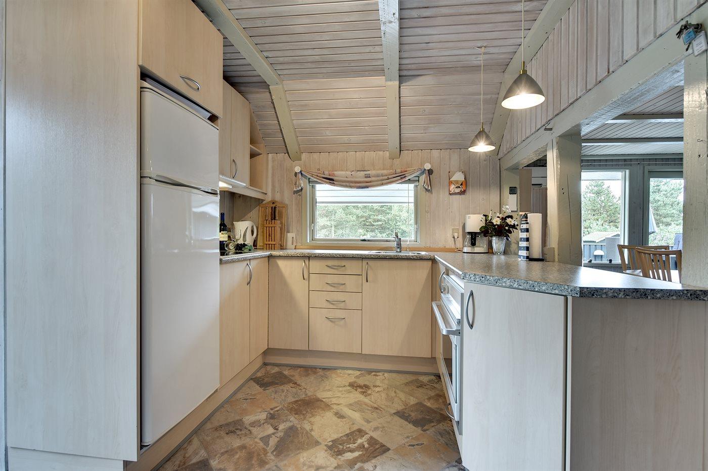 Køkkenet er udstyret med 2 køleskabe. Der er 4 elkogeplader, bageovn, mikrobølgeovn.
