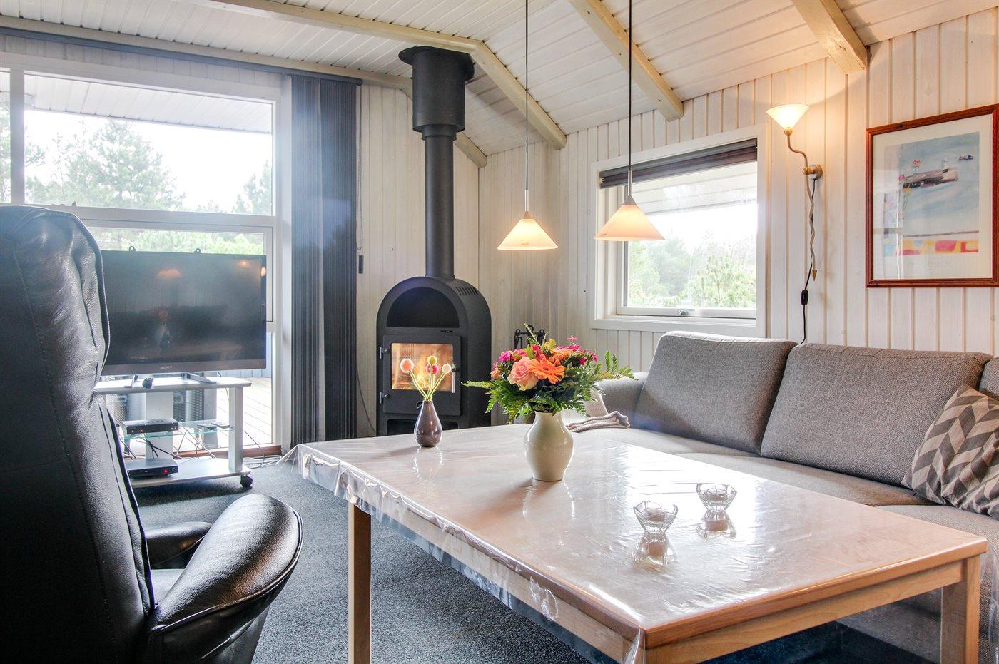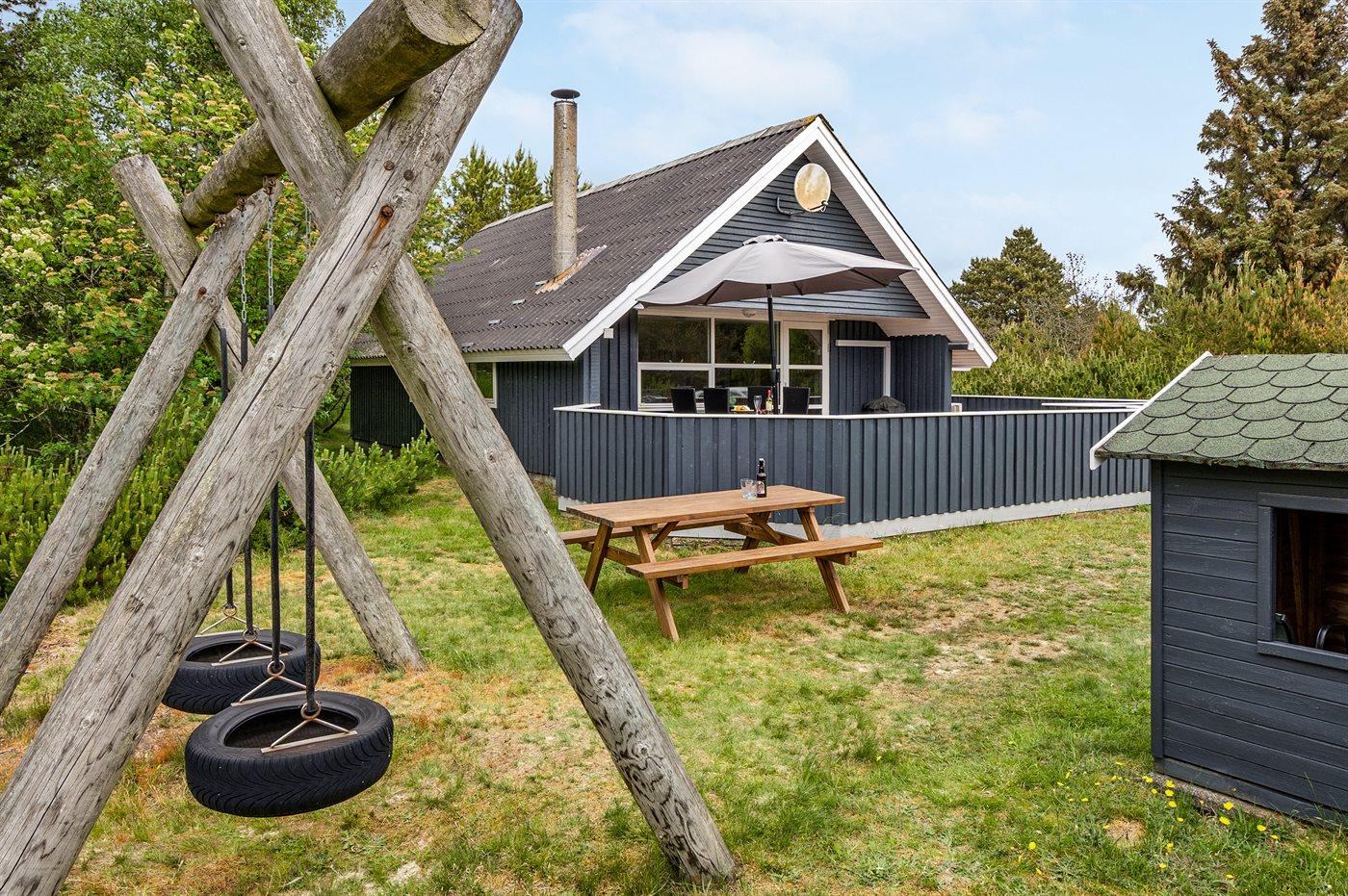 Sommerhuset i Blåvand har en sydvendt terrasse, brændeovn og er omgivet af en stor naturgrund.