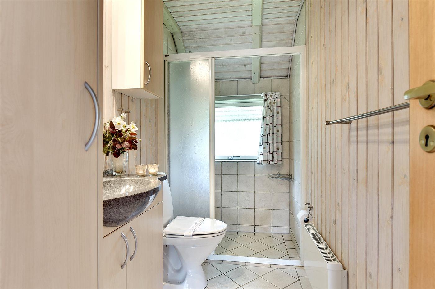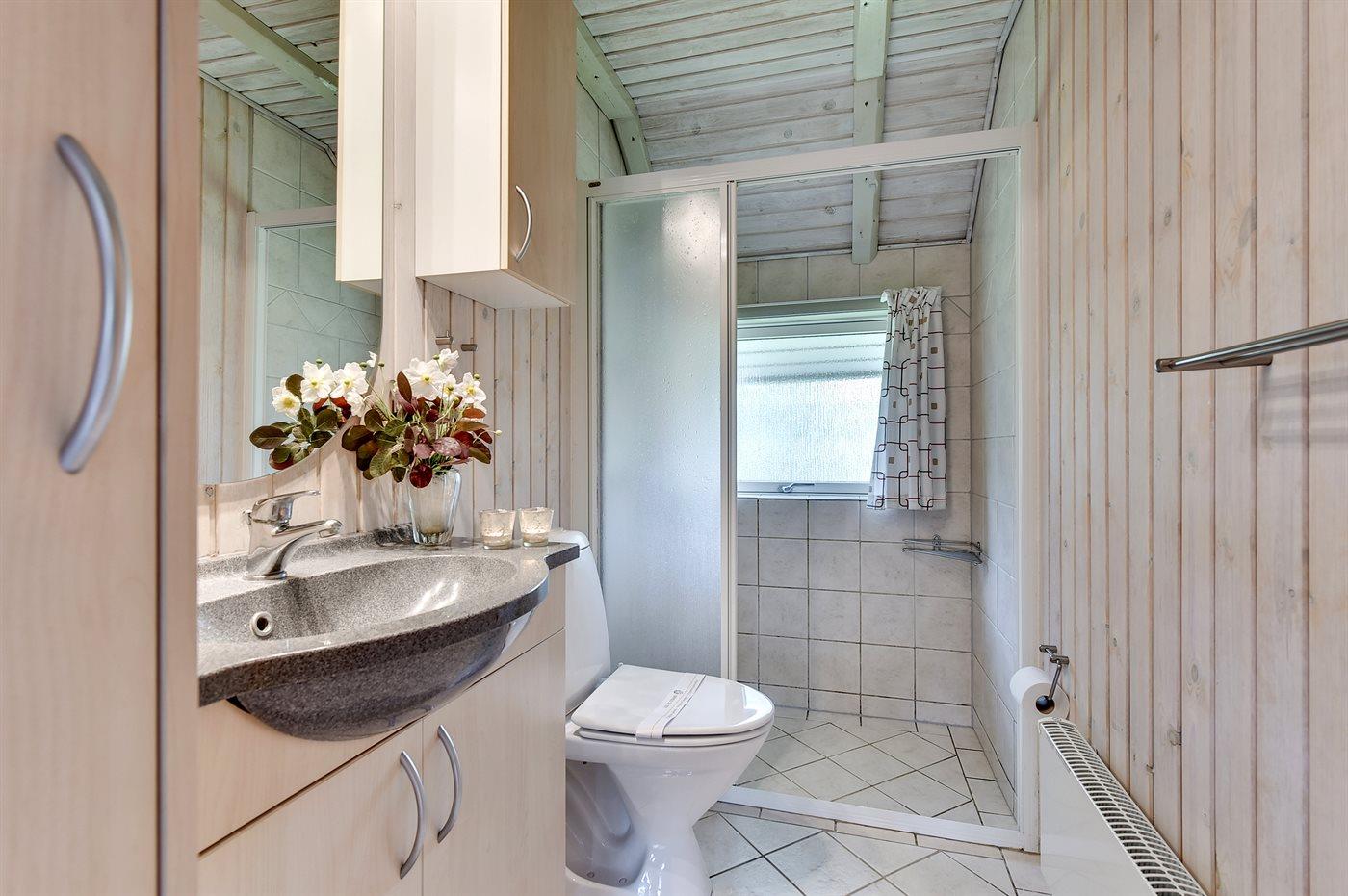 Der er 1 badeværelse med bruseniche og 1 toilet.