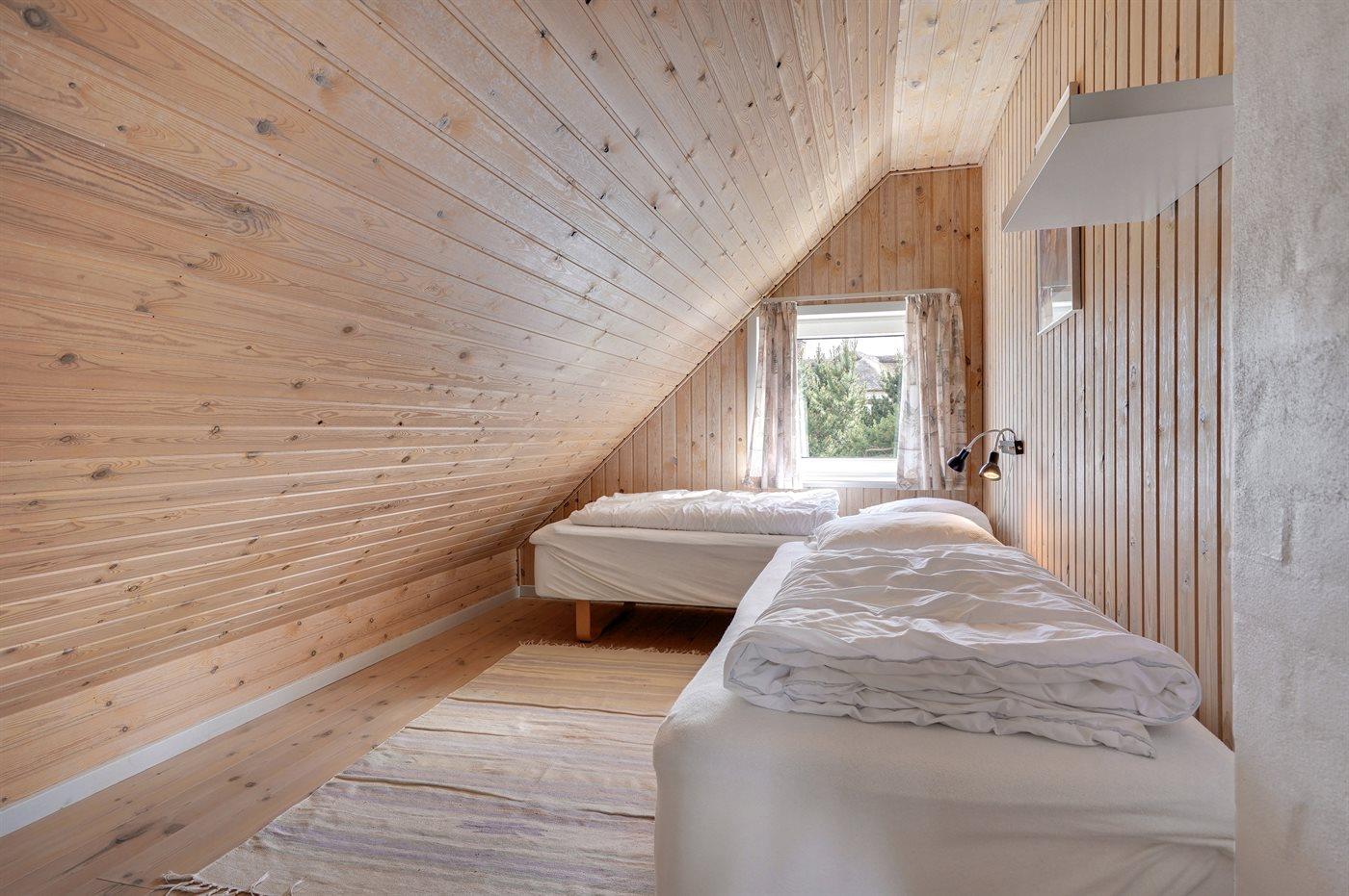 Der er i alt 4 soveværelser. Sovepladserne fordeler sig på: 4 sovepladser i dobbeltsenge. 4 sovepladser i enkeltsenge. Derudover er der 1 stk. barneseng.