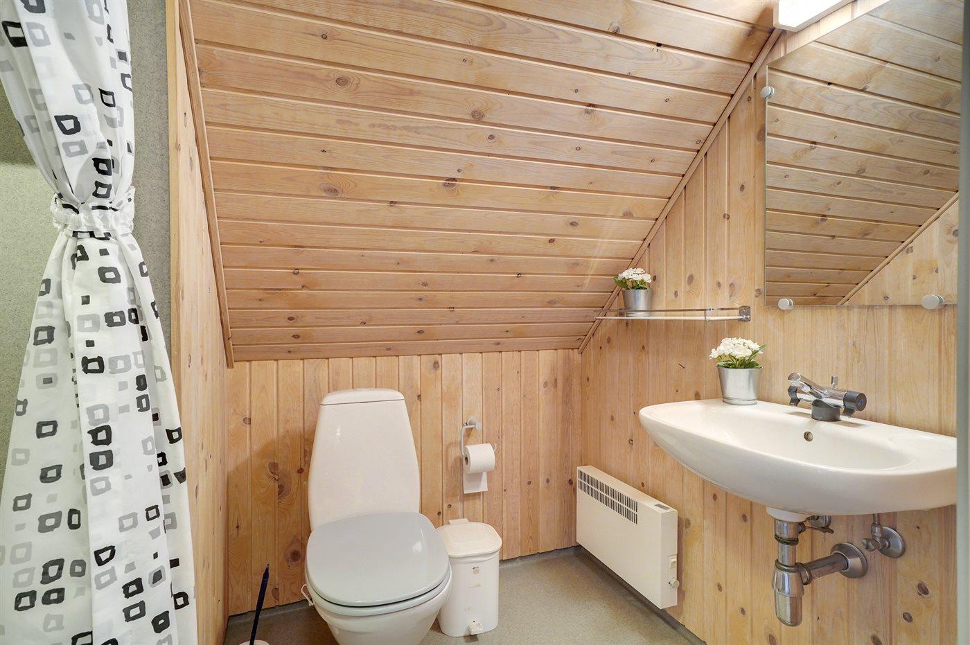 Der er 2 badeværelser med bruseniche og 2 toiletter I saunaen er der mulighed for afslapning.
