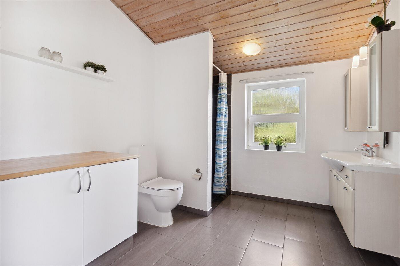 Der er 2 badeværelser med bruseniche og 2 toiletter. Der er gulvvarme på 2 badeværelser. I saunaen er der mulighed for afslapning.